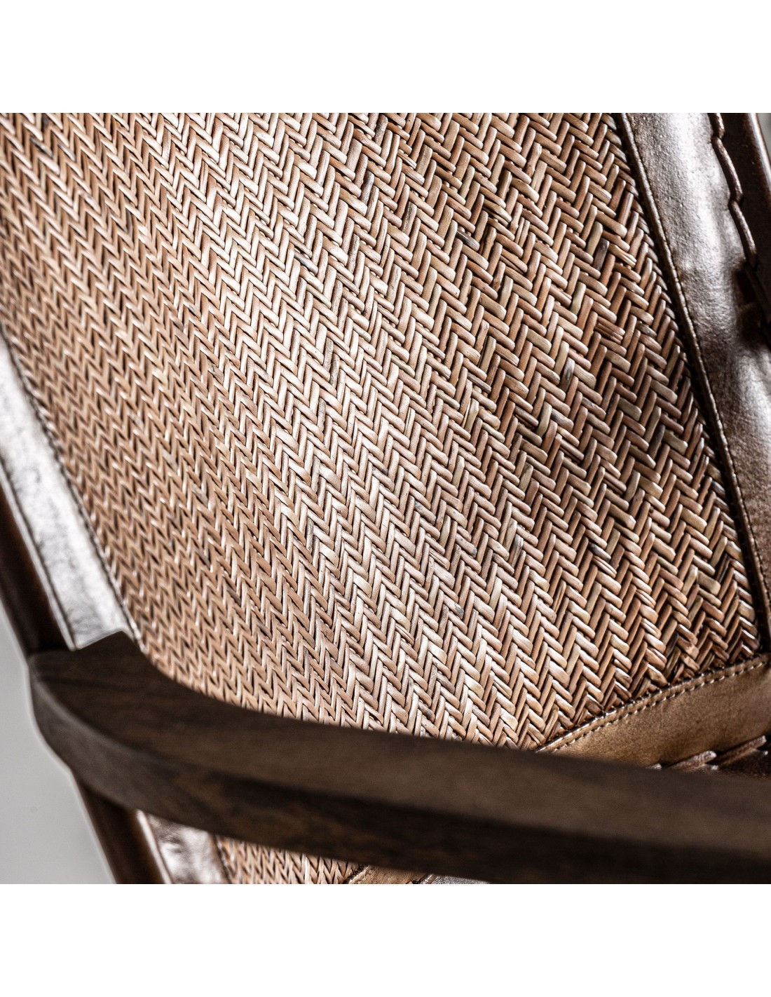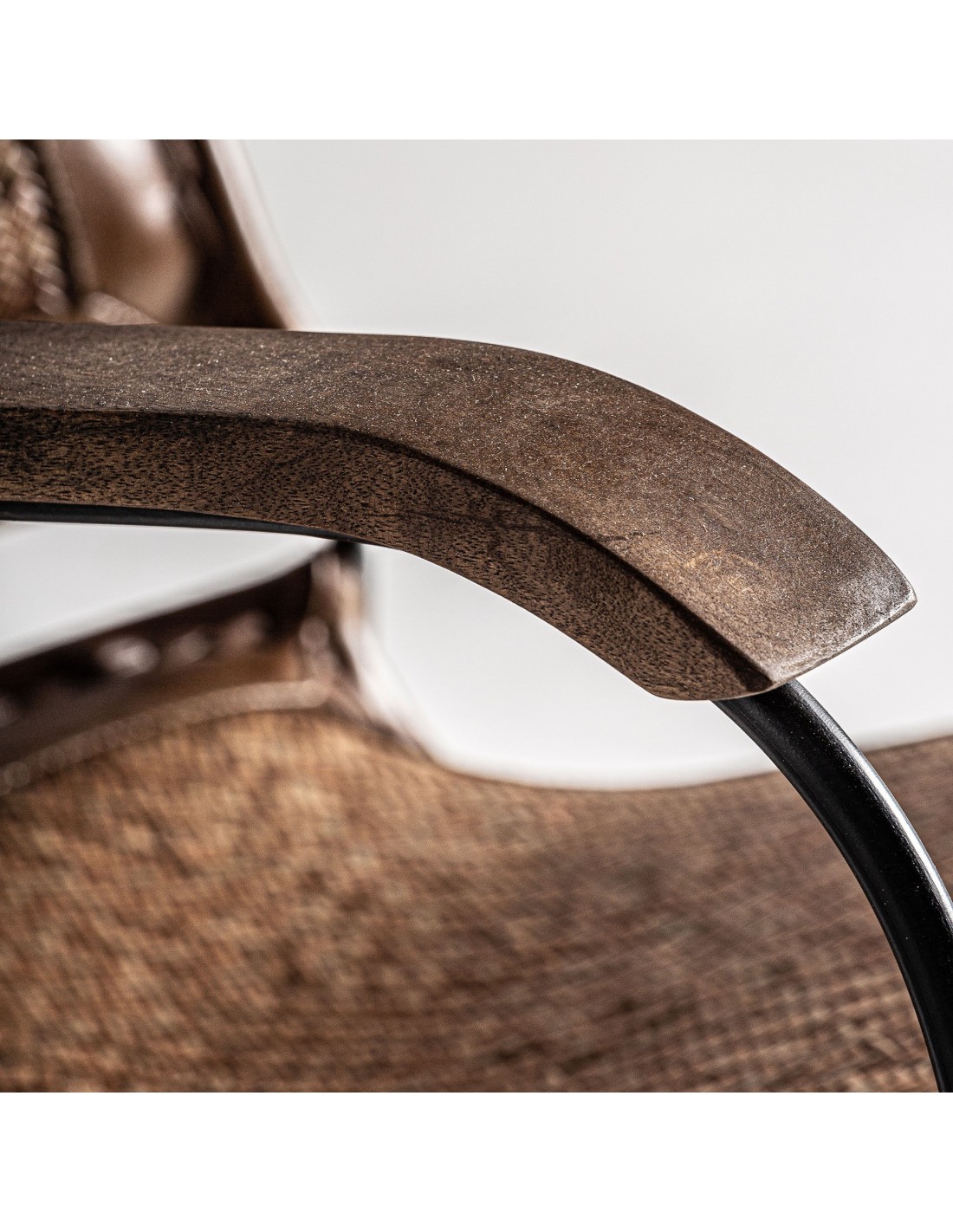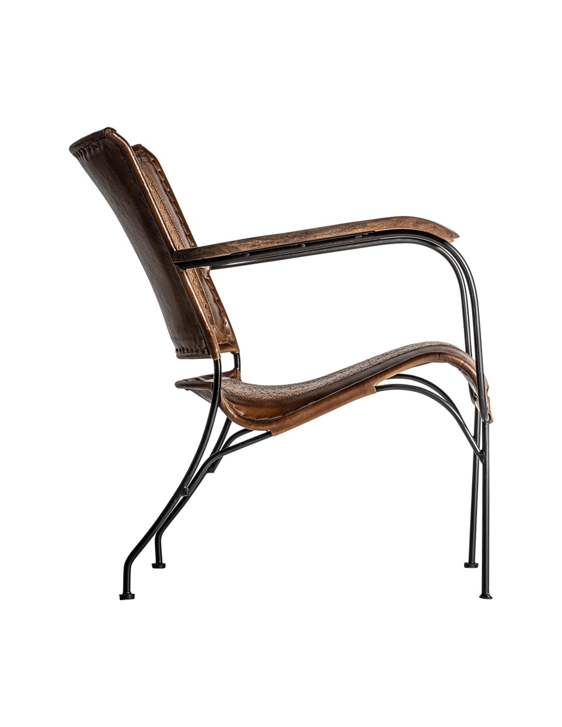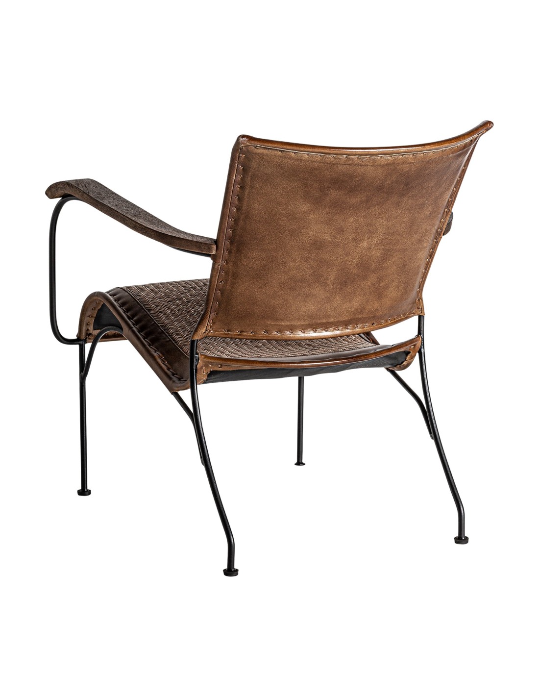 SILLA KROKOM, EN COLOR MARRÓN, DE ESTILO VINTAGE. FABRICADO EN PIEL, COMBINADO CON HIERRO Y RATÁN.