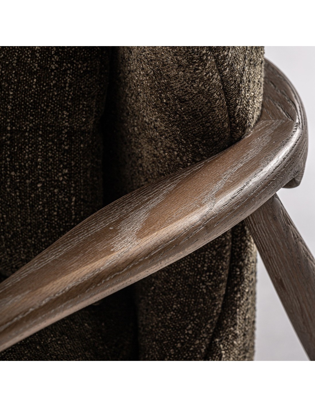 SILLÓN TARRES, EN COLOR VERDE, DE ESTILO CONTEMPORÁNEO. FABRICADO EN MADERA DE FRESNO, COMBINADO CON POLIÉSTER Y ESPUMA.