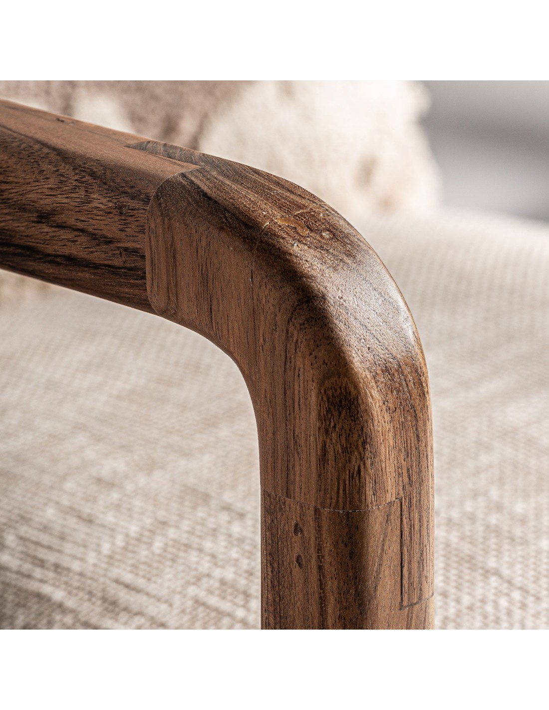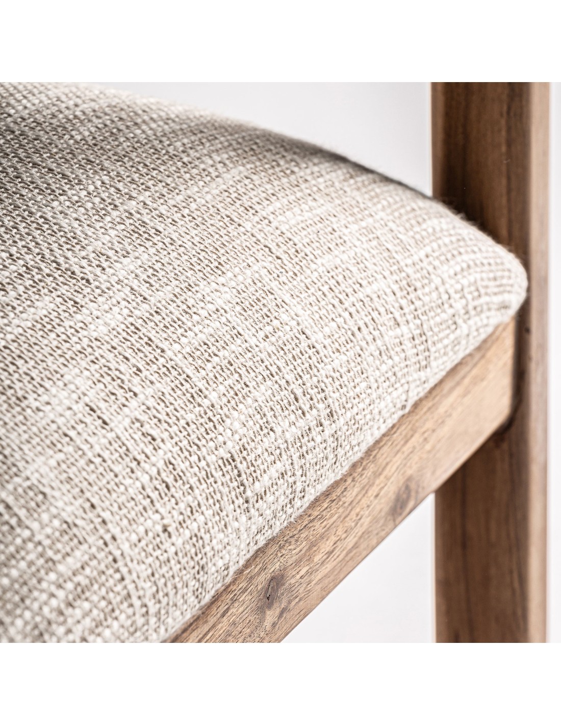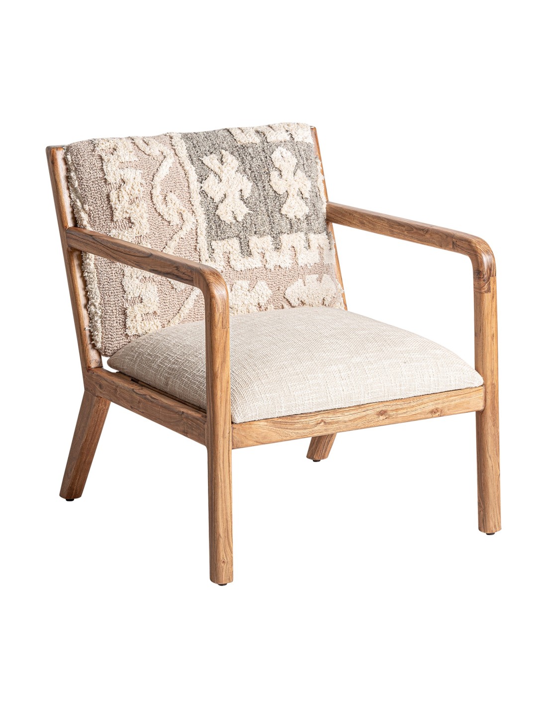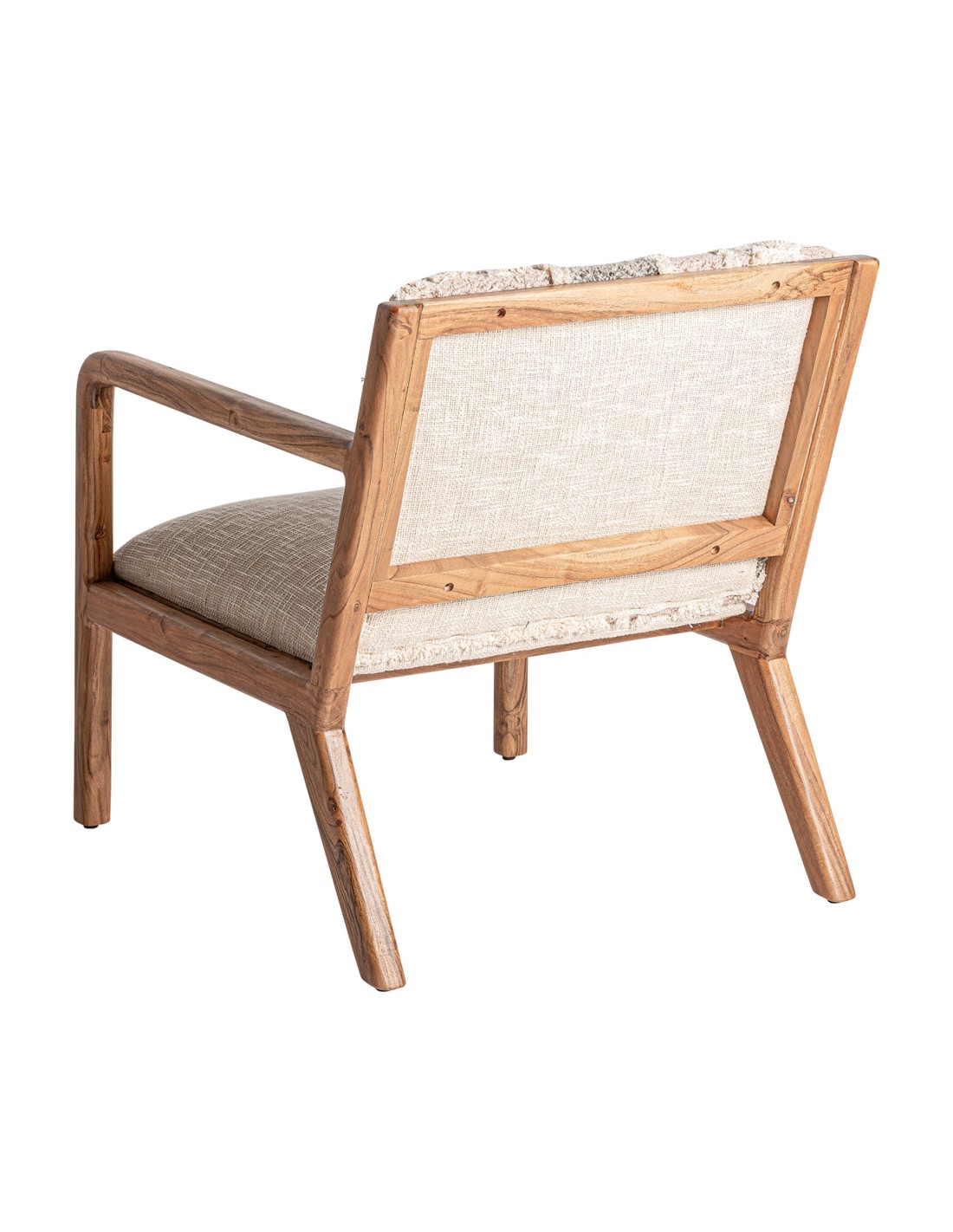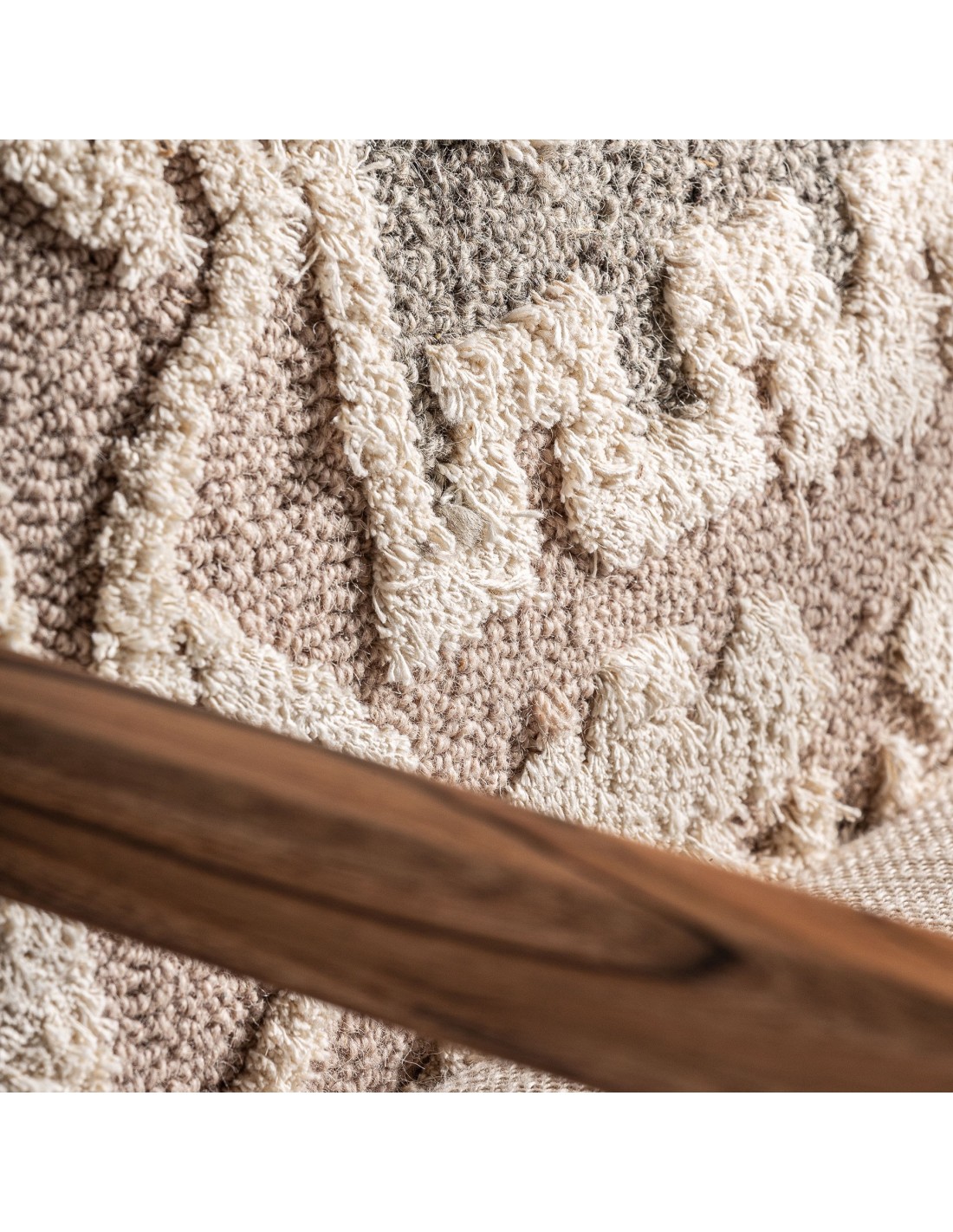 SILLÓN GREENSBURG, DE ESTILO BOHO. FABRICADO EN MADERA DE MANGO, EN COLOR MARRÓN CLARO NATURAL, COMBINADO CON ALGODÓN, EN COLOR BLANCO ROTO JASPEADO Y CÁÑAMO, EN COLOR MARRÓN NATURAL.