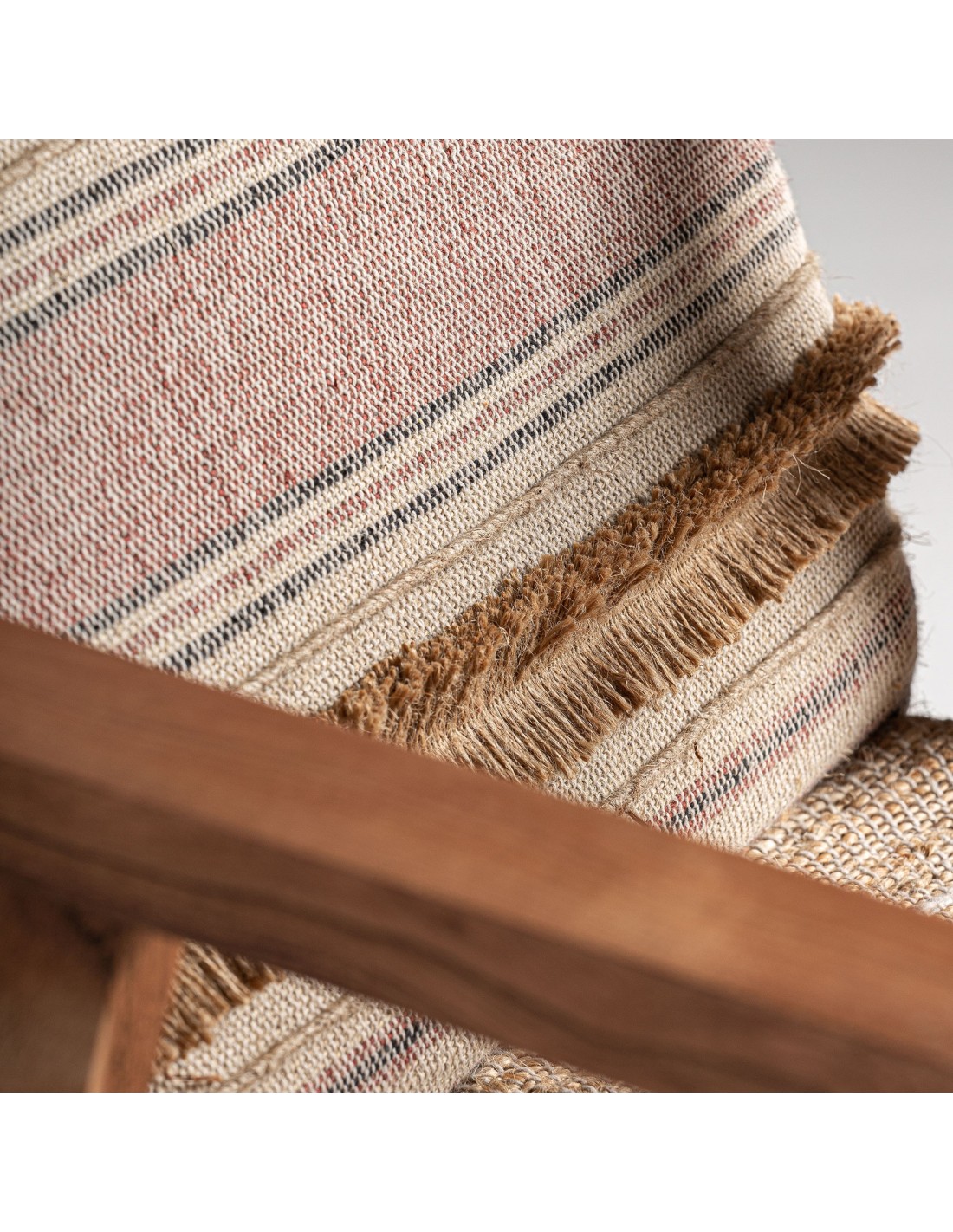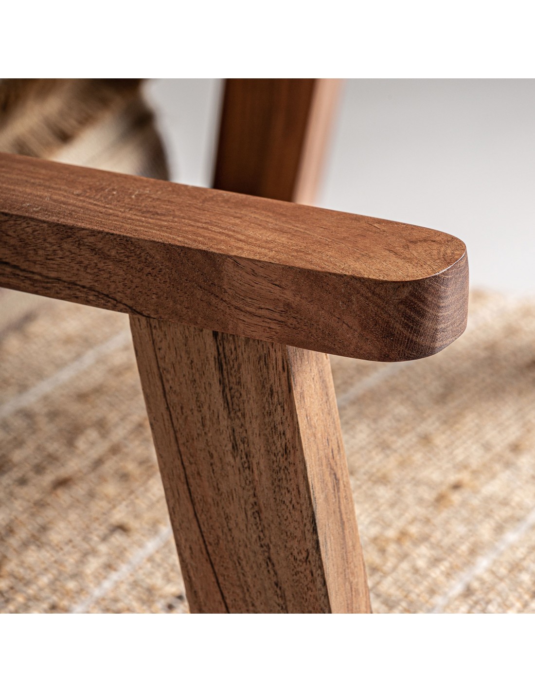 SILLÓN QUINCY, DE ESTILO BOHO. FABRICADO EN MADERA DE MANGO, EN COLOR MARRÓN, COMBINADO CON ALGODÓN Y CÁÑAMO.