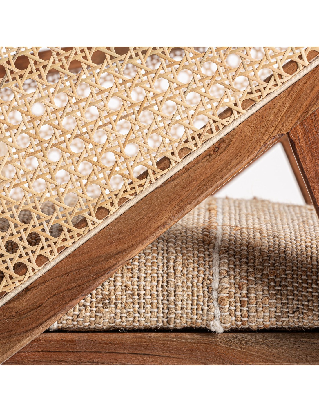 SILLÓN HICKORY, DE ESTILO BOHO. FABRICADO EN MADERA DE MANGO, EN COLOR MARRÓN, COMBINADO CON ALGODÓN Y YUTE. PRODUCTO DESENFUNDABLE.