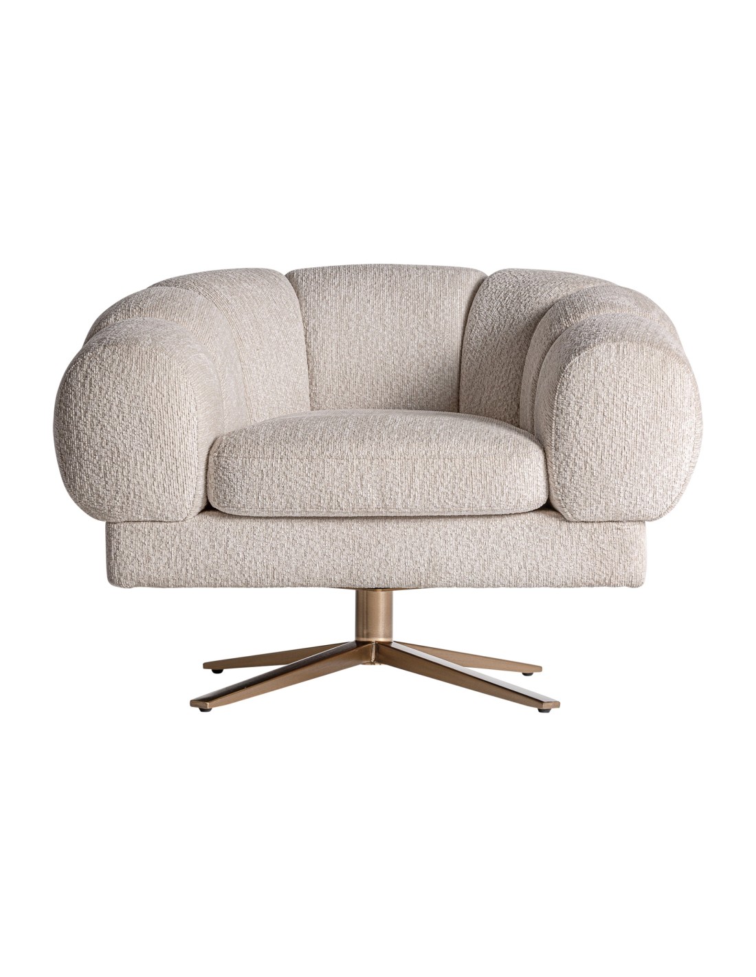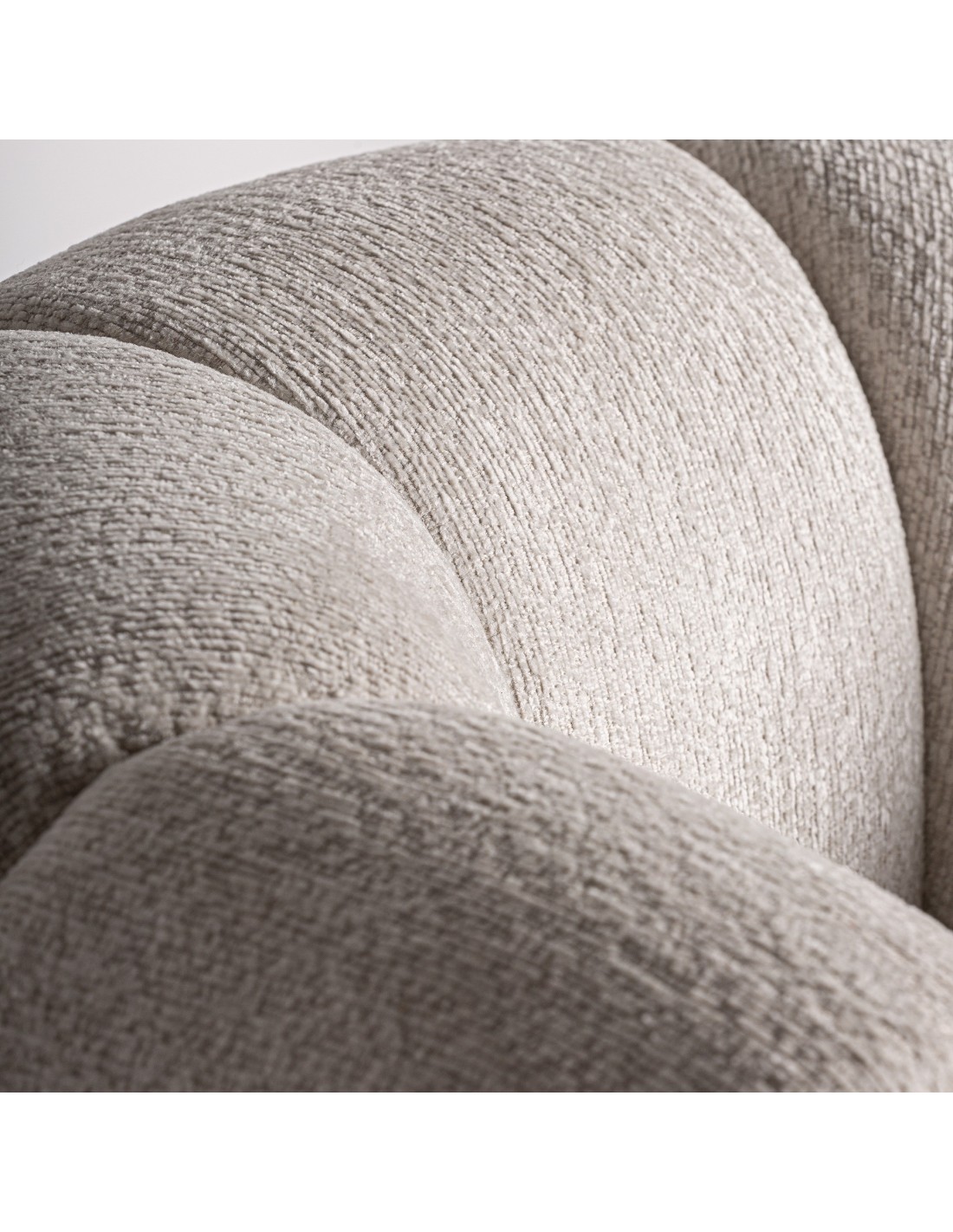 SILLÓN ELISE, DE ESTILO ART DECO. FABRICADO EN TERCIOPELO, EN COLOR BLANCO ROTO, COMBINADO CON ACERO Y ESPUMA. PRODUCTO DESENFUNDABLE.