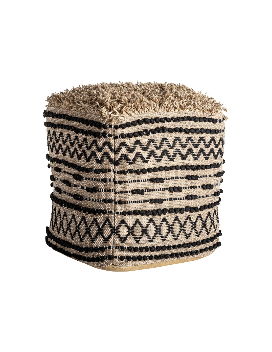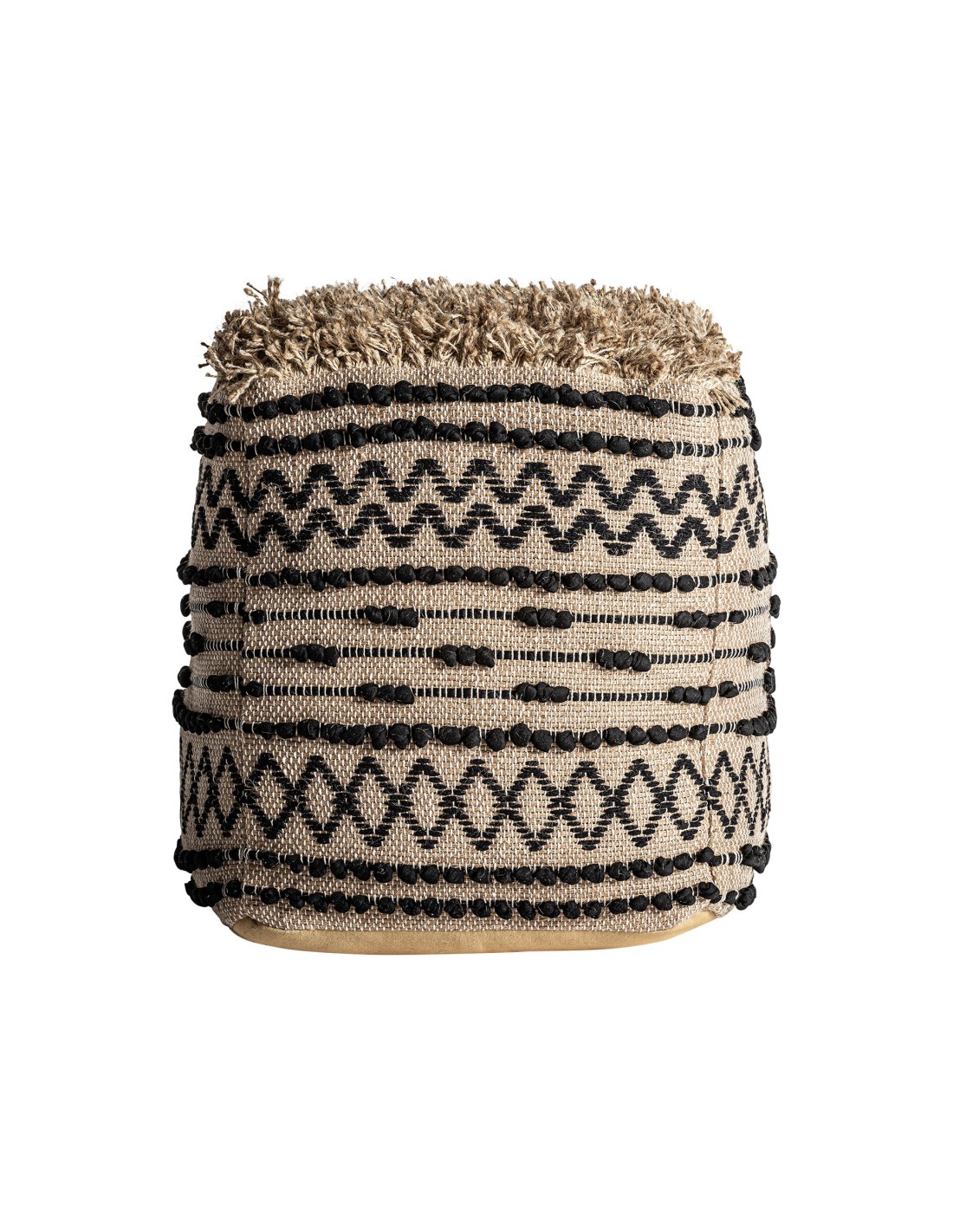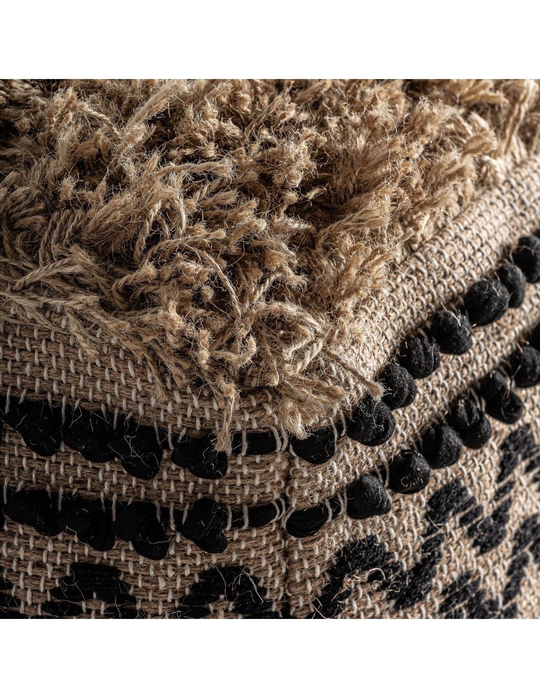 PUFF VASSLEY, DE ESTILO BOHO. FABRICADO EN YUTE, EN COLOR NEGRO, COMBINADO CON ALGODÓN, EN COLOR NATURAL Y POLIÉSTER.