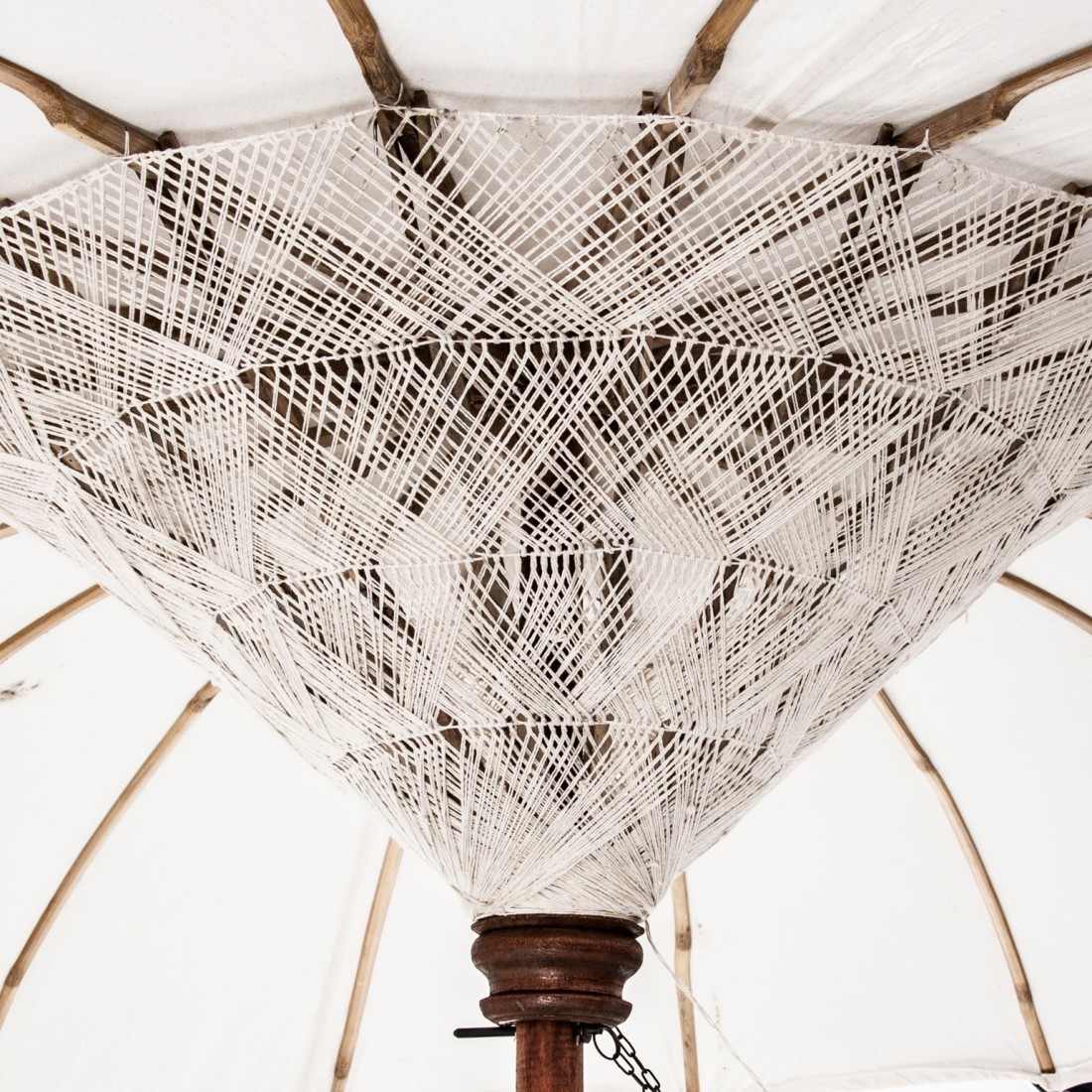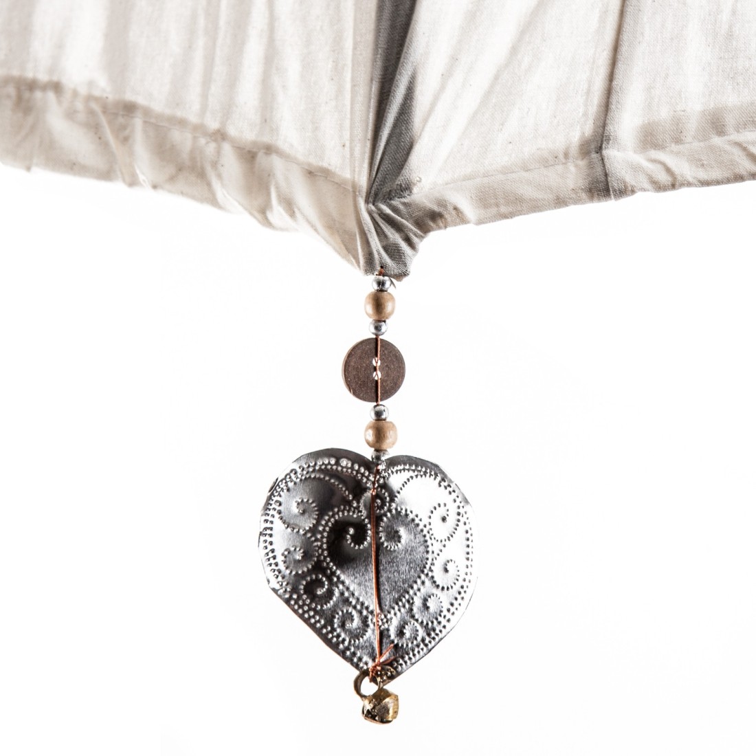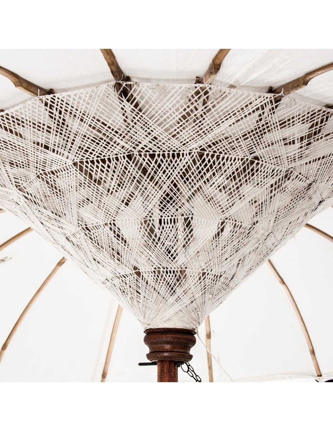 SOMBRILLA GELA, EN COLOR CREMA, DE ESTILO SHABBY CHIC. FABRICADO EN MADERA MINDI, COMBINADO CON LONETA.