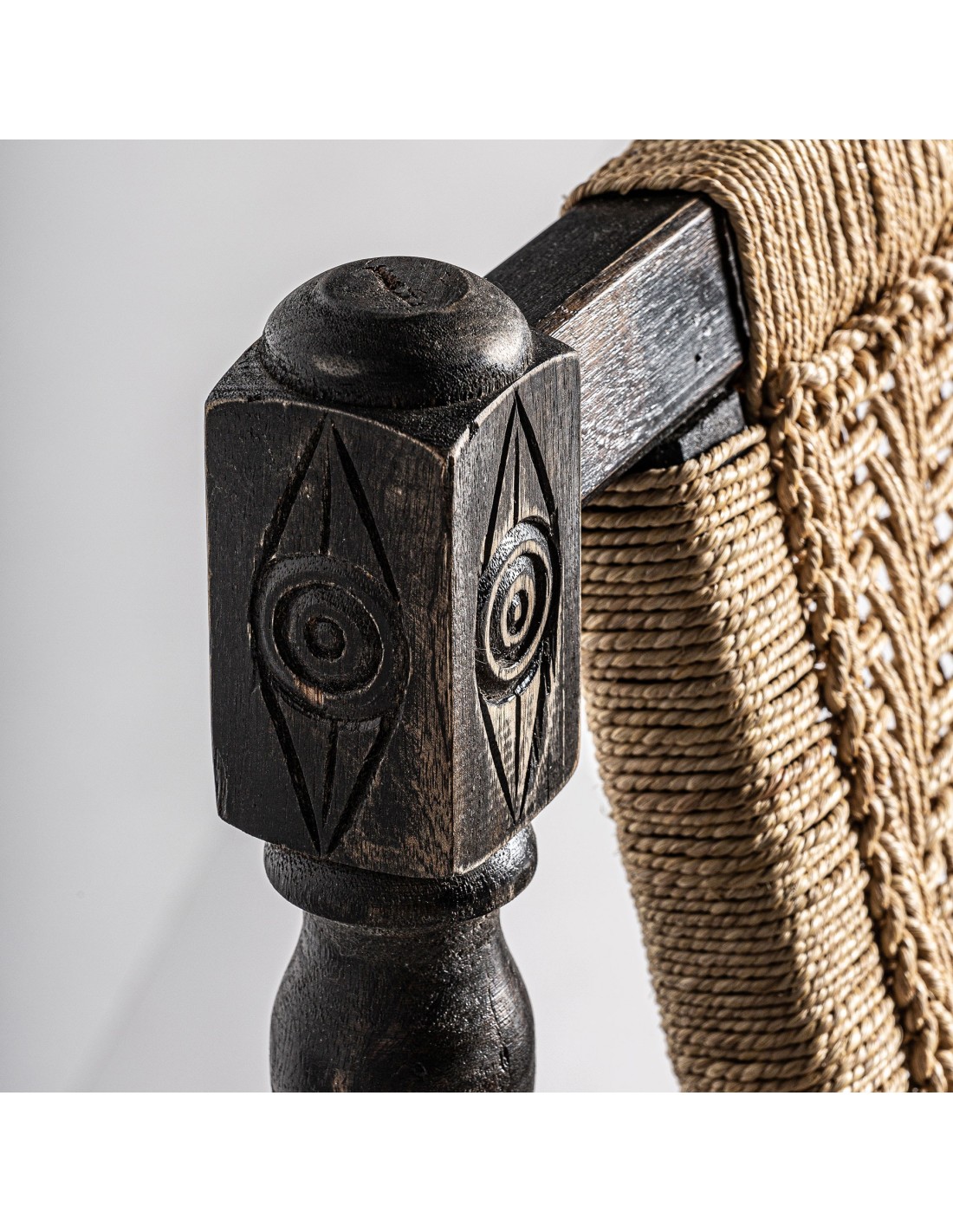 SILLÓN BACKLYN, DE ESTILO NÓRDICO. FABRICADO EN MADERA RECUPERADA, EN COLOR MARRÓN, COMBINADO CON CUERDA.