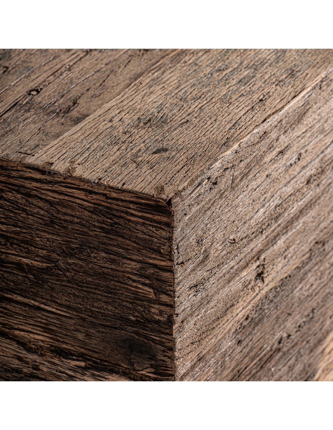 MESA DE CENTRO CARRIK, DE ESTILO COLONIAL. FABRICADO EN MADERA RECUPERADA, EN COLOR MARRÓN.
