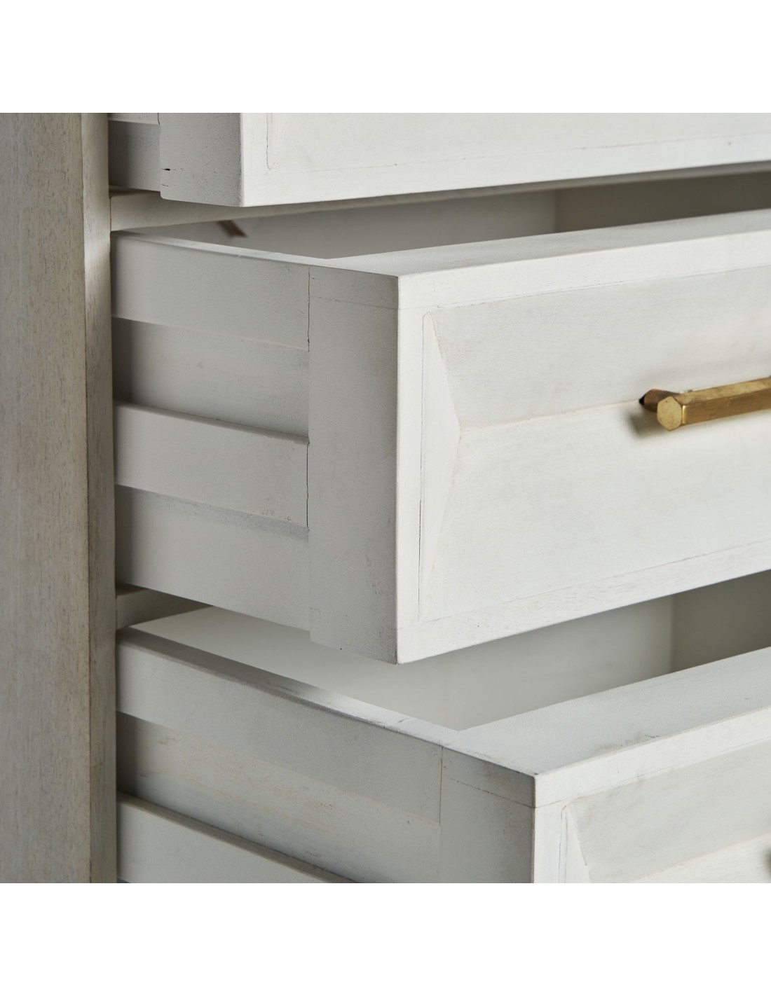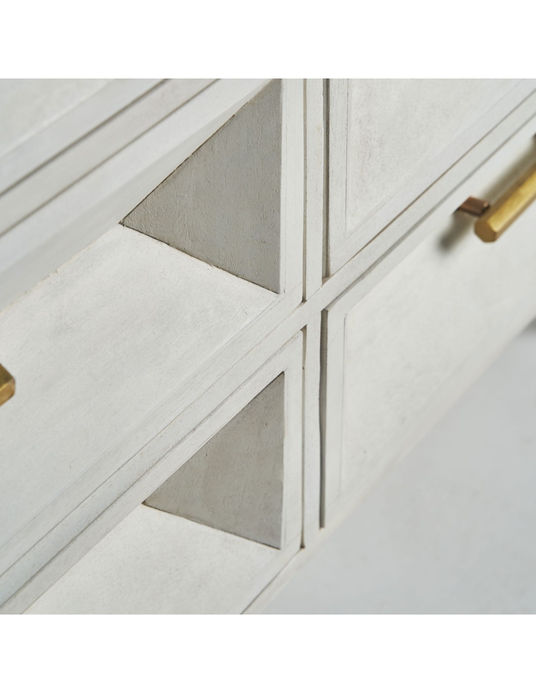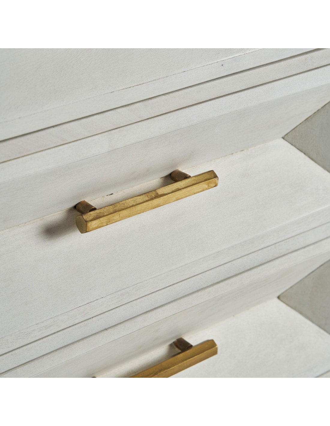 CÓMODA KEMPTEN, DE ESTILO ART DECO. FABRICADO EN MADERA DE MANGO, EN COLOR CREMA VIEJO, COMBINADO CON MADERA DM, EN COLOR ORO Y HIERRO. PRODUCTO DESMONTABLE.