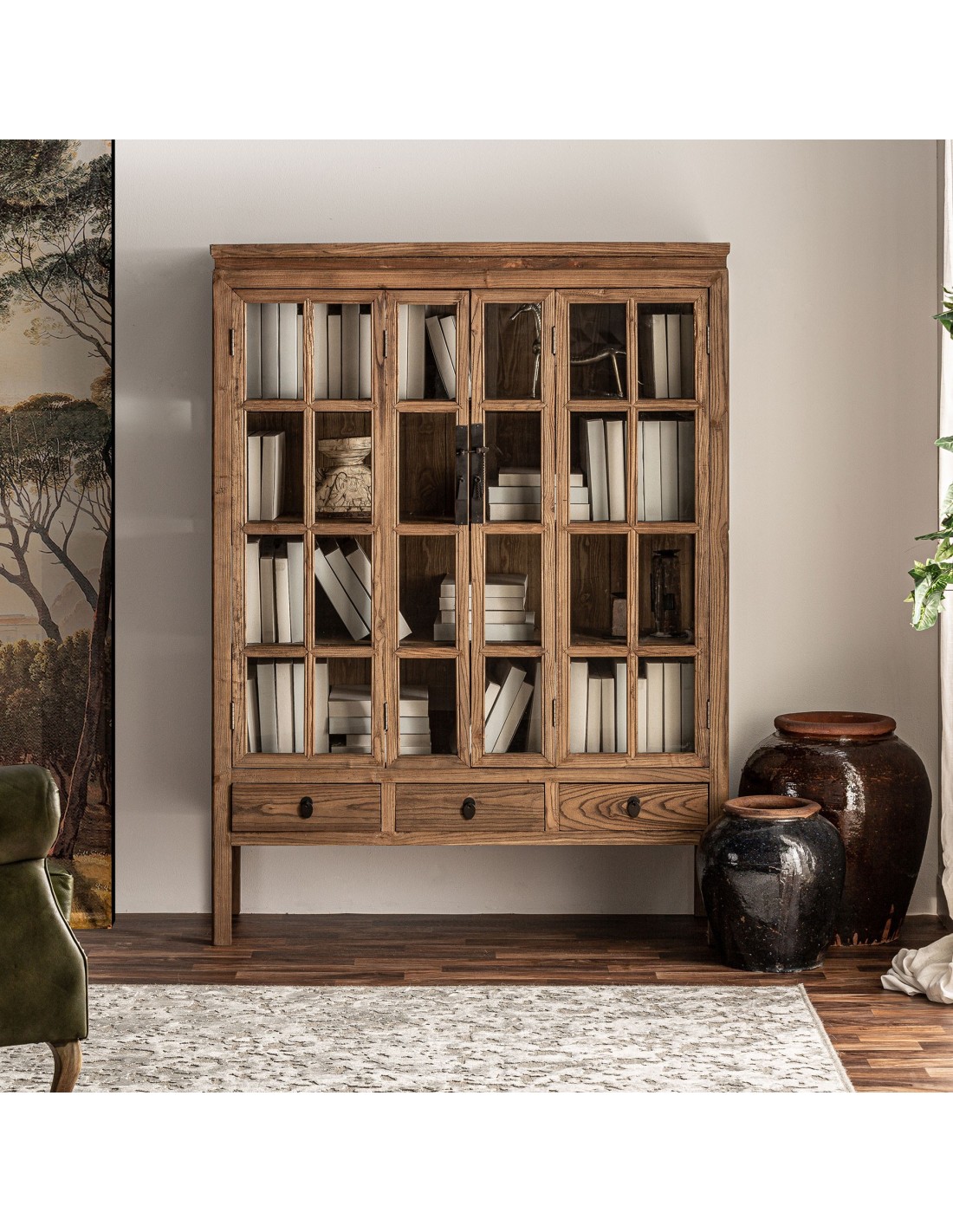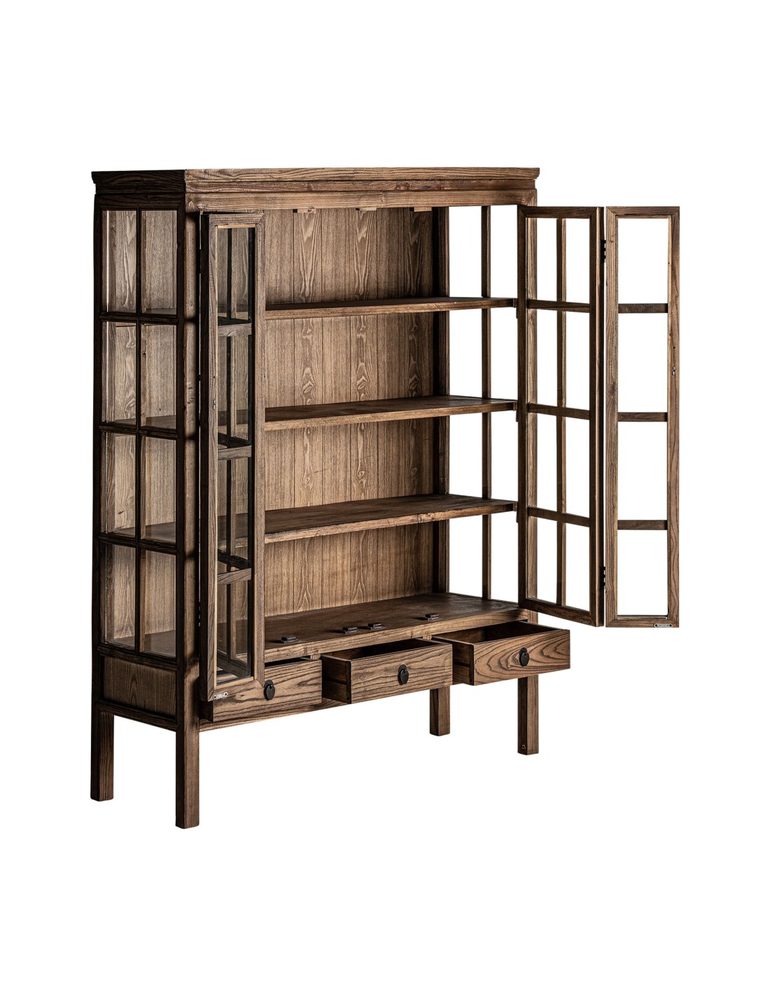 VITRINA TARTU, DE ESTILO COLONIAL. FABRICADO EN MADERA DE OLMO, EN COLOR MARRÓN.