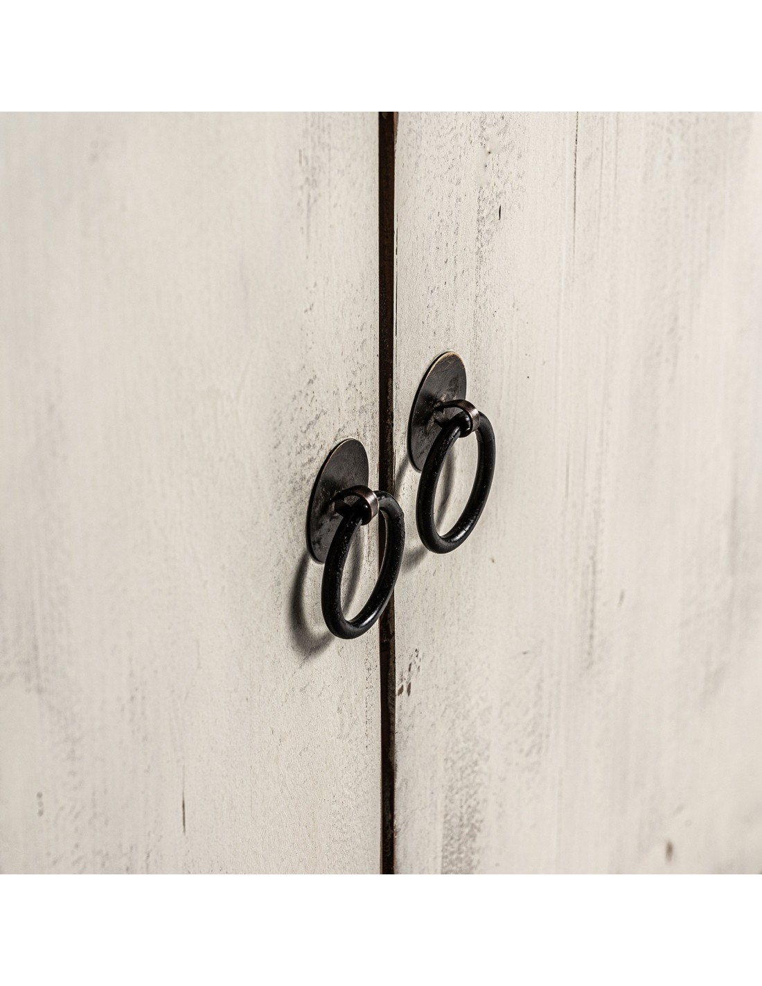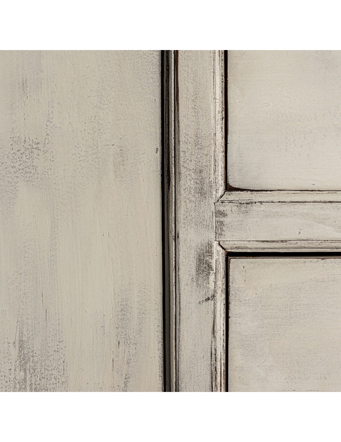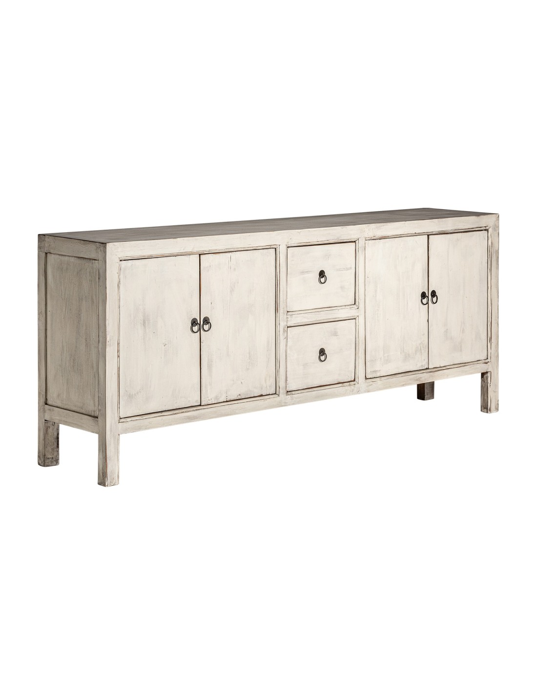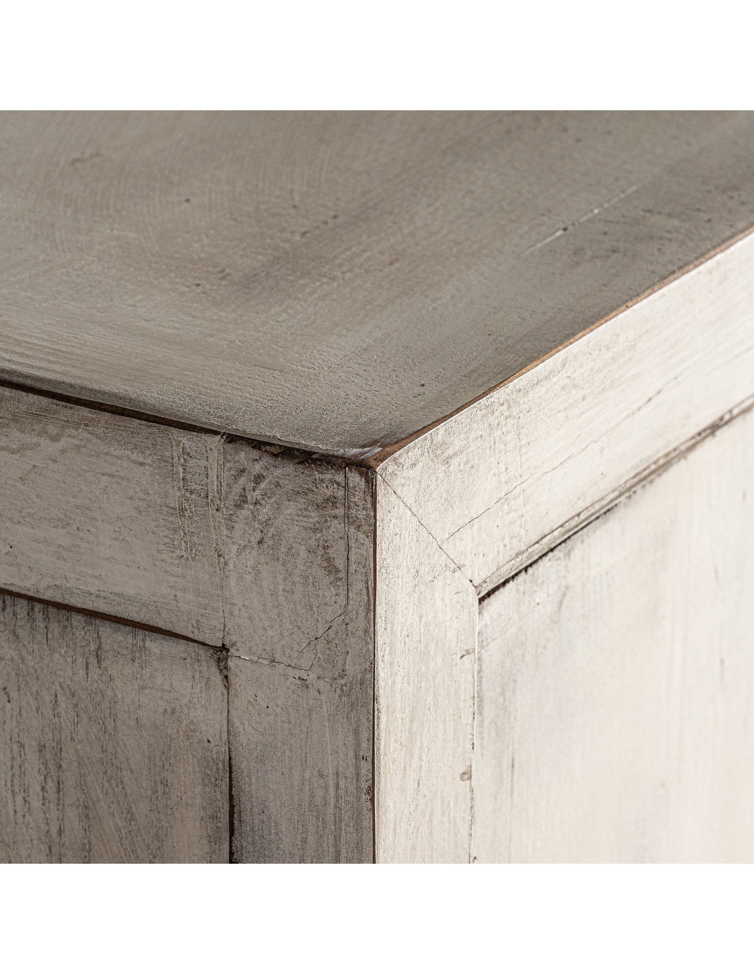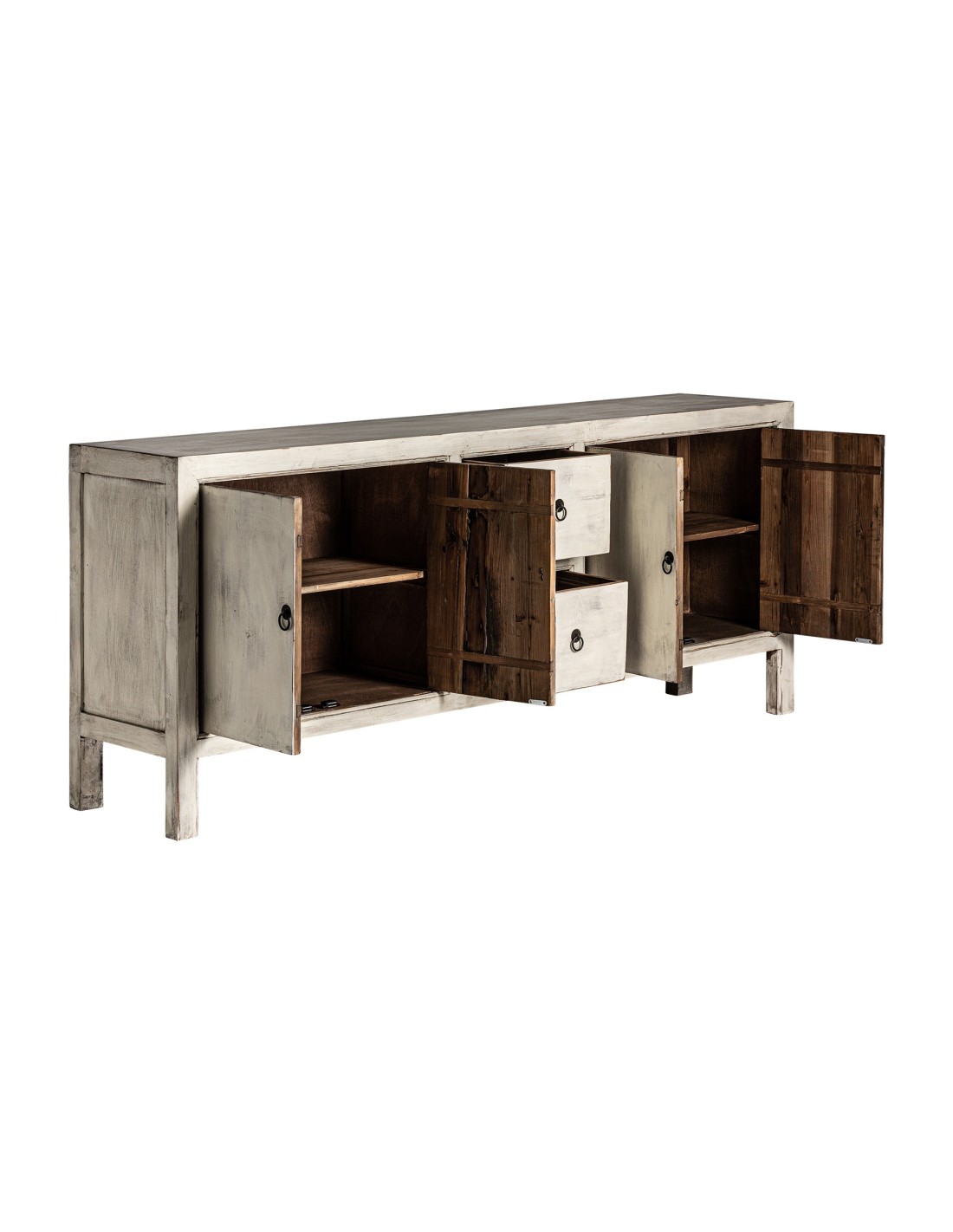 APARADOR BARATTI, EN COLOR BLANCO ROTO DECAPADO, DE ESTILO VINTAGE. FABRICADO EN MADERA DE PINO RECICLADO.