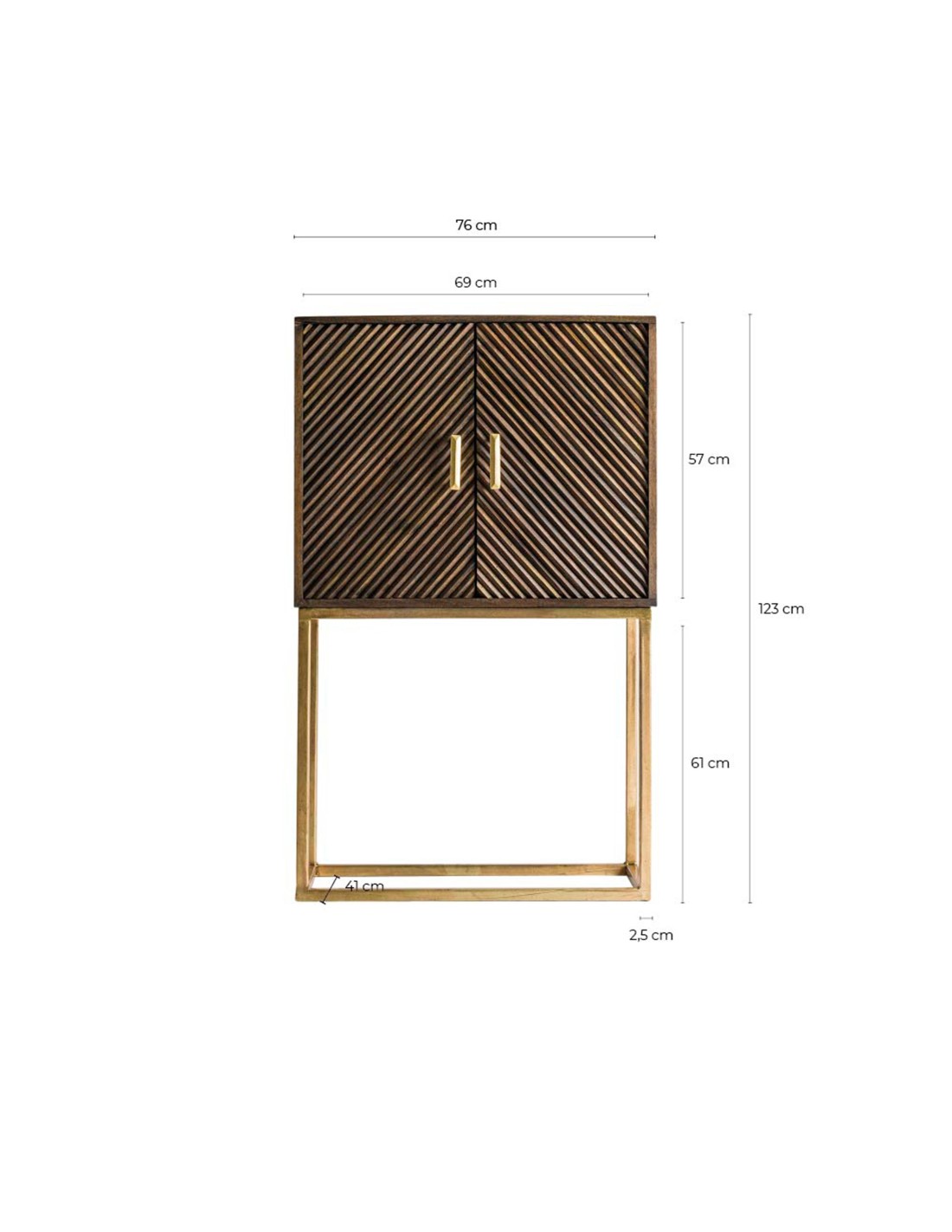 MUEBLE BAR KRAJ, DE ESTILO ART DECO. FABRICADO EN HIERRO, EN COLOR MARRÓN, COMBINADO CON MADERA DE MANGO, EN COLOR ORO.