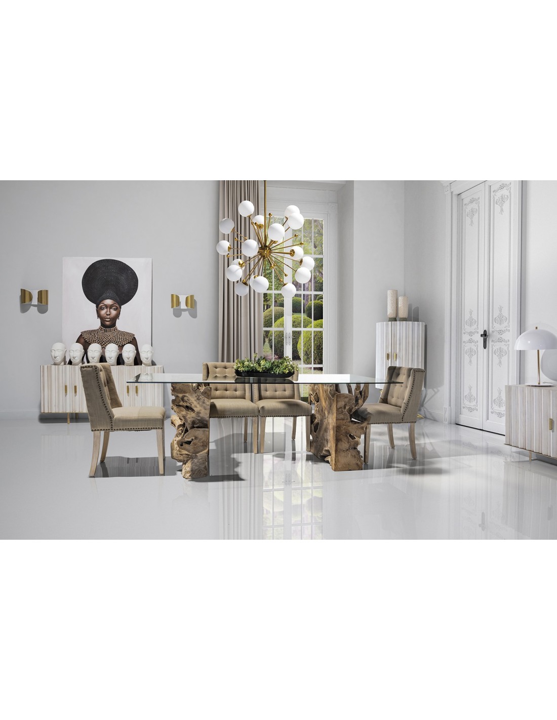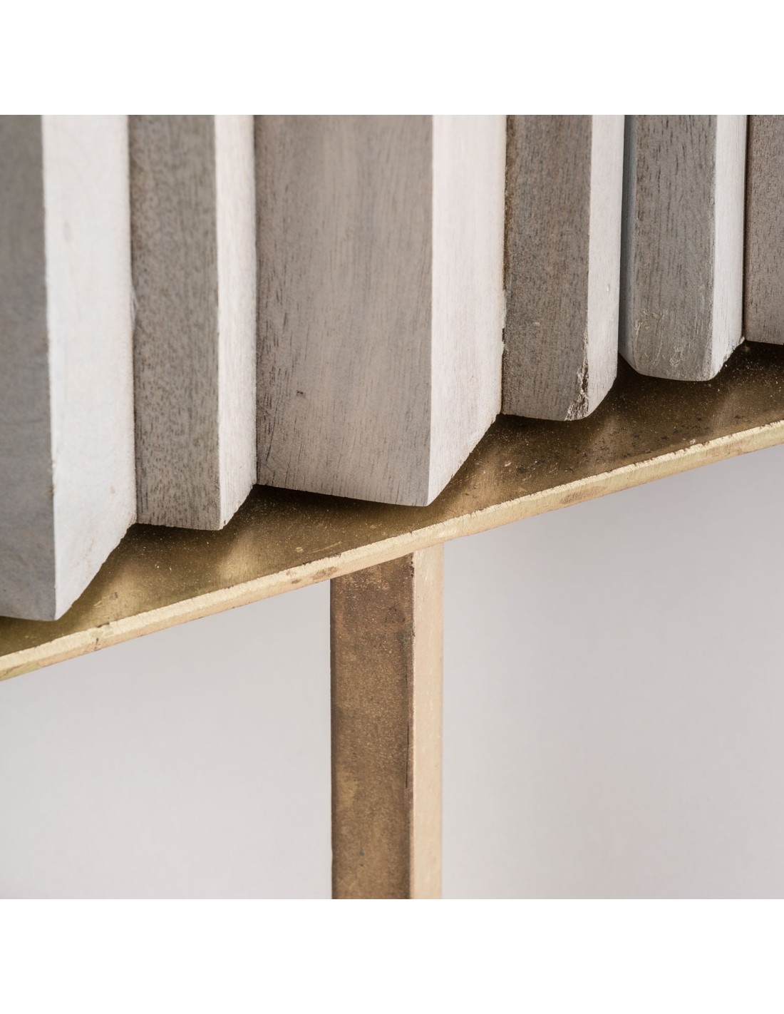 APARADOR LURE, EN COLOR BLANCO/ORO MATE, DE ESTILO ART DECO. FABRICADO EN HIERRO, COMBINADO CON MADERA DE MANGO.