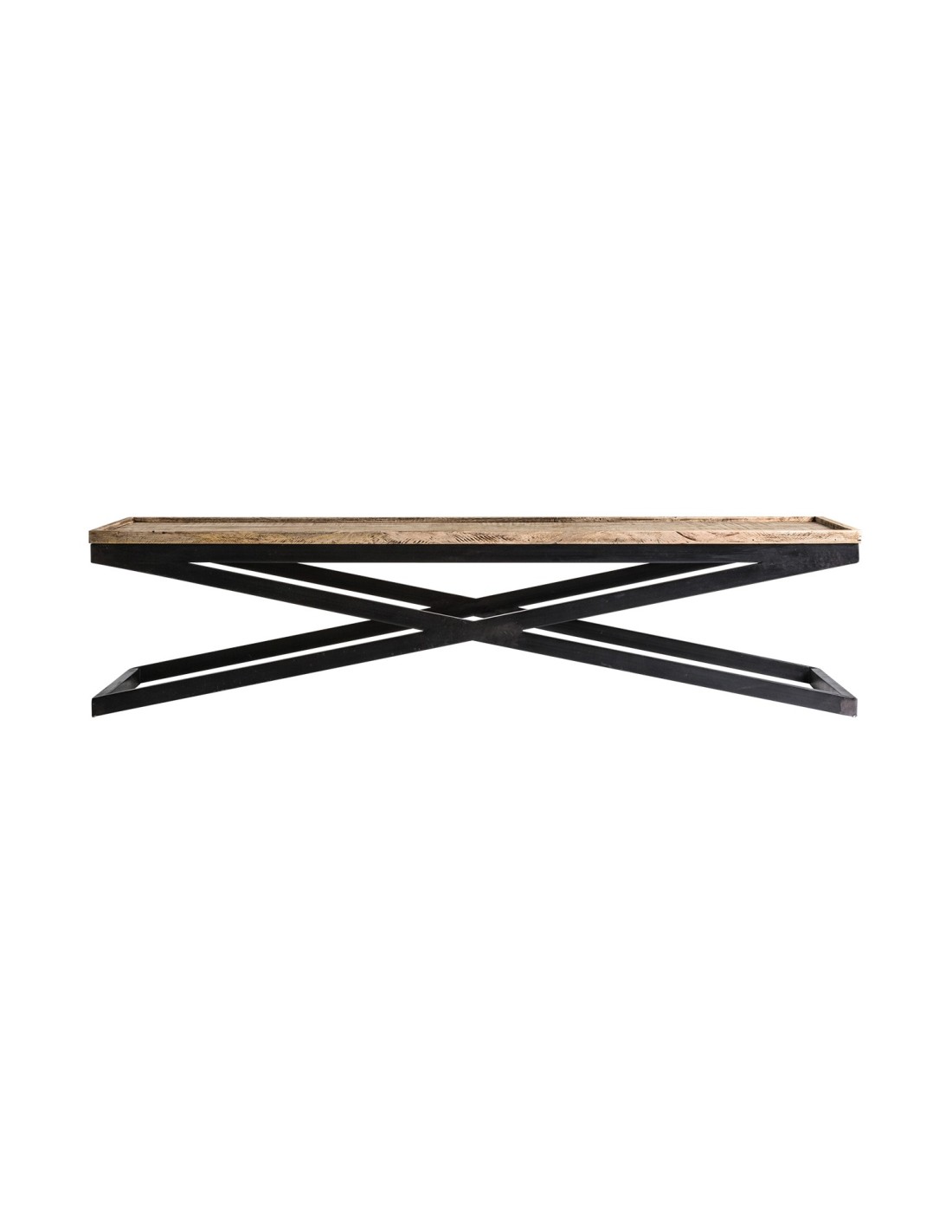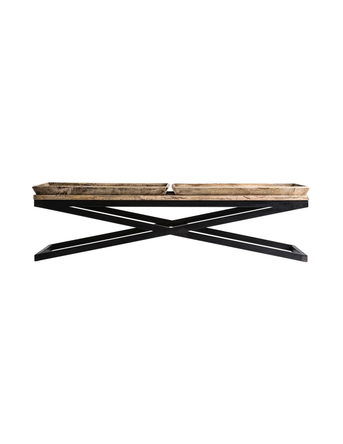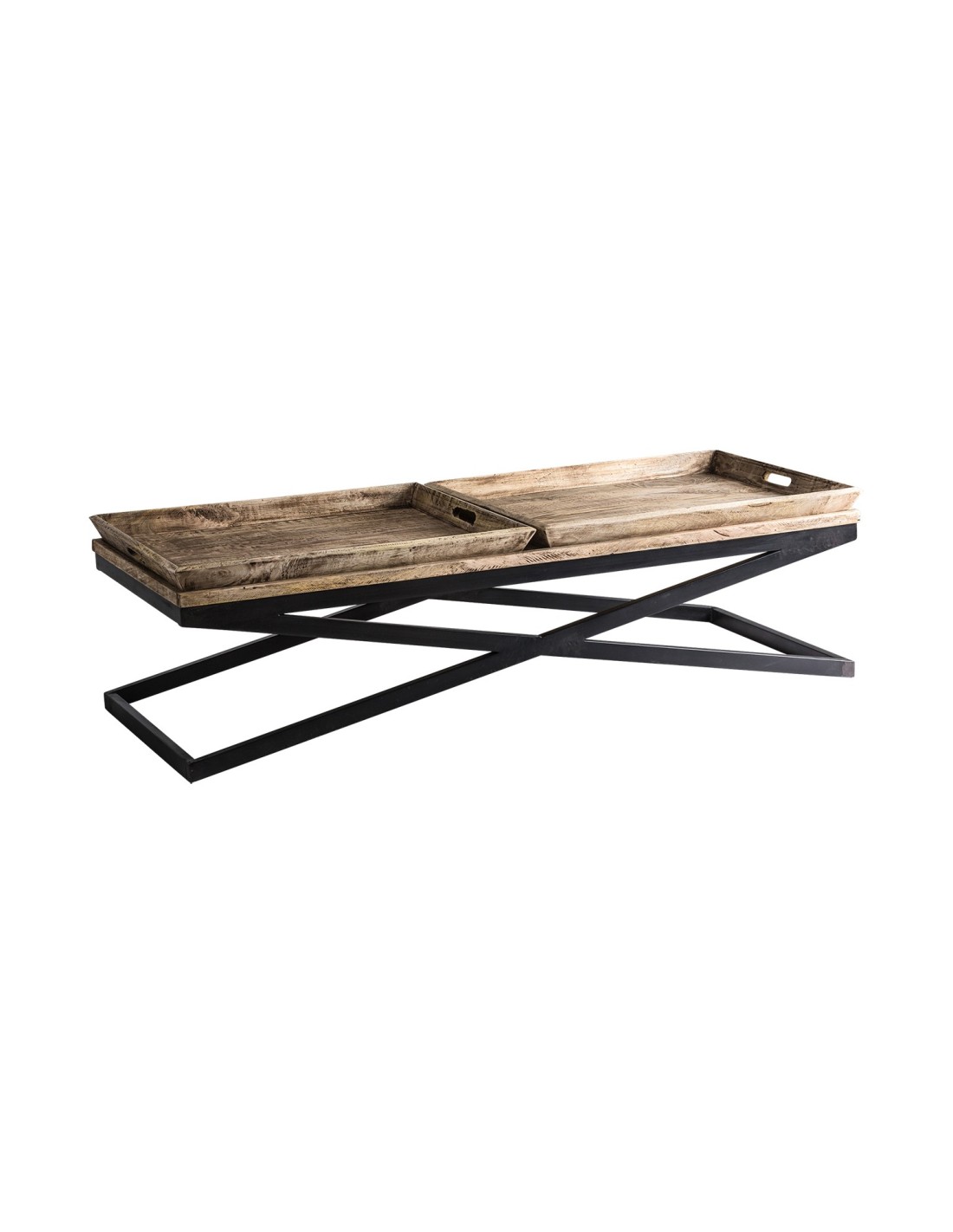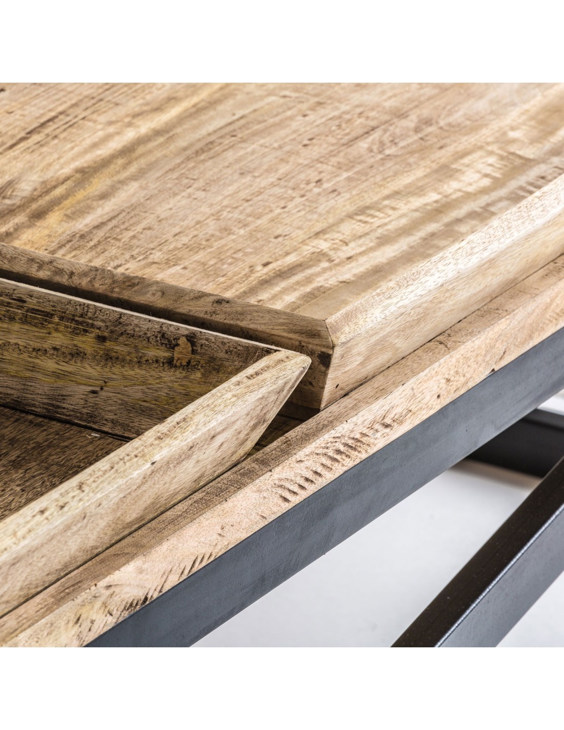 MESA DE CENTRO NEWAK, DE ESTILO INDUSTRIAL. FABRICADO EN HIERRO, EN COLOR NEGRO ENVEJECIDO, COMBINADO CON MADERA DE MANGO, EN COLOR NATURAL. PRODUCTO DESMONTABLE.