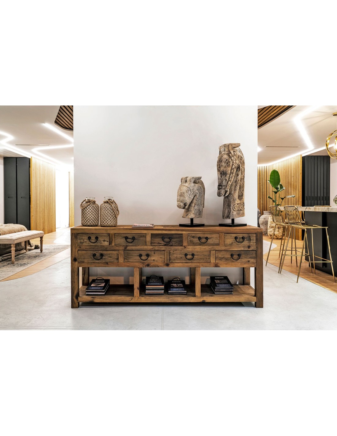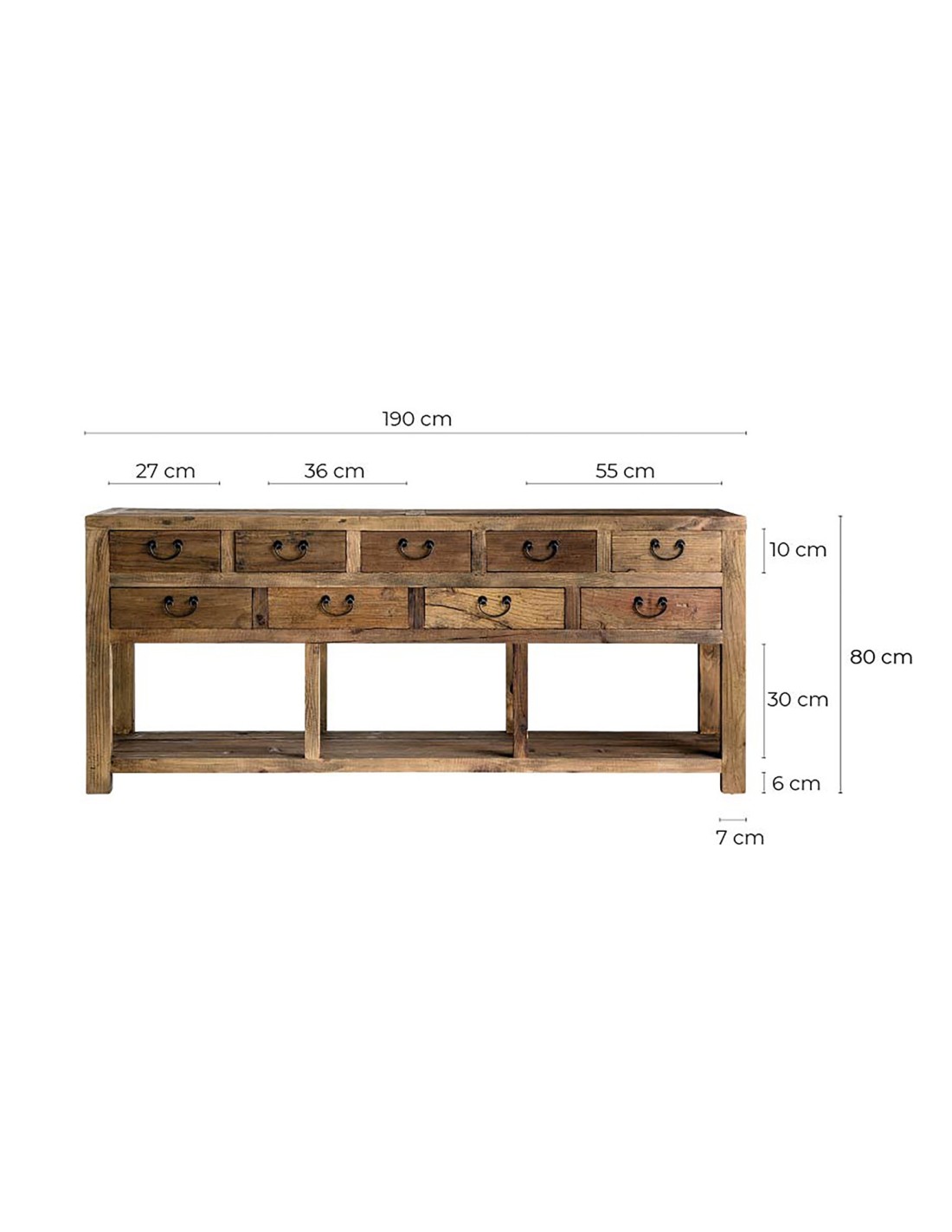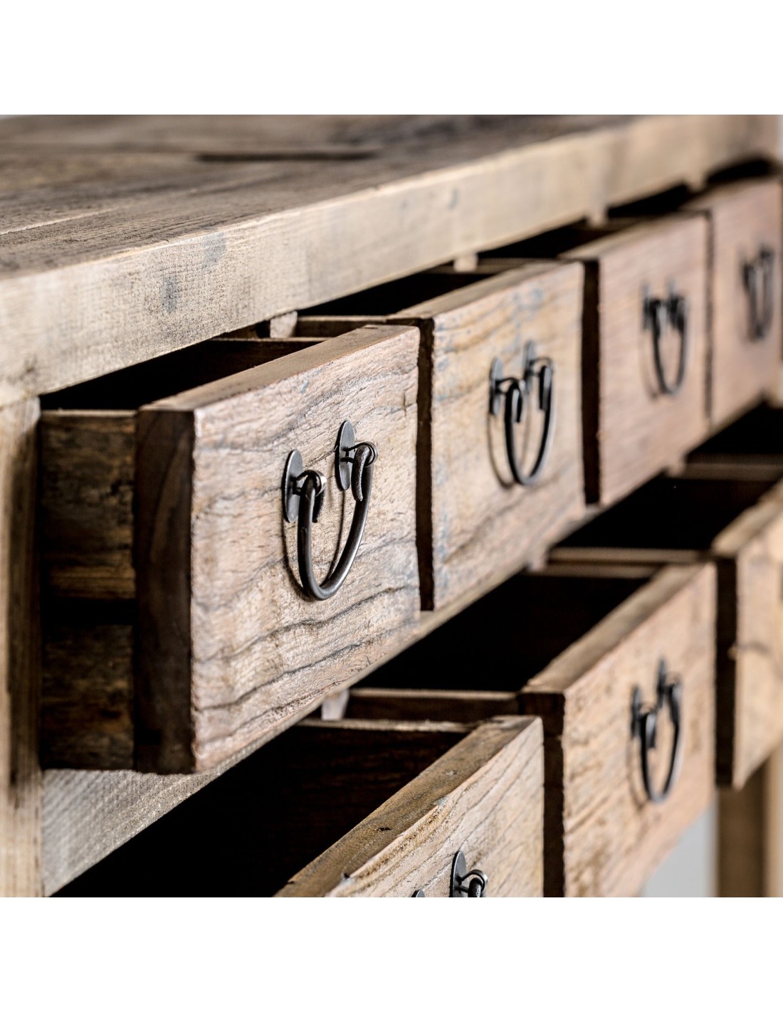 CONSOLA IKAST, DE ESTILO COLONIAL. FABRICADO EN MADERA DE PINO RECICLADO, EN COLOR MARRÓN ENVEJECIDO.