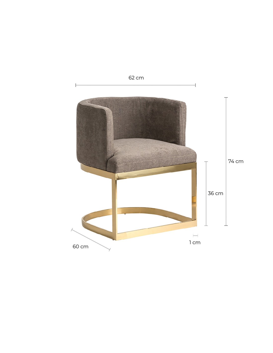 SILLA BETLIAR, EN COLOR GRIS/ORO VIEJO, DE ESTILO ART DECO. FABRICADO EN POLIÉSTER, COMBINADO CON ACERO Y MADERA DM. RELLENO: ESPUMA.