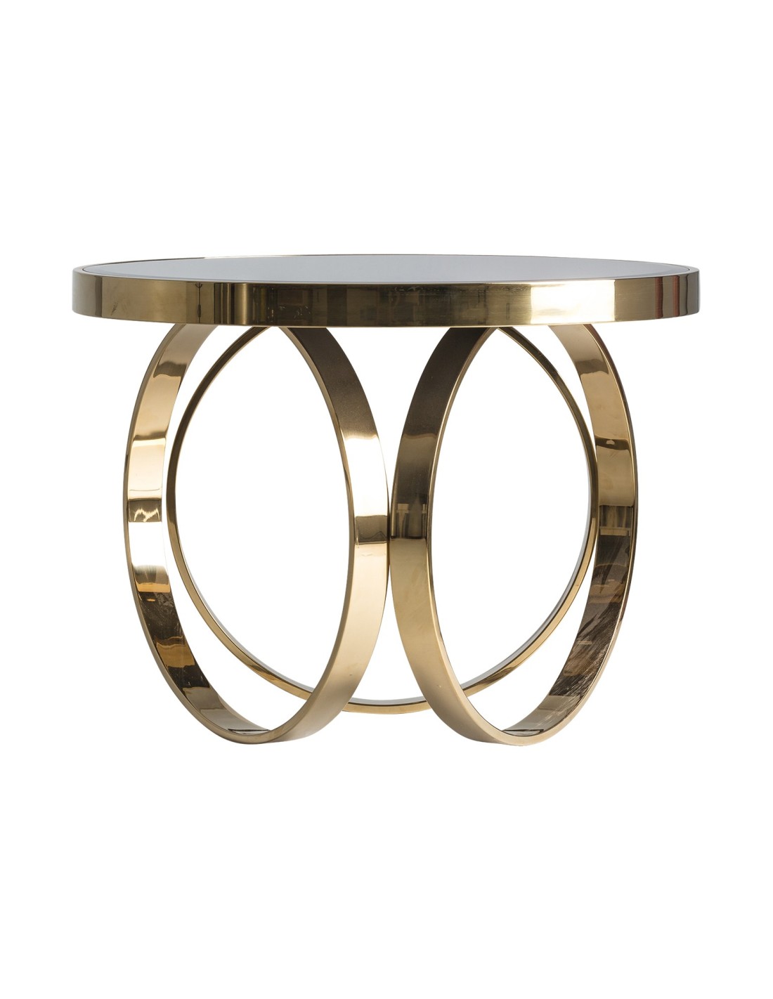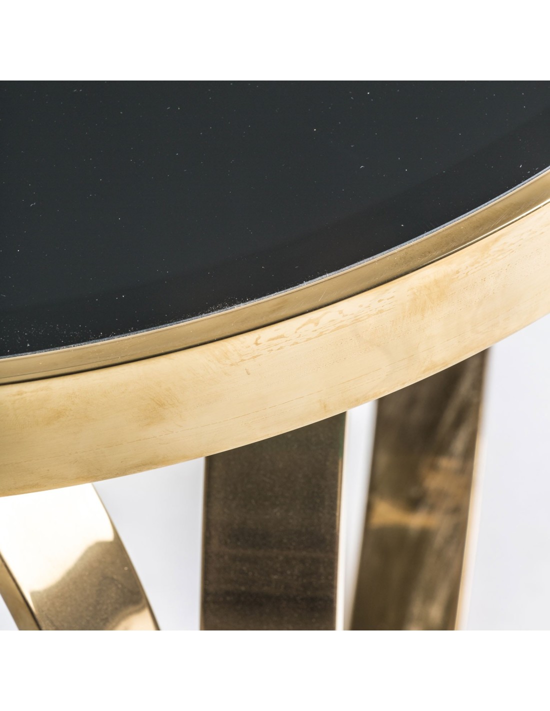 MESA DE CENTRO REDA, EN COLOR NEGRO/ORO, DE ESTILO CLÁSICO. FABRICADO EN ESPEJO, COMBINADO CON ACERO Y VIDRIO. PRODUCTO DESMONTABLE.
