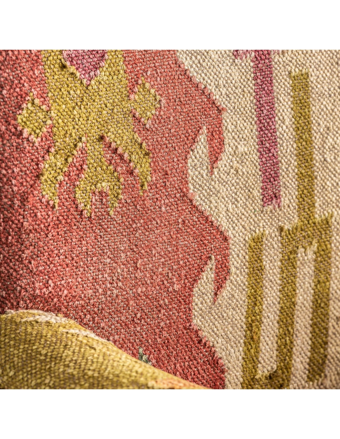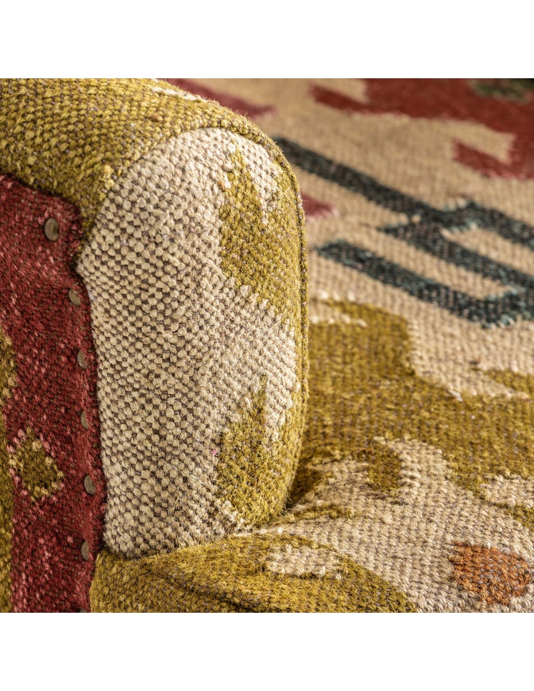 SILLÓN SVETA, DE ESTILO VINTAGE. FABRICADO EN MADERA DE MANGO, EN COLOR TONOS CLAROS KILLIM, COMBINADO CON YUTE Y POLIÉSTER.