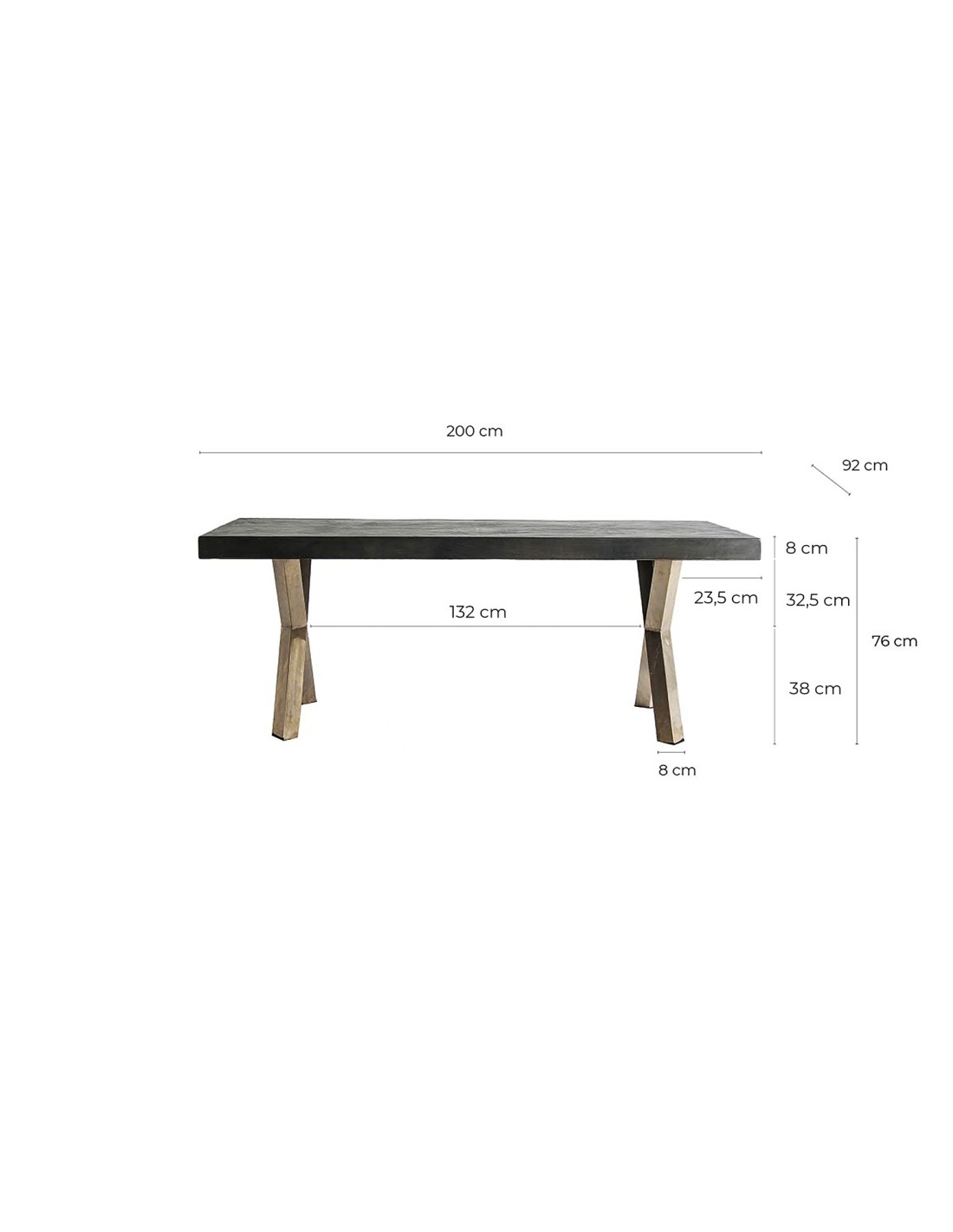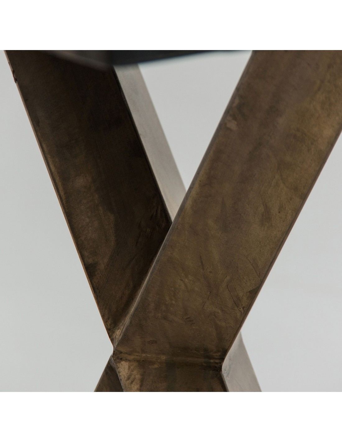 MESA COMEDOR KAPIE, DE ESTILO ART DECO. FABRICADO EN HIERRO, EN COLOR ORO, COMBINADO CON MADERA DE OLMO. PRODUCTO DESMONTABLE.