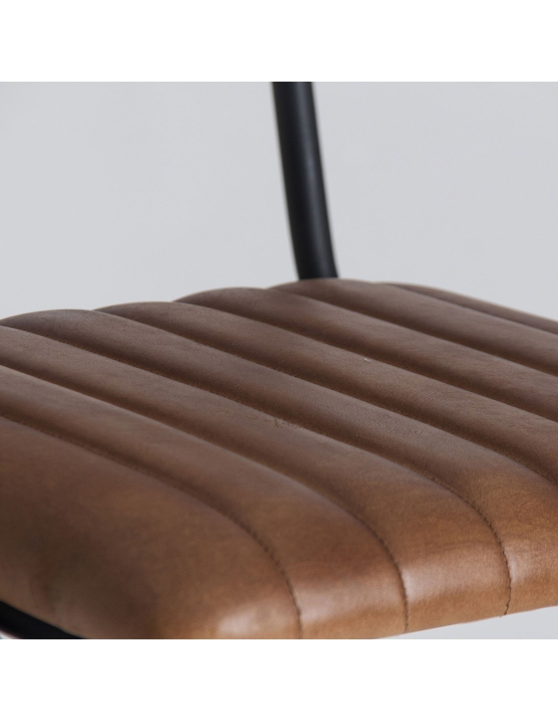 SILLA CHADRON, EN COLOR NEGRO/MARRÓN, DE ESTILO VINTAGE. FABRICADO EN HIERRO, COMBINADO CON CUERO CABRA.
