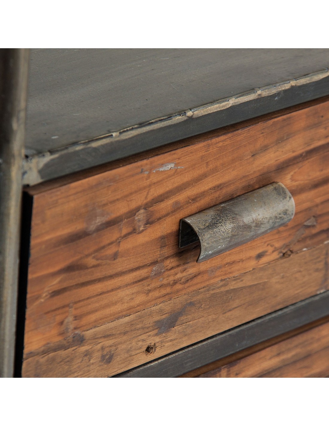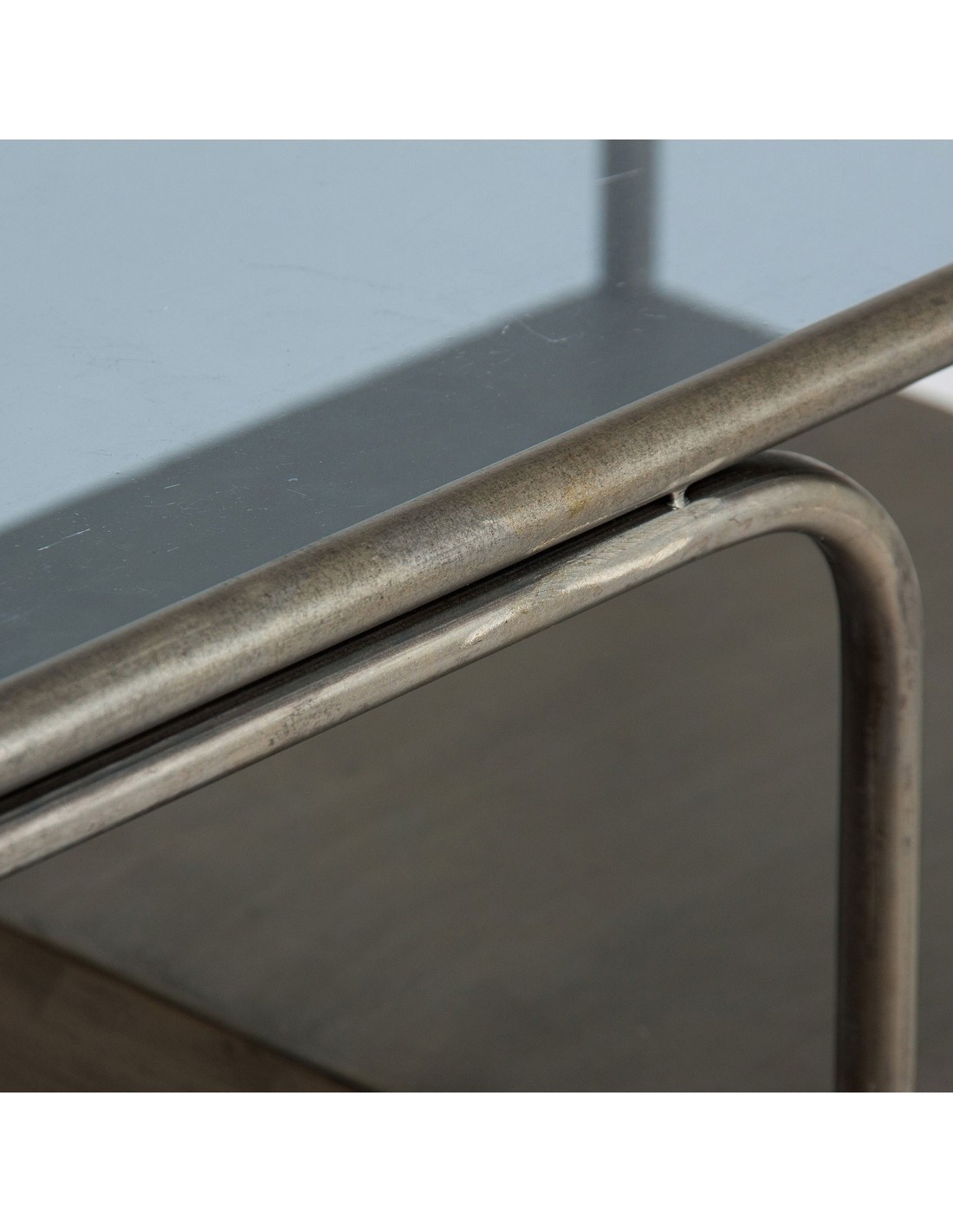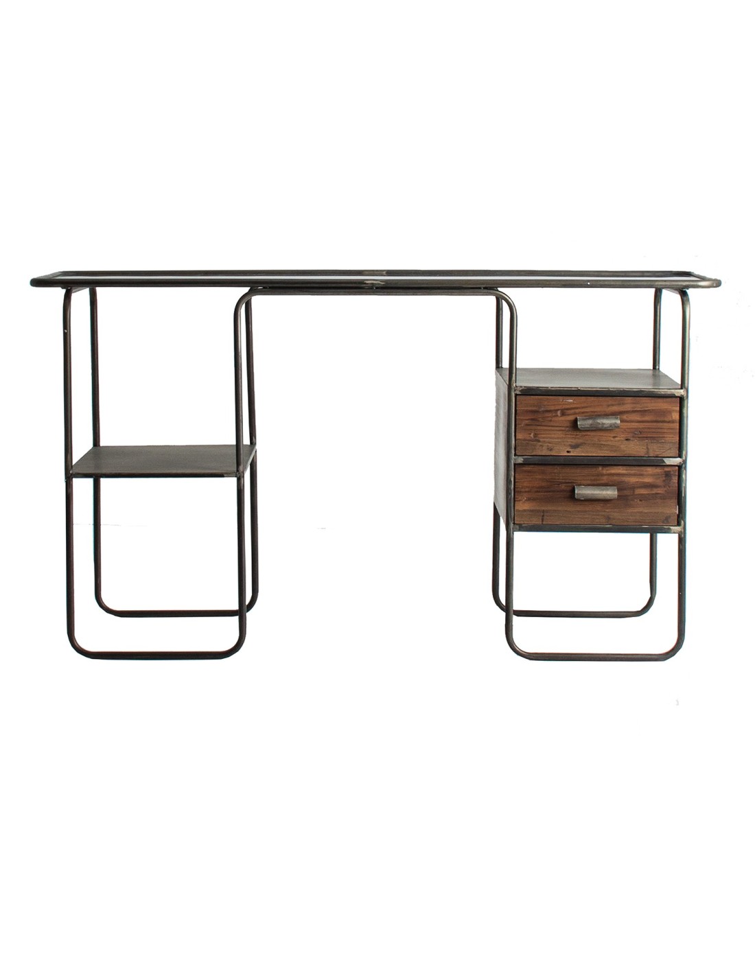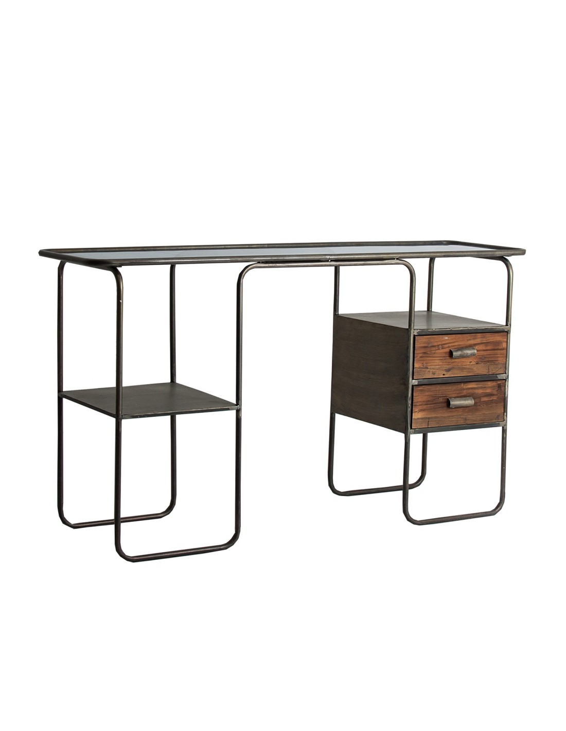 ESCRITORIO RECTANGULAR BLESA, EN COLOR NEGRO/NATURAL, DE ESTILO INDUSTRIAL. FABRICADO EN HIERRO, COMBINADO CON MADERA DM Y VIDRIO.