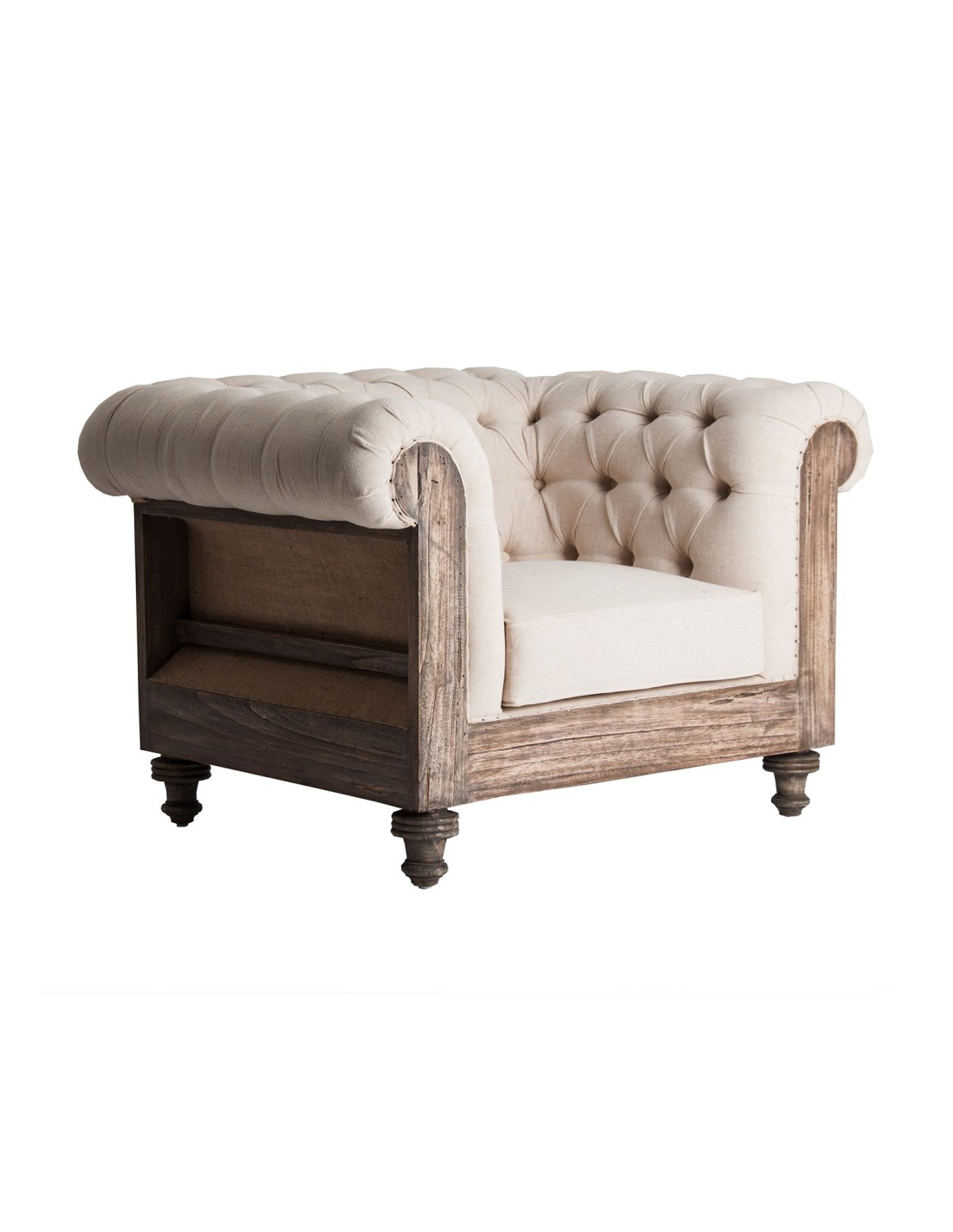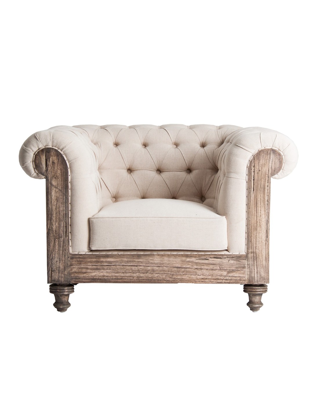 SILLÓN GORE, DE ESTILO VINTAGE. FABRICADO EN MADERA TROPICAL, EN COLOR BEIGE, COMBINADO CON POLIÉSTER. PRODUCTO DESENFUNDABLE.