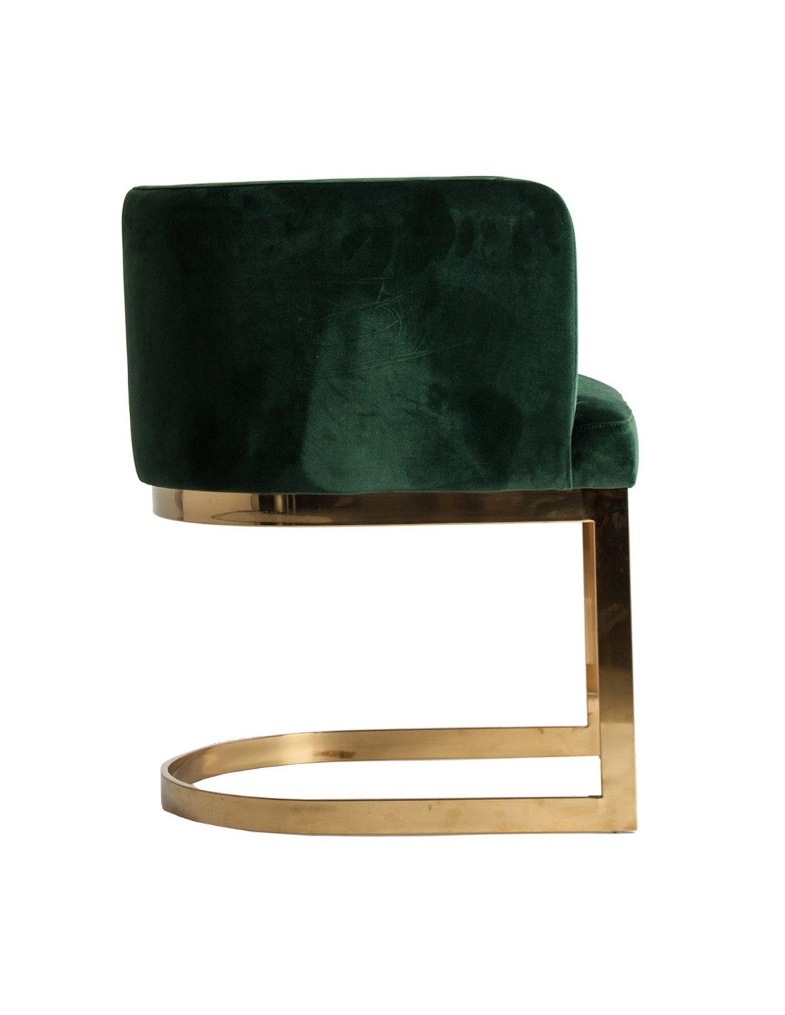 SILLA BETLIAR, DE ESTILO CONTEMPORÁNEO. FABRICADO EN TERCIOPELO, EN COLOR VERDE, COMBINADO CON MADERA DM Y ACERO. RELLENO: ESPUMA.