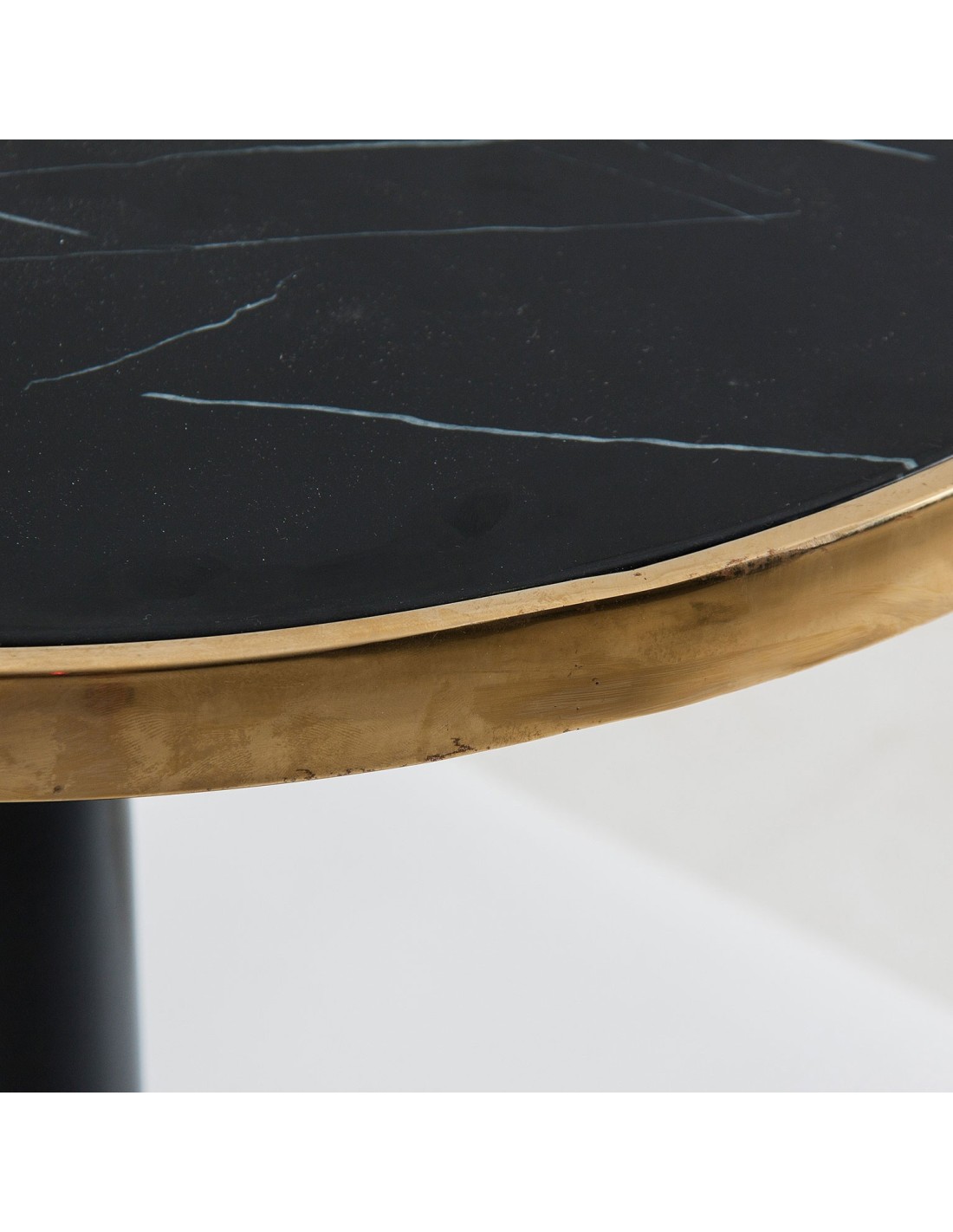 MESA AUXILIAR THAN, DE ESTILO ART DECO. FABRICADO EN MÁRMOL SINTÉTICO, EN COLOR NEGRO BRILLO, COMBINADO CON ACERO, EN COLOR ORO Y HIERRO. PRODUCTO DESMONTABLE.