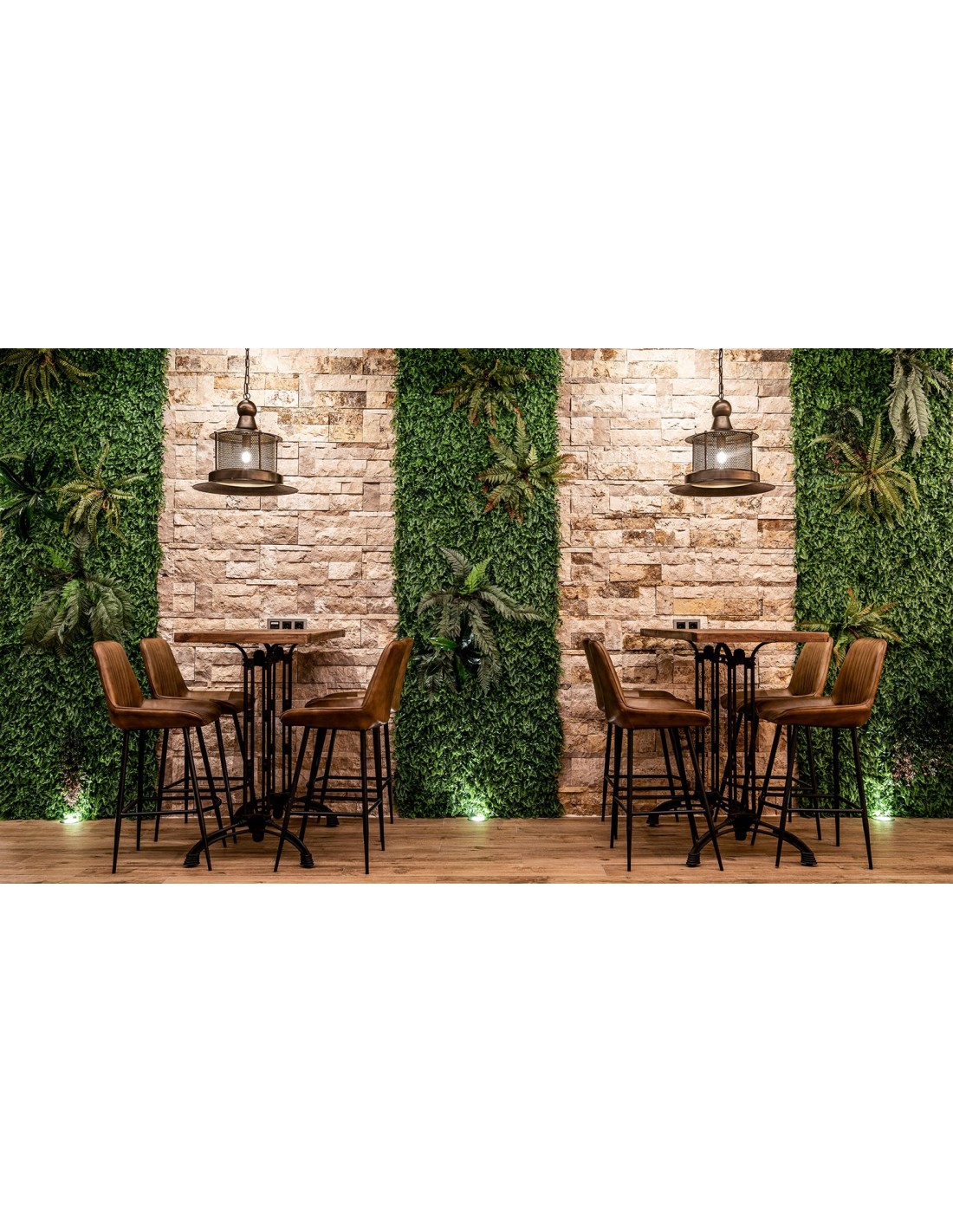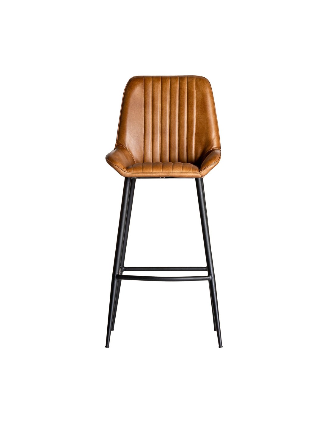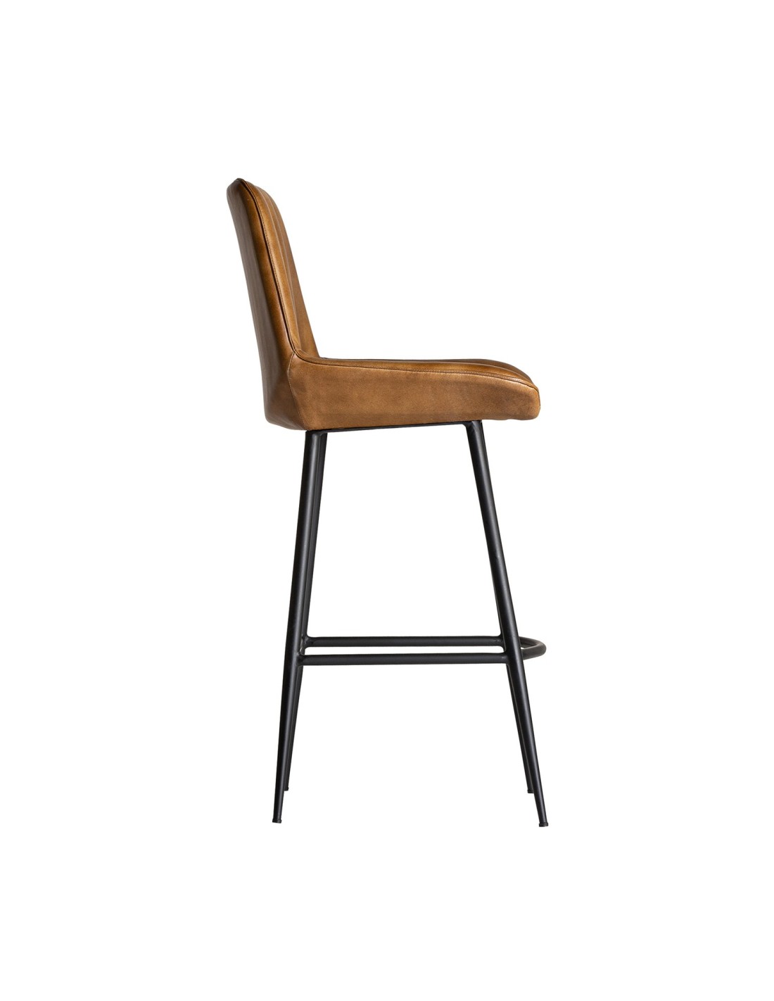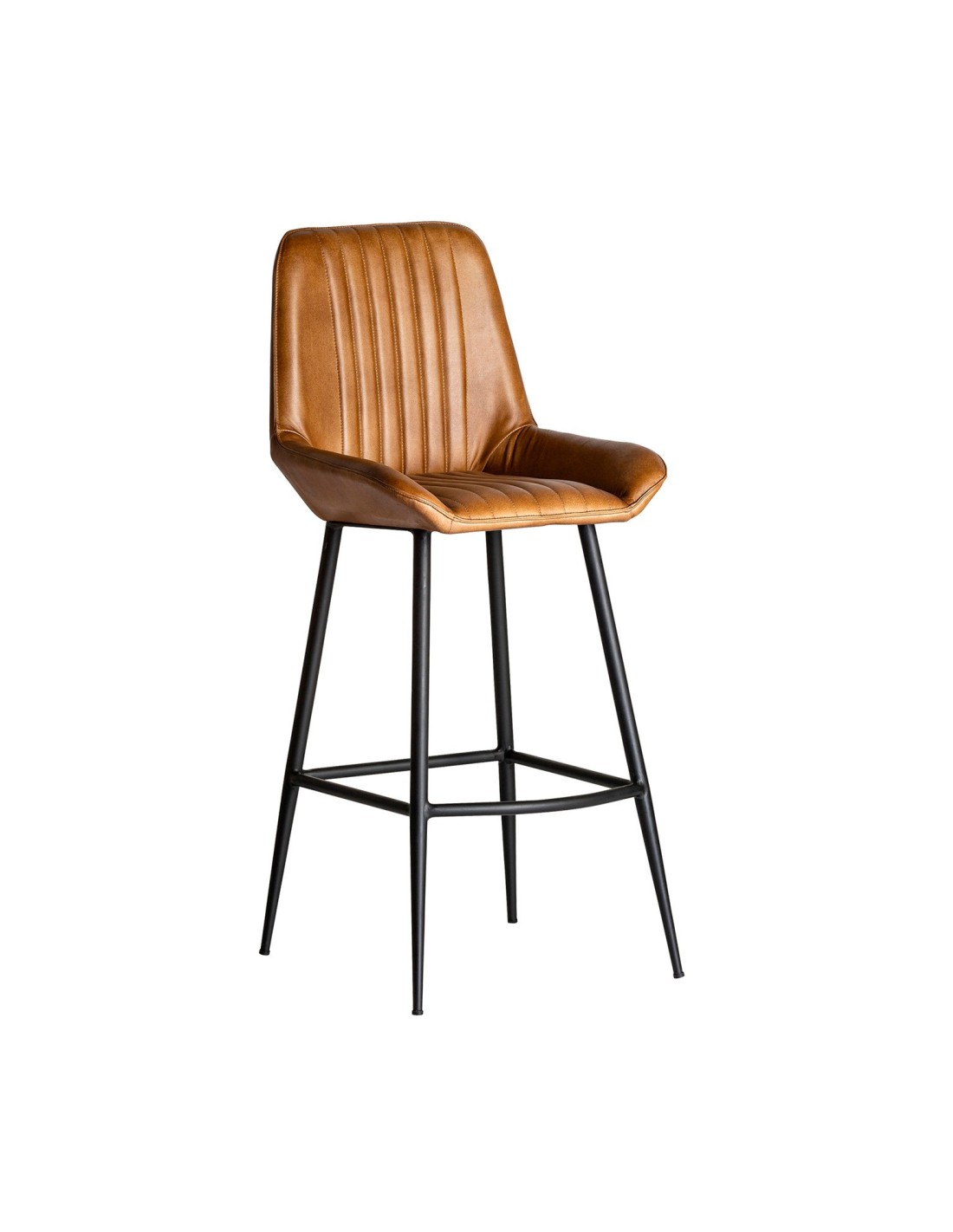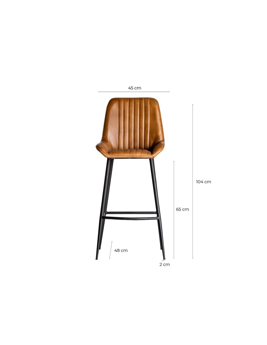 TABURETE MORTON, EN COLOR NEGRO/MARRÓN, DE ESTILO VINTAGE. FABRICADO EN HIERRO, COMBINADO CON CUERO. PRODUCTO DESMONTABLE.