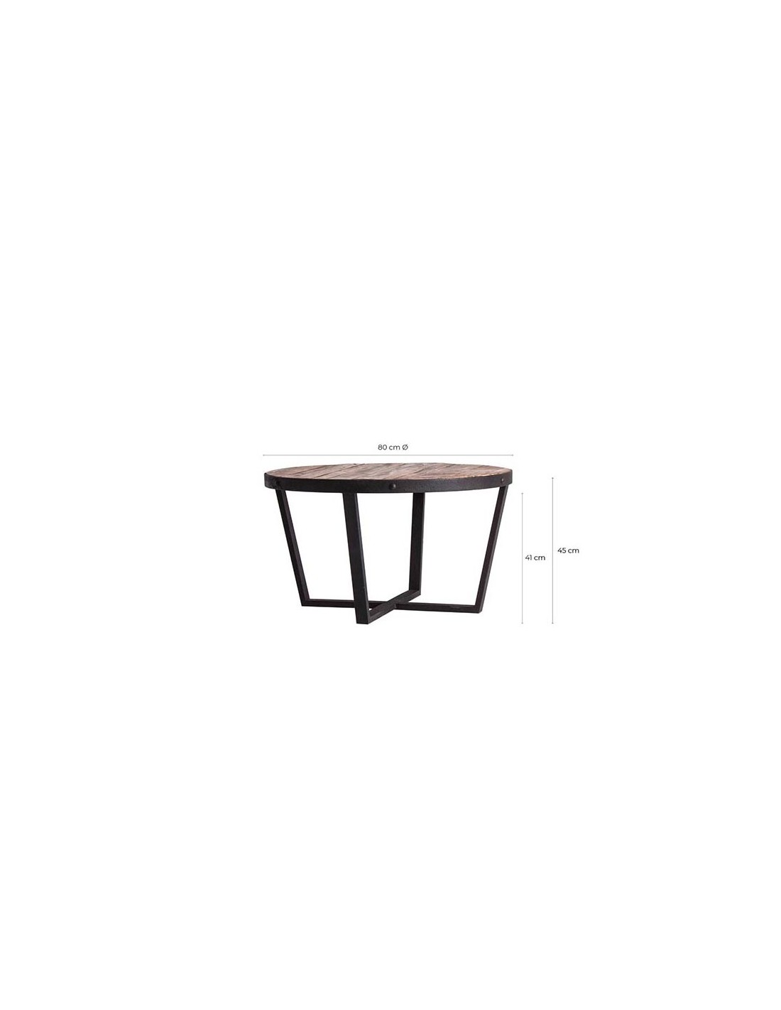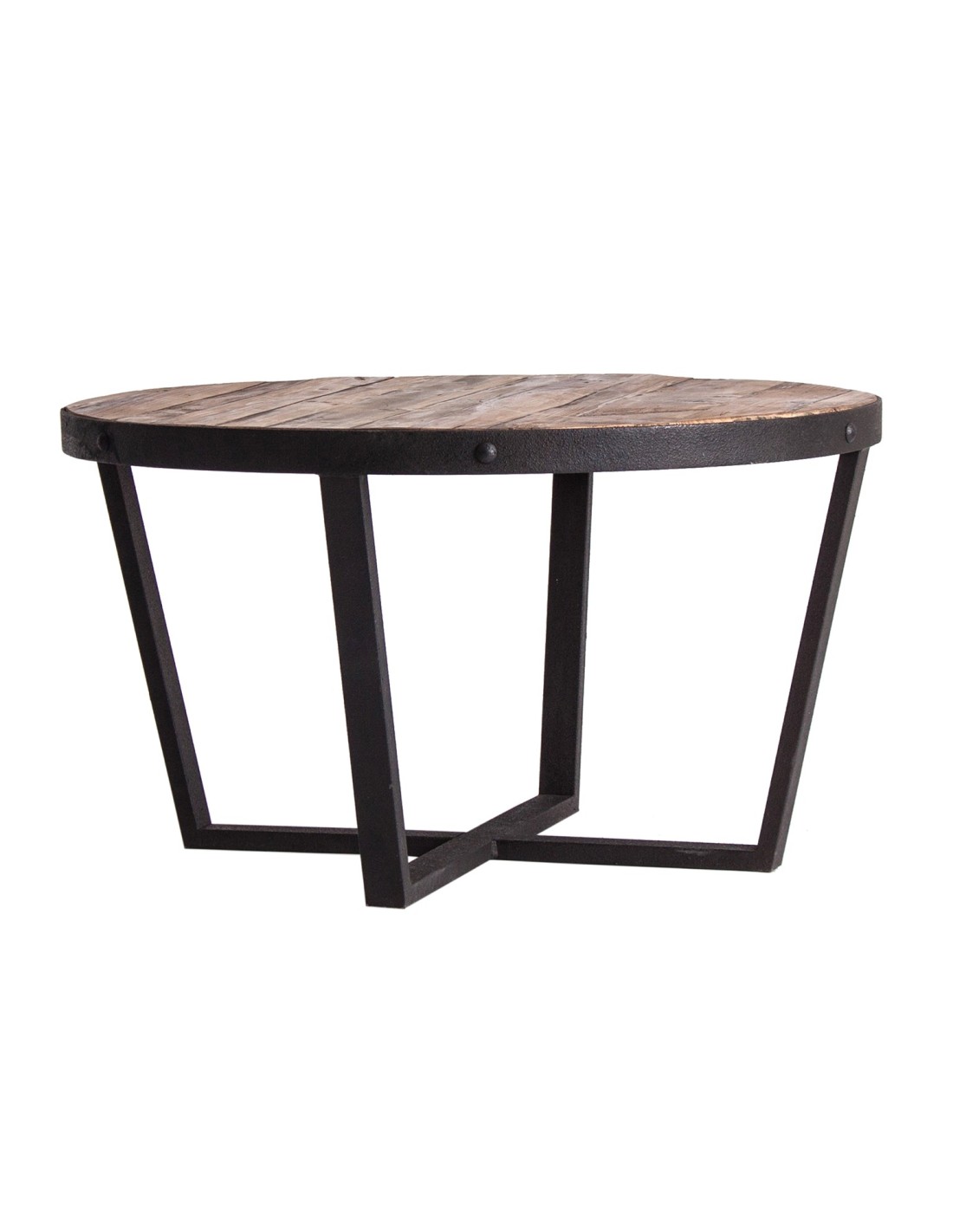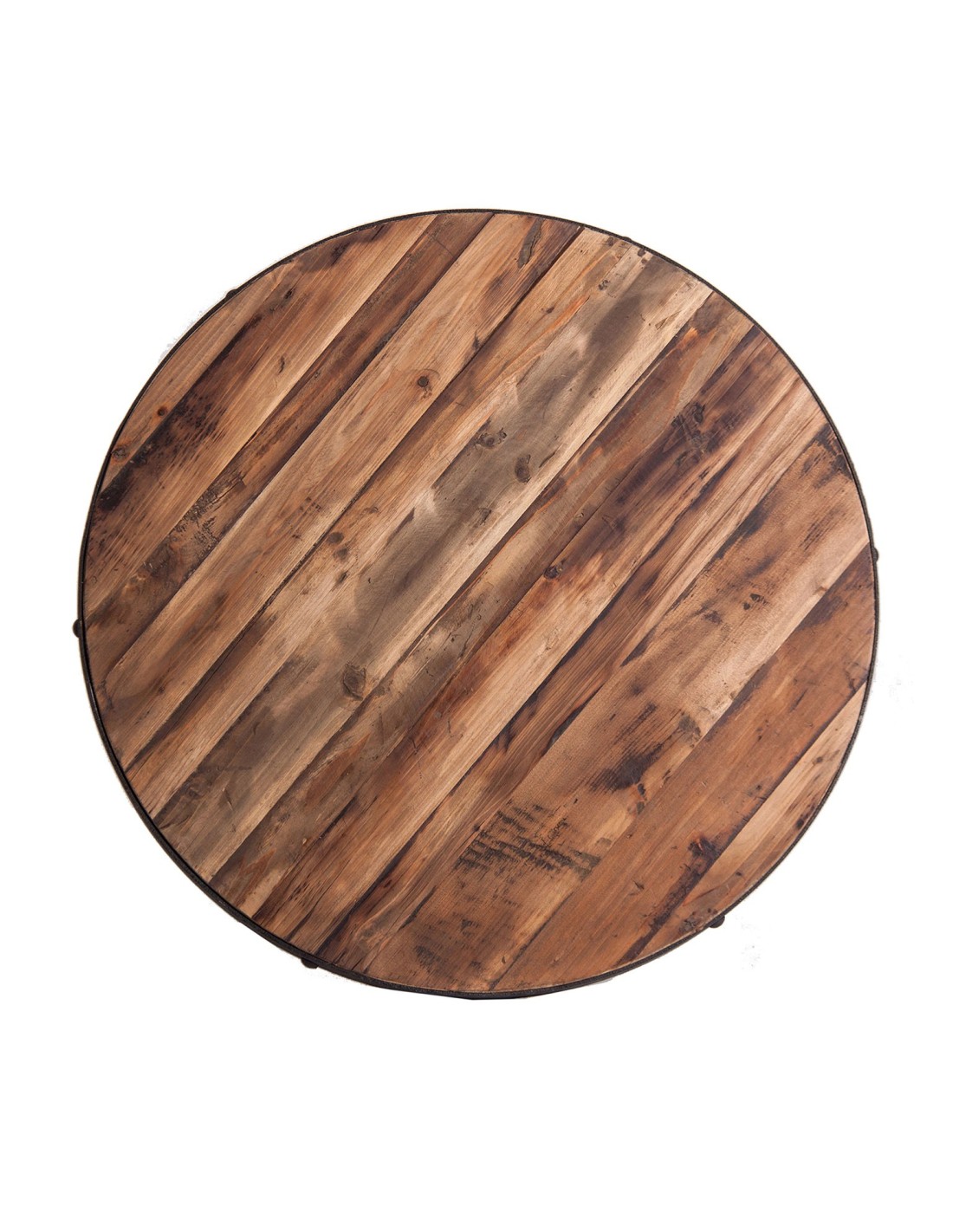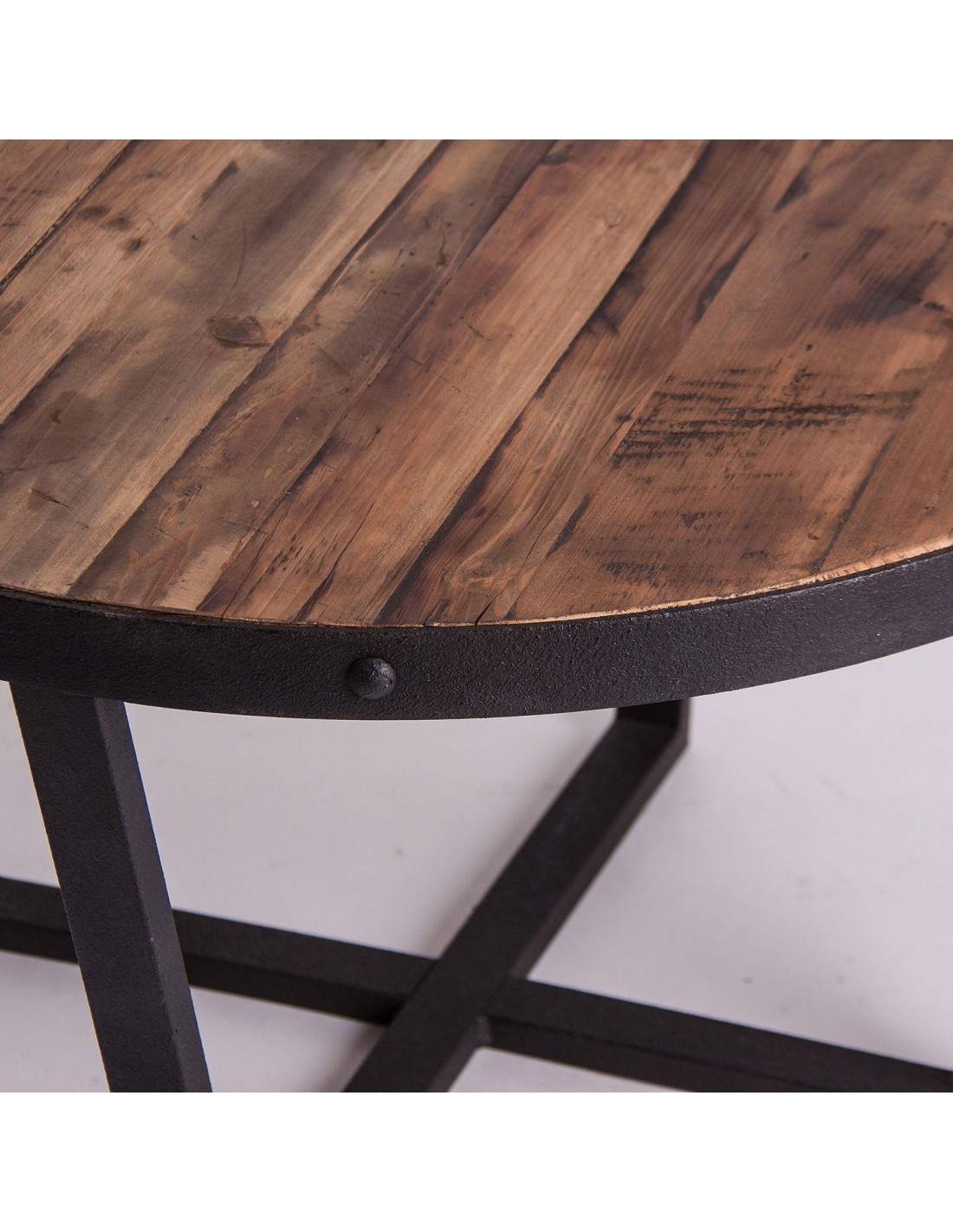 MESA DE CENTRO REDONDA MINOT, EN COLOR MARRÓN ENVEJECIDO, DE ESTILO INDUSTRIAL. FABRICADO EN MADERA DE PINO RECICLADO.