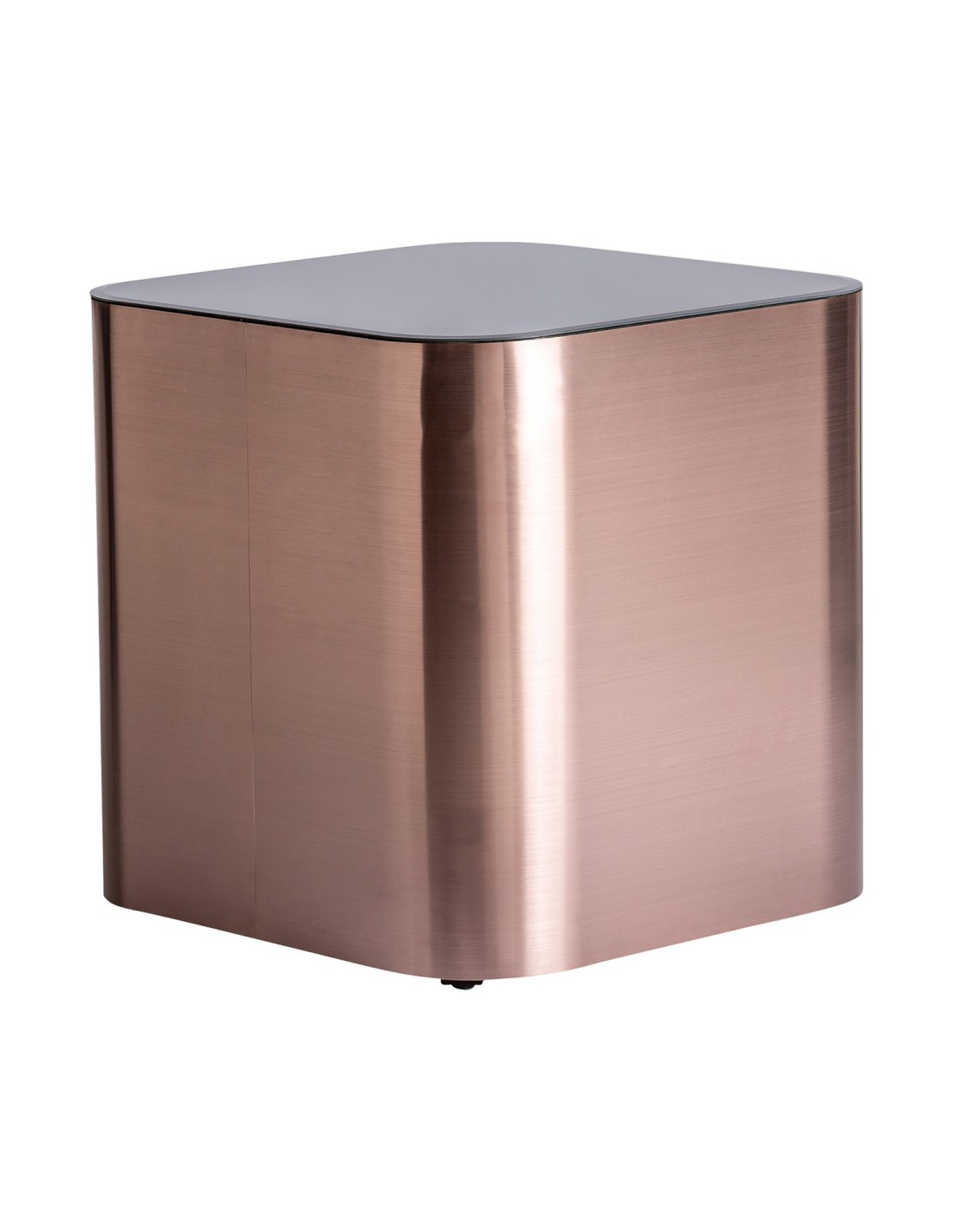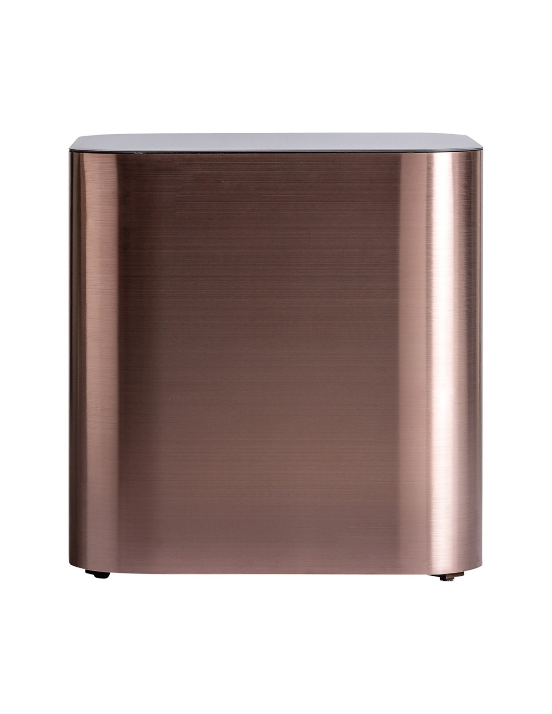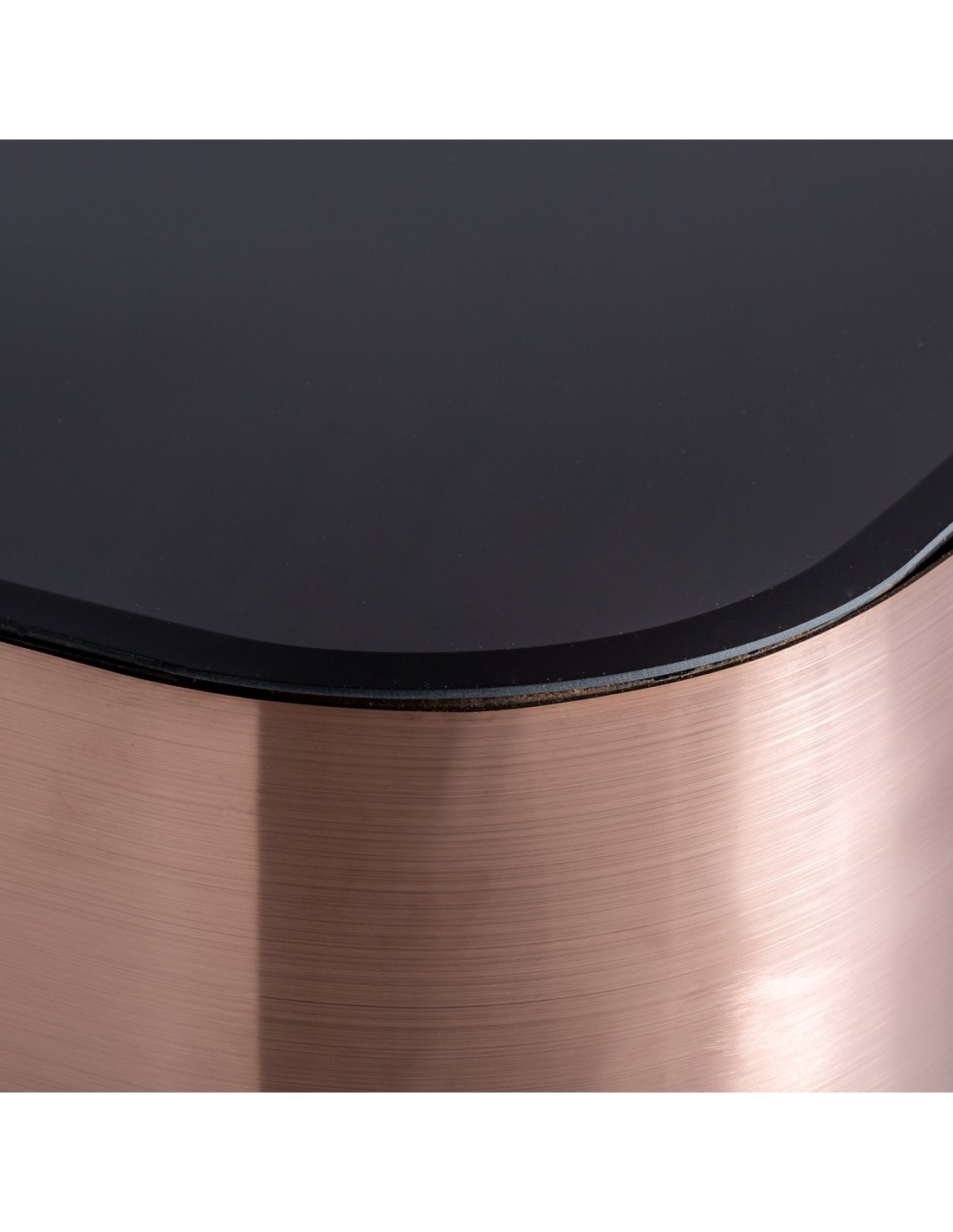 MESA AUXILIAR REDONDA GMUNDEN, EN COLOR COBRE, DE ESTILO ART DECO. FABRICADO EN ACERO, COMBINADO CON MÁRMOL SINTÉTICO.