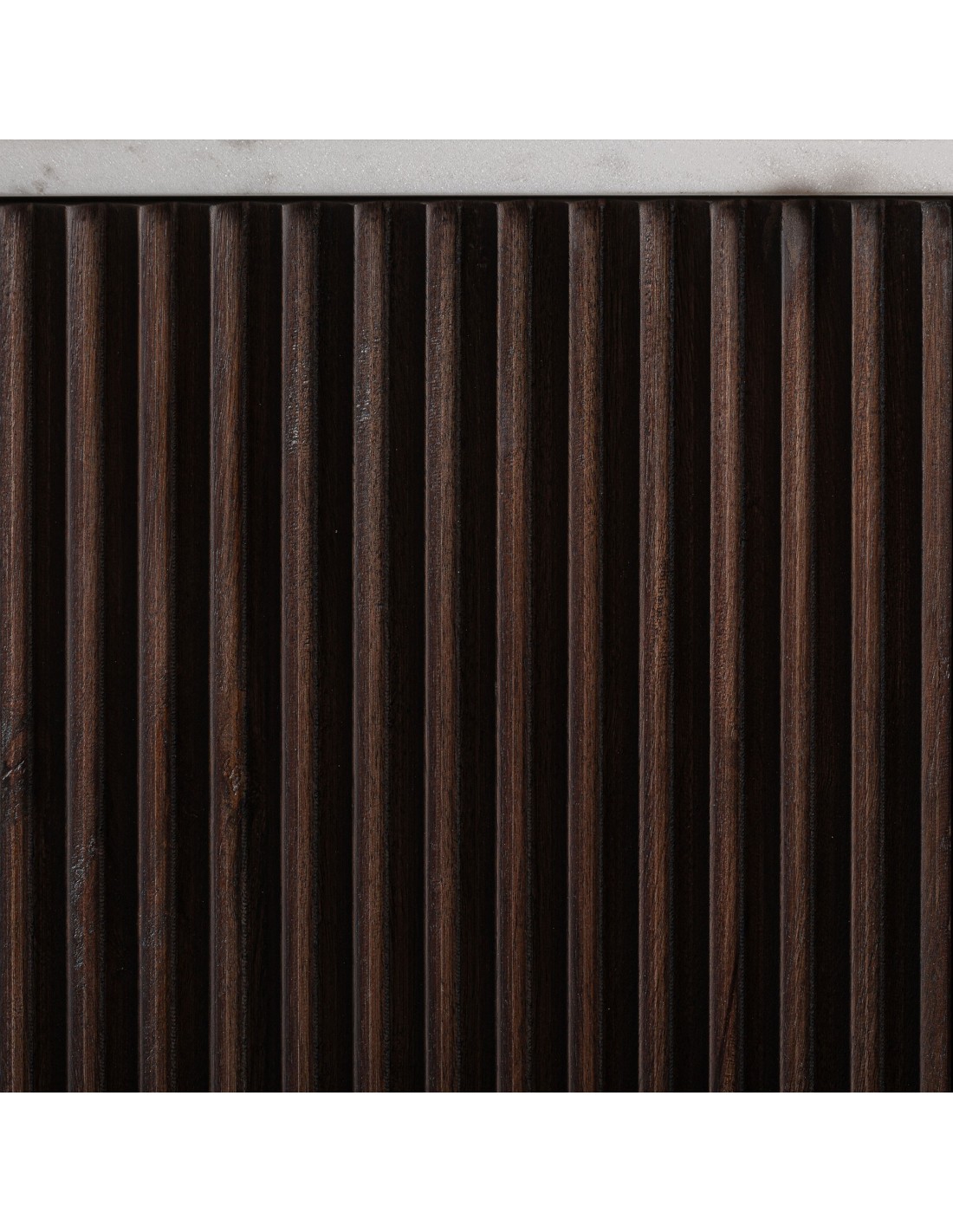 MUEBLE TV CENVES, DE ESTILO ART DECO. FABRICADO EN MADERA DE MANGO, EN COLOR MARRÓN, COMBINADO CON MÁRMOL, EN COLOR BLANCO.