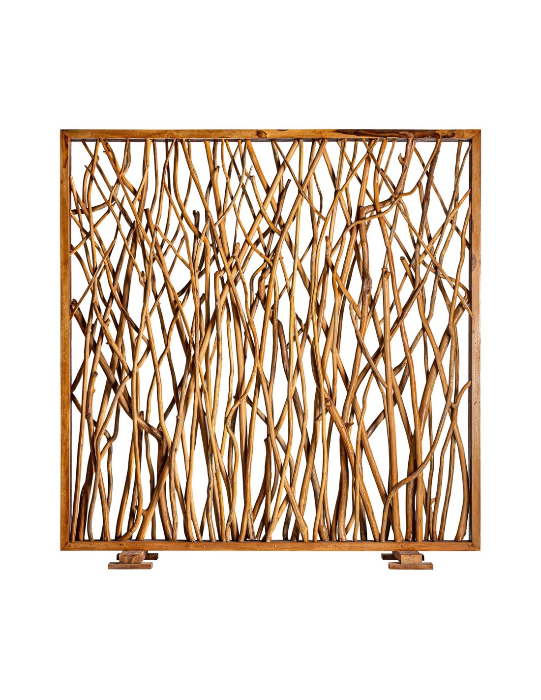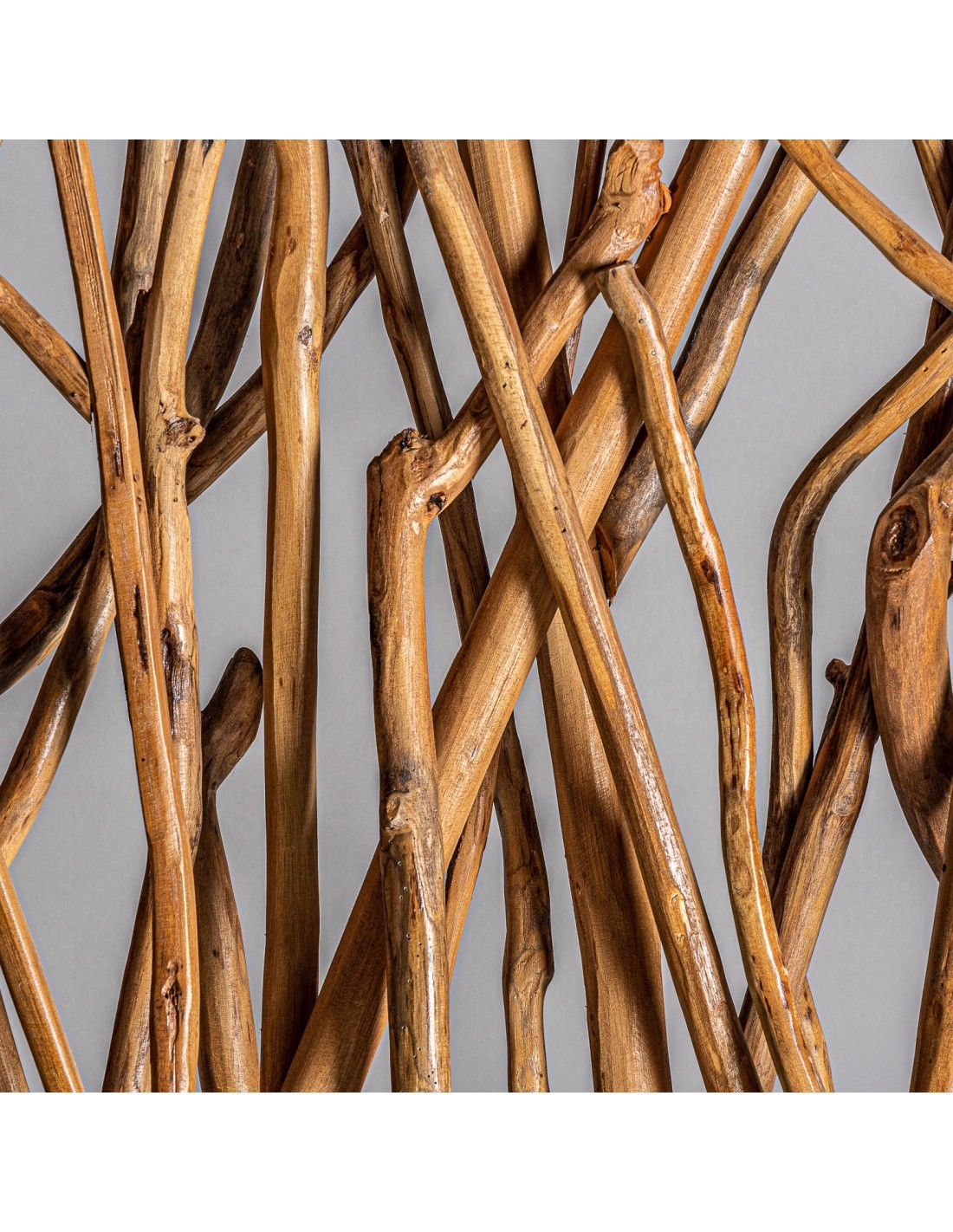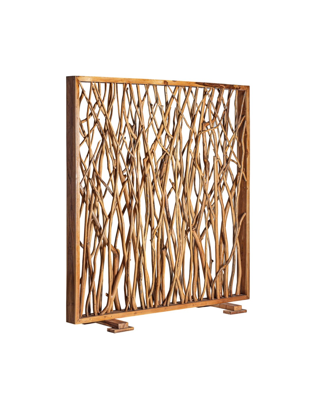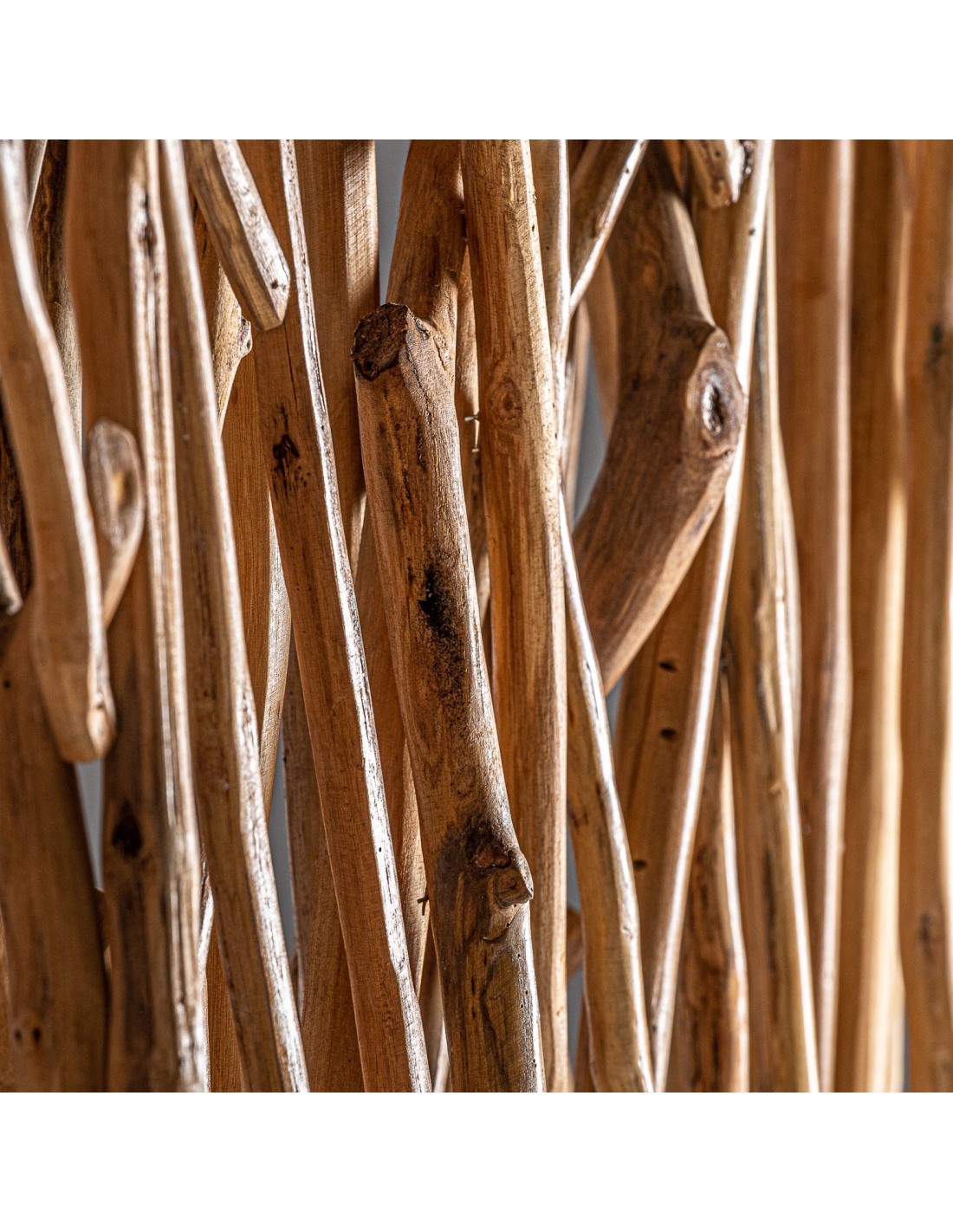 PARABÁN KALADY, EN COLOR MARRÓN ENVEJECIDO, DE ESTILO ÉTNICO. FABRICADO EN MADERA DE TEKA, COMBINADO CON FIBRA NATURAL.