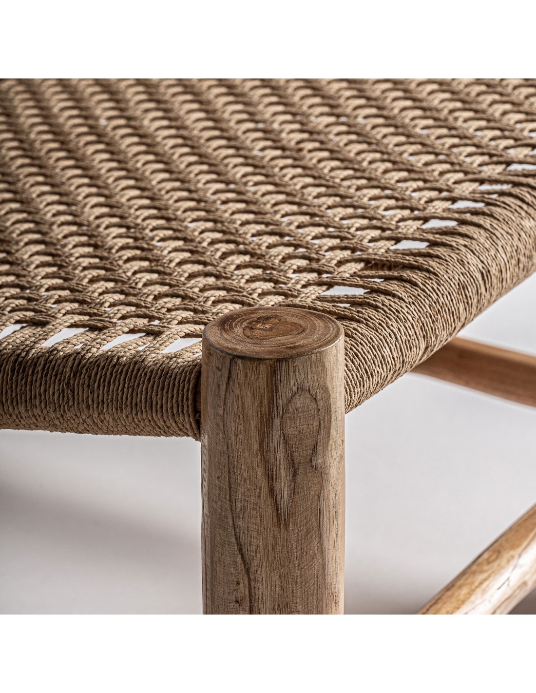 Sillón mouzaki de estilo vintage, fabricado en madera de teka en color marrón, combinado con cáñamo.