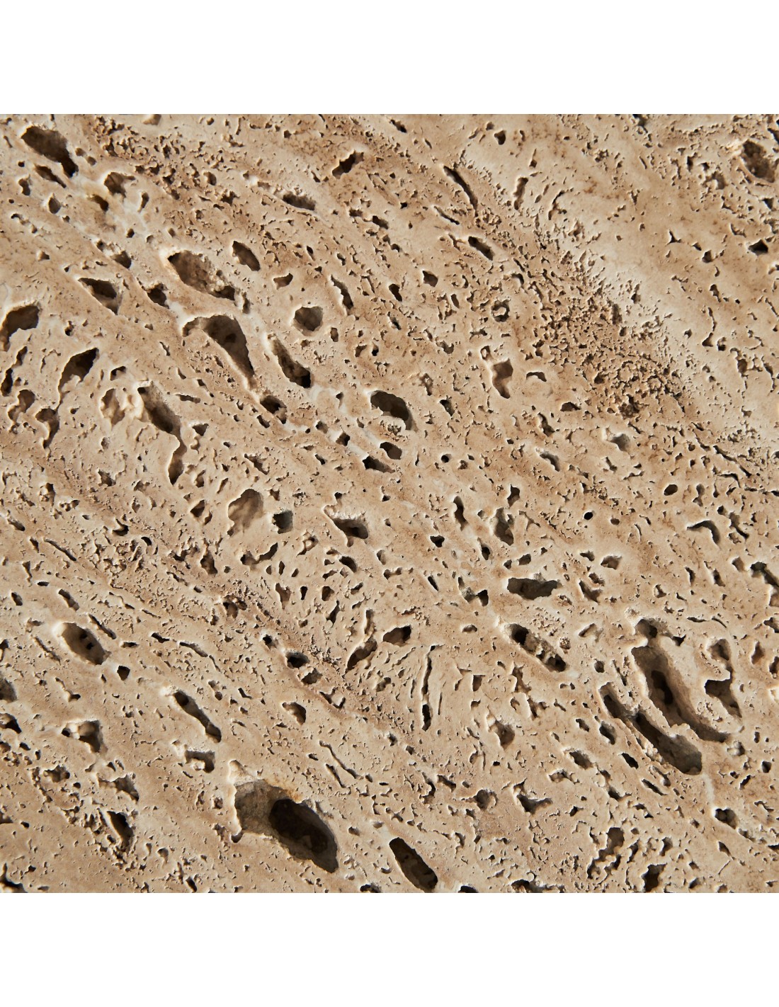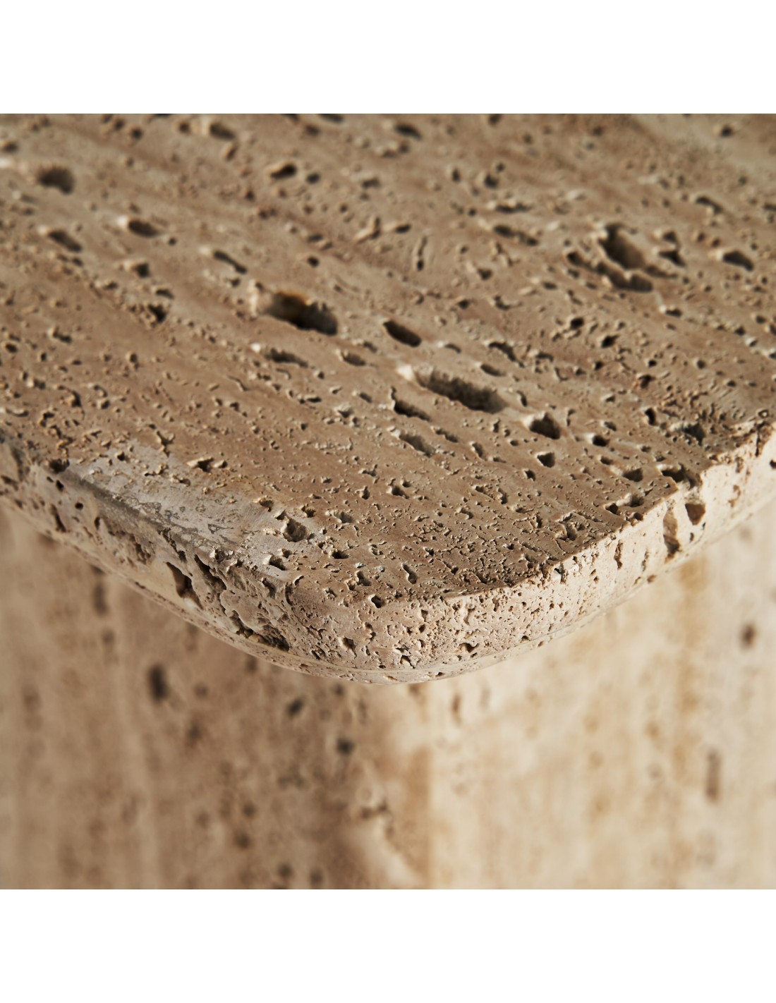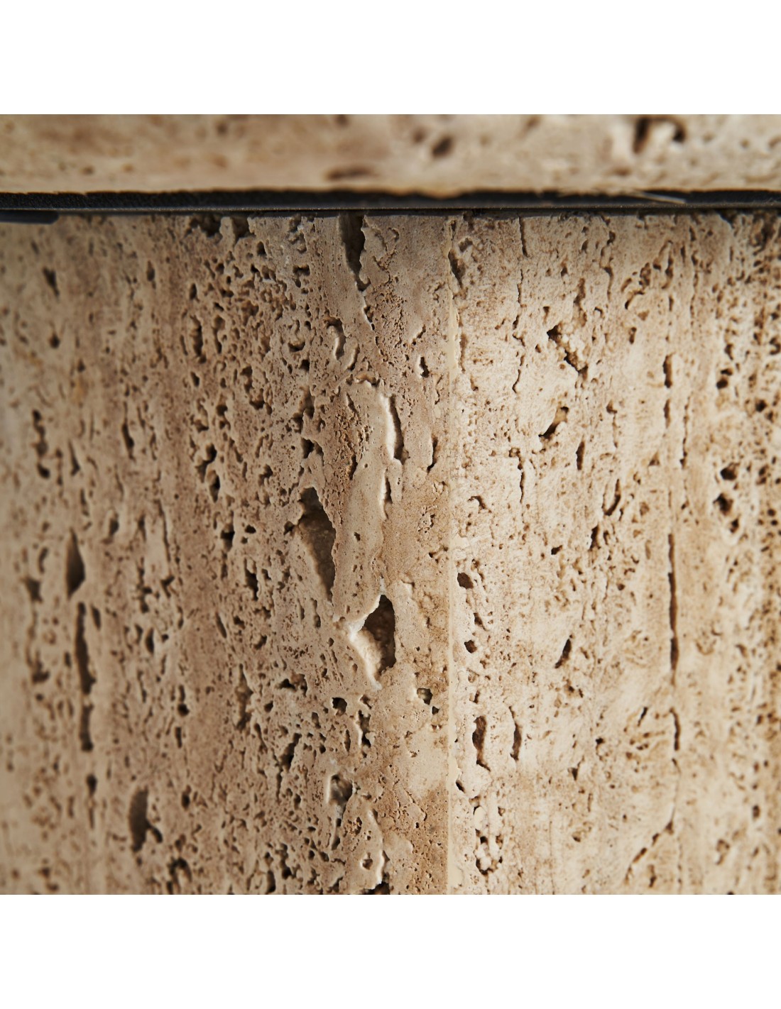 Mesa auxiliar fimland, en color beige, de estilo art deco. Fabricado en travertino. Producto desmontable.