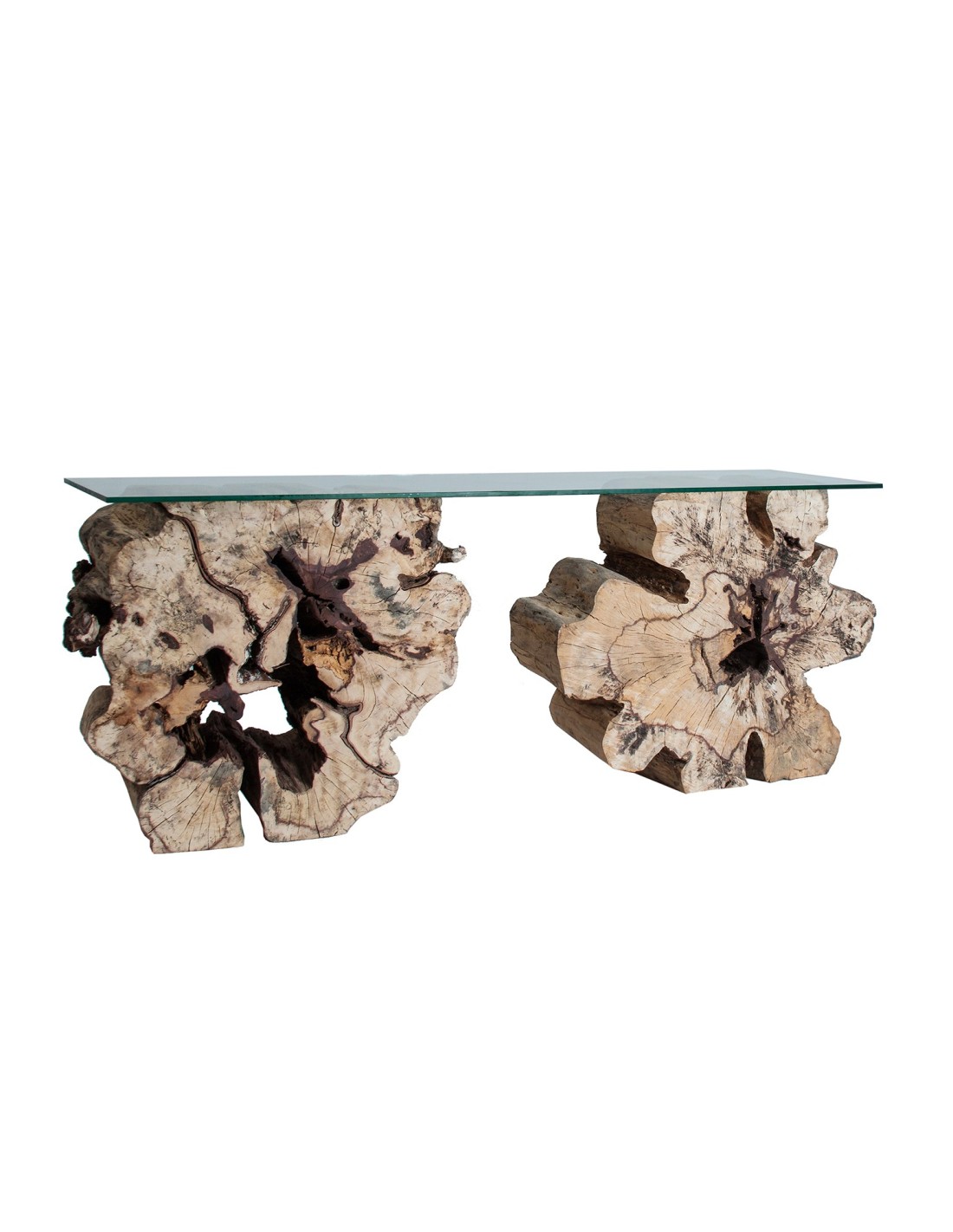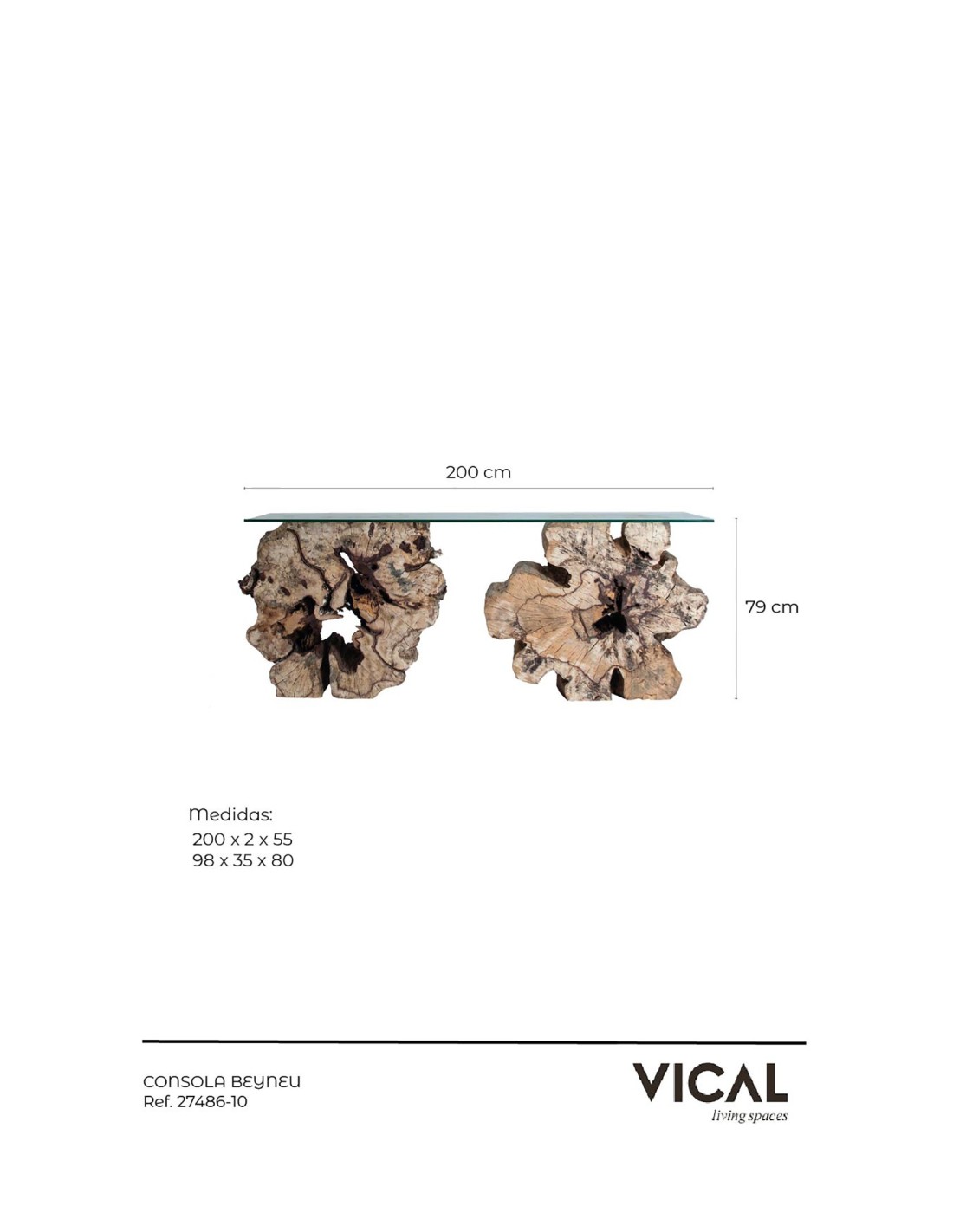 Consola beyneu de estilo contemporáneo, fabricado en madera tropical en color marrón. Producto desmontable.