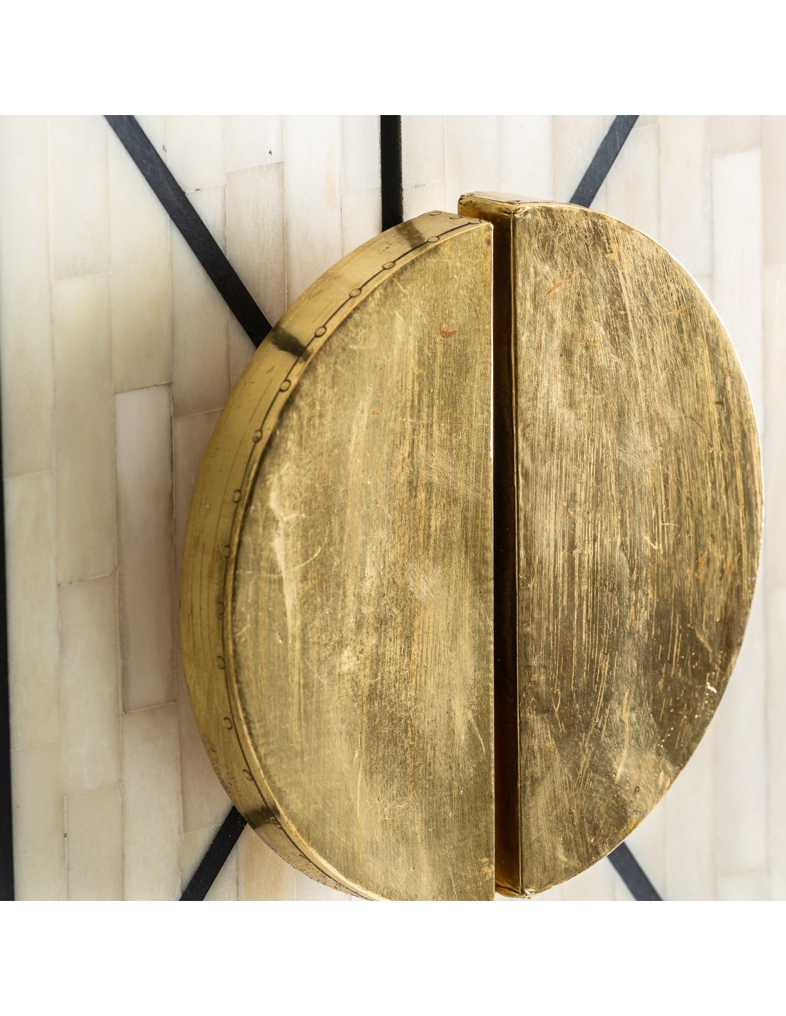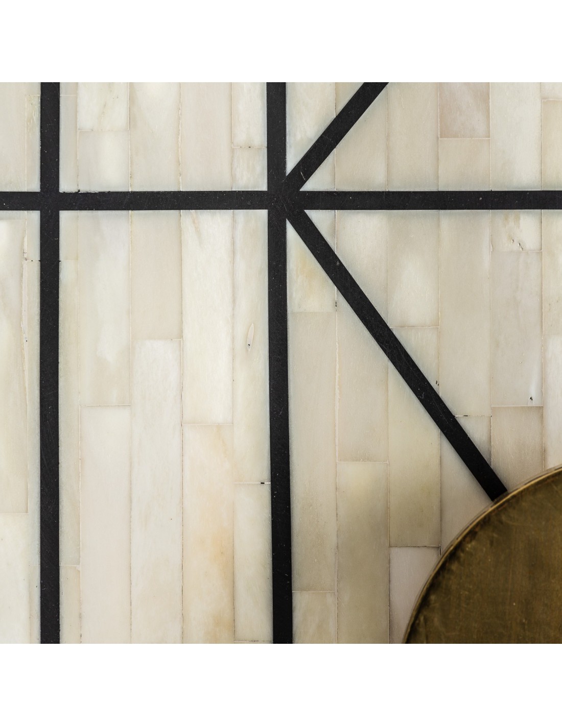 Material, color y acabados: HIERRO en color BLANCO, MADERA DM en color NEGRO Y HUESO.