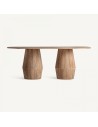 Esta mesa está elaborada en madera maciza de mango en un cálido acabado marrón claro, que resalta las vetas naturales del material y añade una sensación de calidez y autenticidad. Con una altura de 106 cm y base cuadrada de 61 x 61 cm, su tamaño compacto permite integrarla fácilmente en diferentes ambientes sin sacrificar estilo ni funcionalidad.