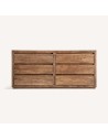 La Cómoda Norvik de Vical Home es una pieza de mobiliario que destaca por su diseño contemporáneo, su acabado cálido en madera de olmo marrón, y su gran versatilidad funcional.