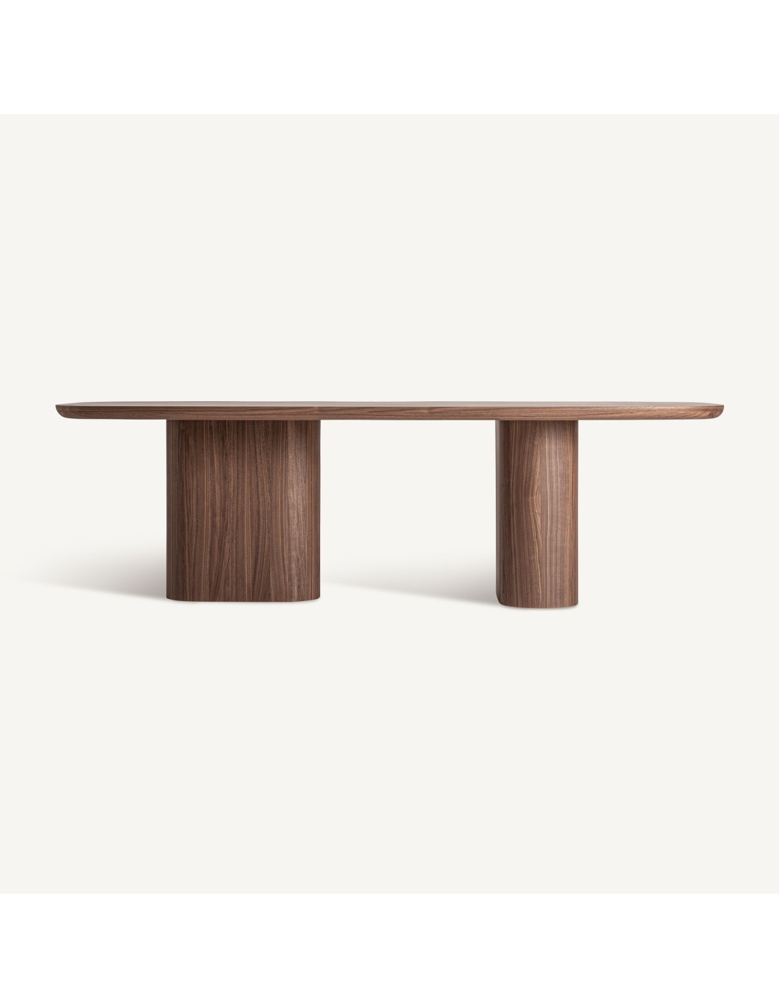 La Mesa de Comedor Aciera de Vical Home es una pieza de diseño contemporáneo que combina elegancia, robustez y funcionalidad. Fabricada en madera DM y acabada con una exquisita chapa de nogal en tono marrón, esta mesa destaca por su aspecto natural, moderno y sofisticado.