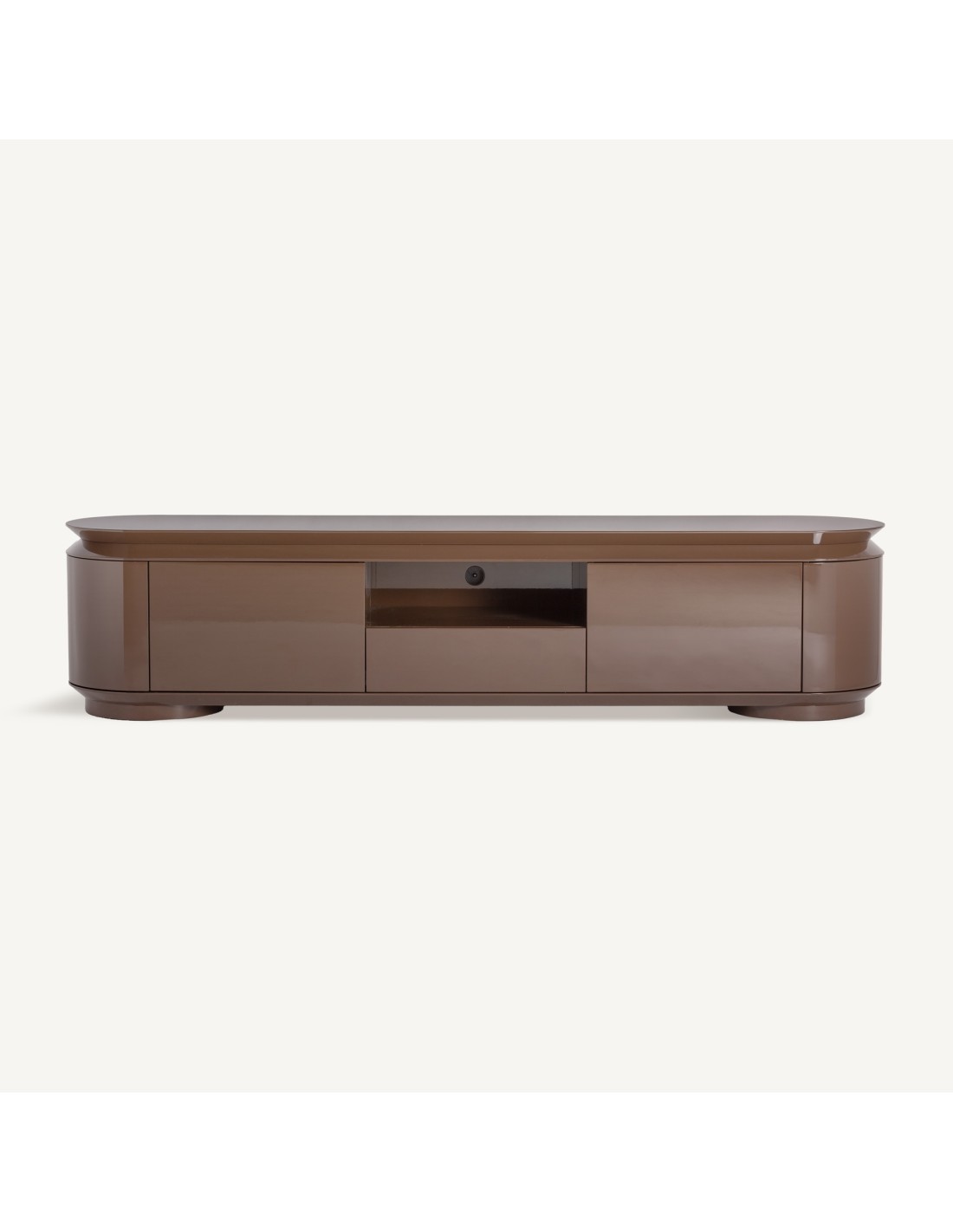 Con una longitud de 240 cm, este mueble es perfecto para televisores grandes y ofrece un amplio espacio de almacenaje para dispositivos multimedia, libros, objetos decorativos y mucho más. Su estética minimalista lo convierte en un elemento versátil, ideal tanto para ambientes modernos como espacios más clásicos que busquen una renovación visual.