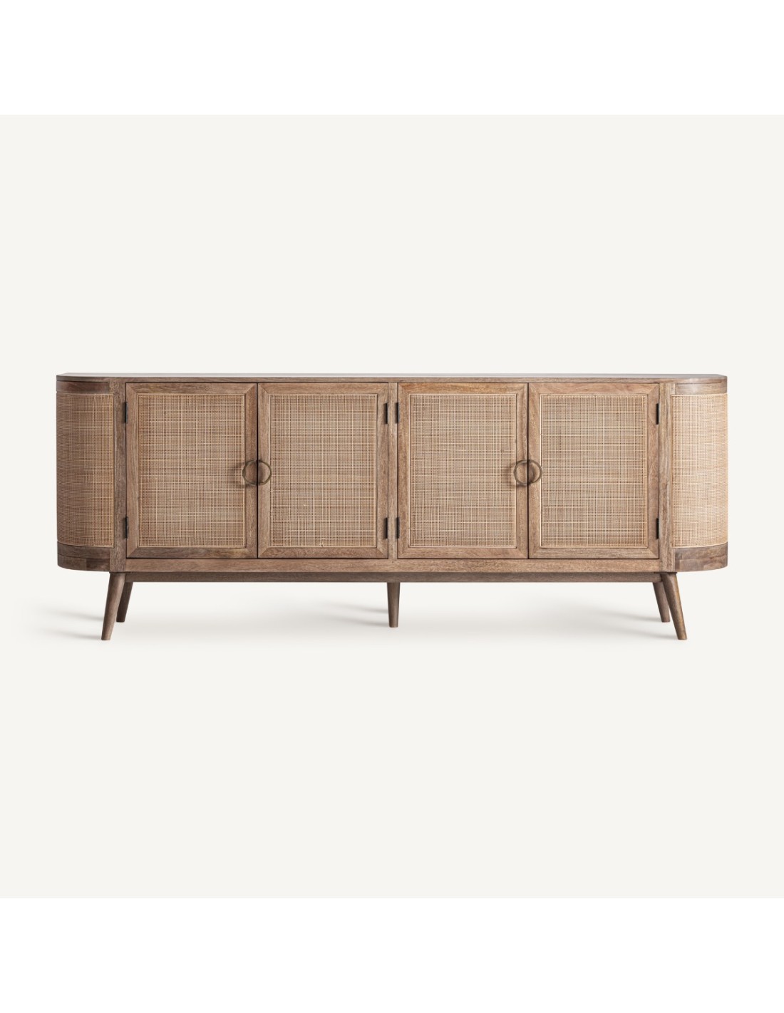El aparador Beckley es la pieza perfecta para aportar un aire nórdico y natural a tu hogar. Fabricado en madera de mango en color marrón, este aparador combina la calidez y resistencia de la madera con el estilo ligero y artesanal del ratán en tono marrón claro y la versatilidad de la madera DM.