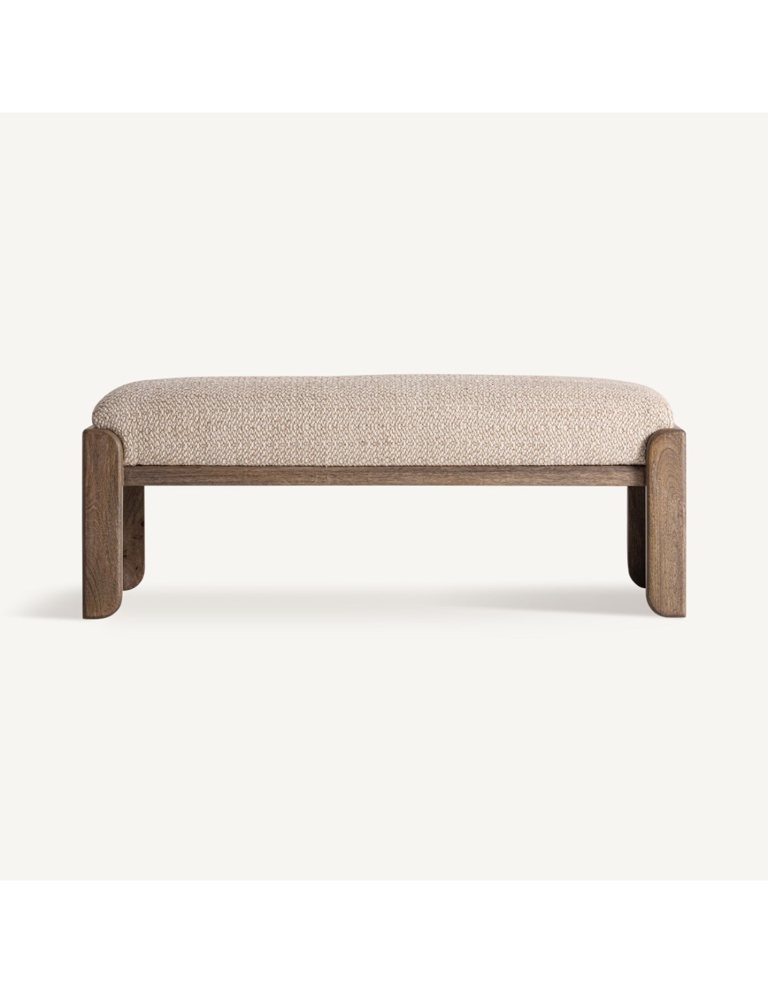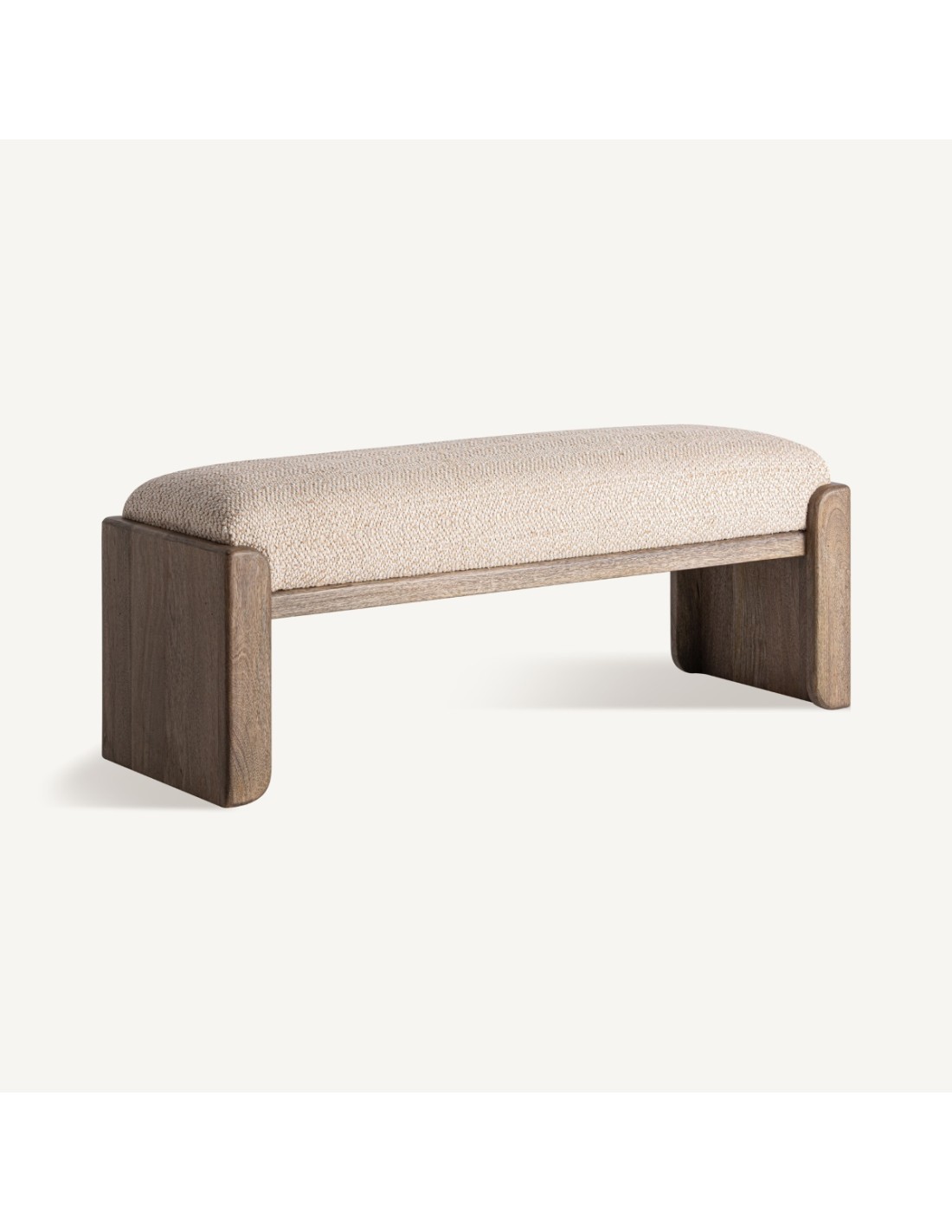 Con unas medidas de 122 cm de ancho, 40 cm de fondo y 45 cm de alto, es perfecto para añadir un espacio extra para sentarte o colocar objetos al pie de la cama, combinando funcionalidad con un diseño natural y contemporáneo.