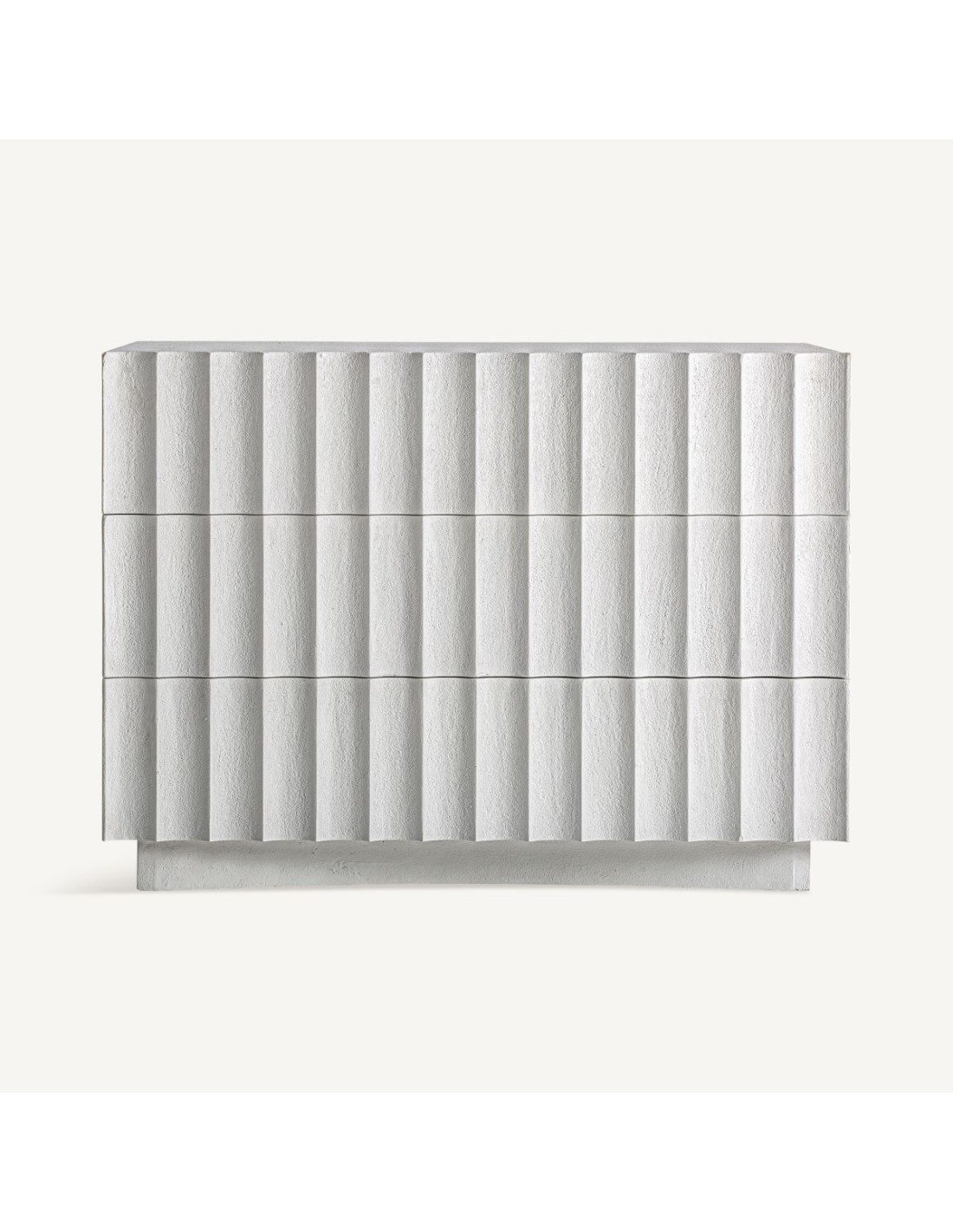 La Cómoda Saundby de Vical Home es la pieza perfecta para quienes buscan elegancia y practicidad en un mueble de estilo contemporáneo. Fabricada en madera de mango de alta calidad, esta cómoda destaca por su acabado en color blanco que aporta luminosidad y frescura a cualquier habitación.