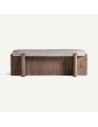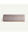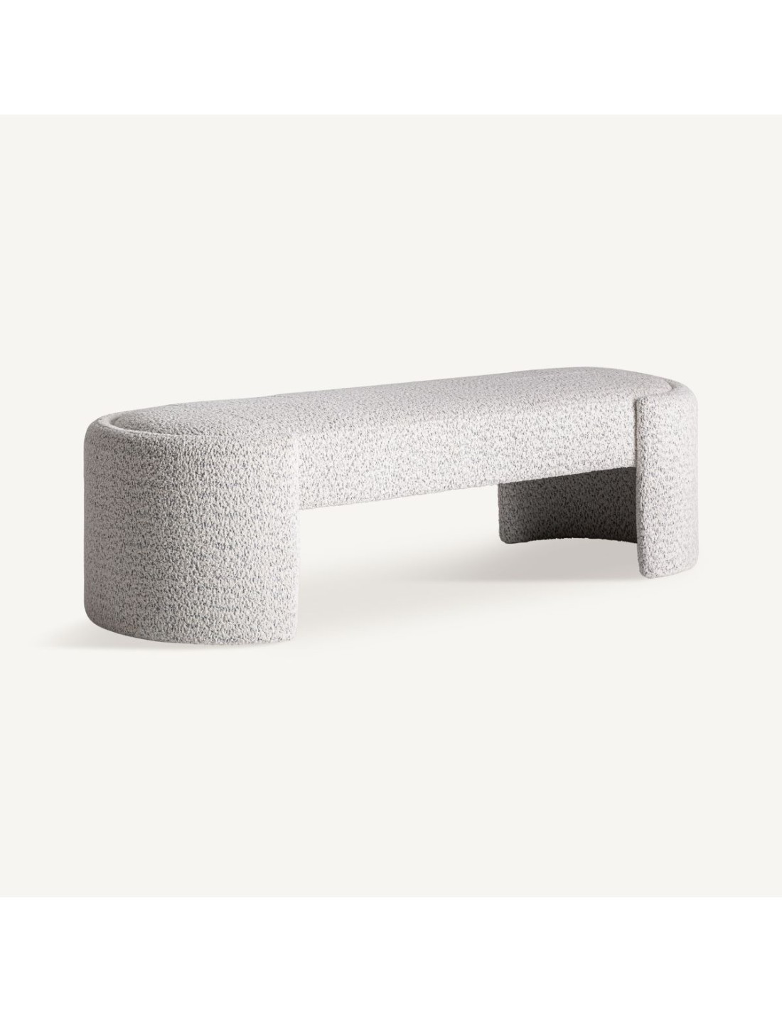 Pie de cama Cades de estilo contemporáneo, fabricado en poliéster jaspeado blanco roto combinado con madera de fresno, que aporta elegancia y funcionalidad a tu dormitorio.