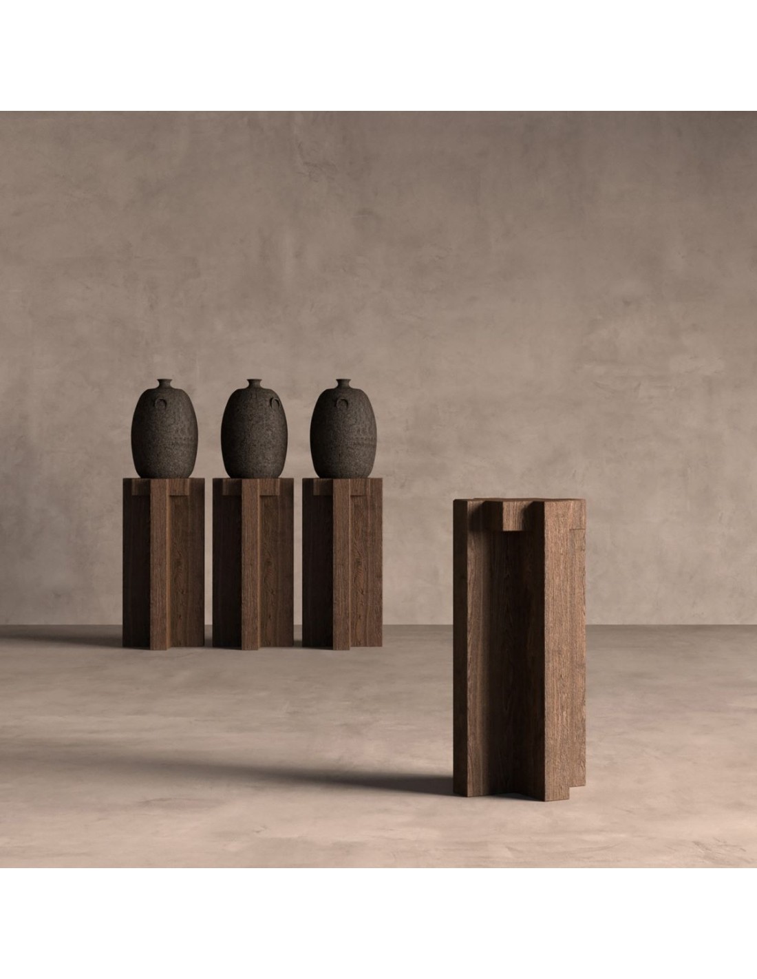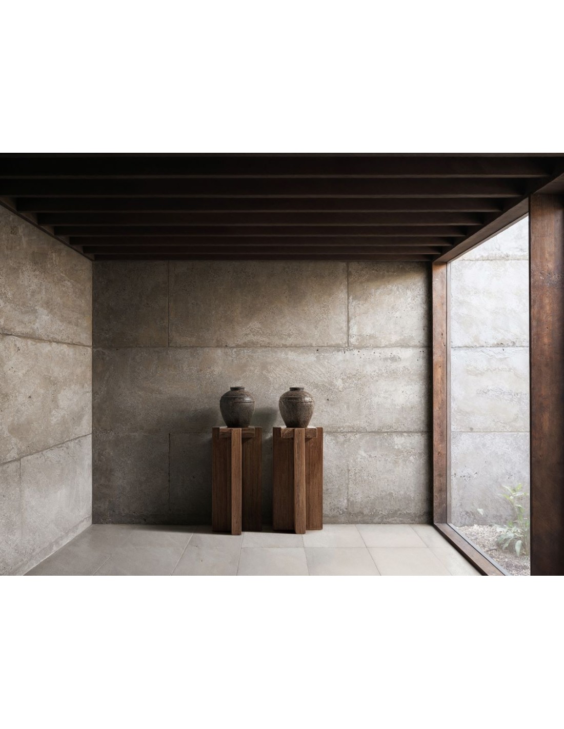 Sus medidas de 43 cm de ancho y fondo, y 90 cm de alto, la convierten en un complemento versátil para salones, recibidores, oficinas o dormitorios. Ideal como mesa de apoyo, pedestal decorativo o soporte para piezas de arte o iluminación, su estética brutalista aporta fuerza visual y una identidad rotunda a cualquier espacio.