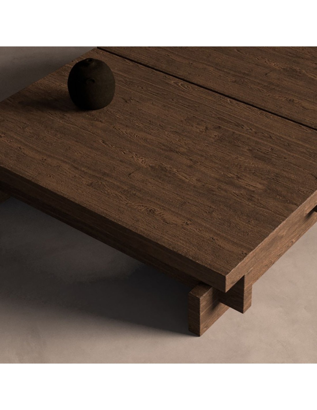 Su estética minimalista y su volumen bien contenido hacen que esta mesa sea ideal para espacios contemporáneos, brutalistas o japoneses, donde el mobiliario respira y deja espacio a la arquitectura y la luz. Con una altura de 37 cm, permite una convivencia natural con sofás bajos, composiciones modulares o piezas escultóricas.