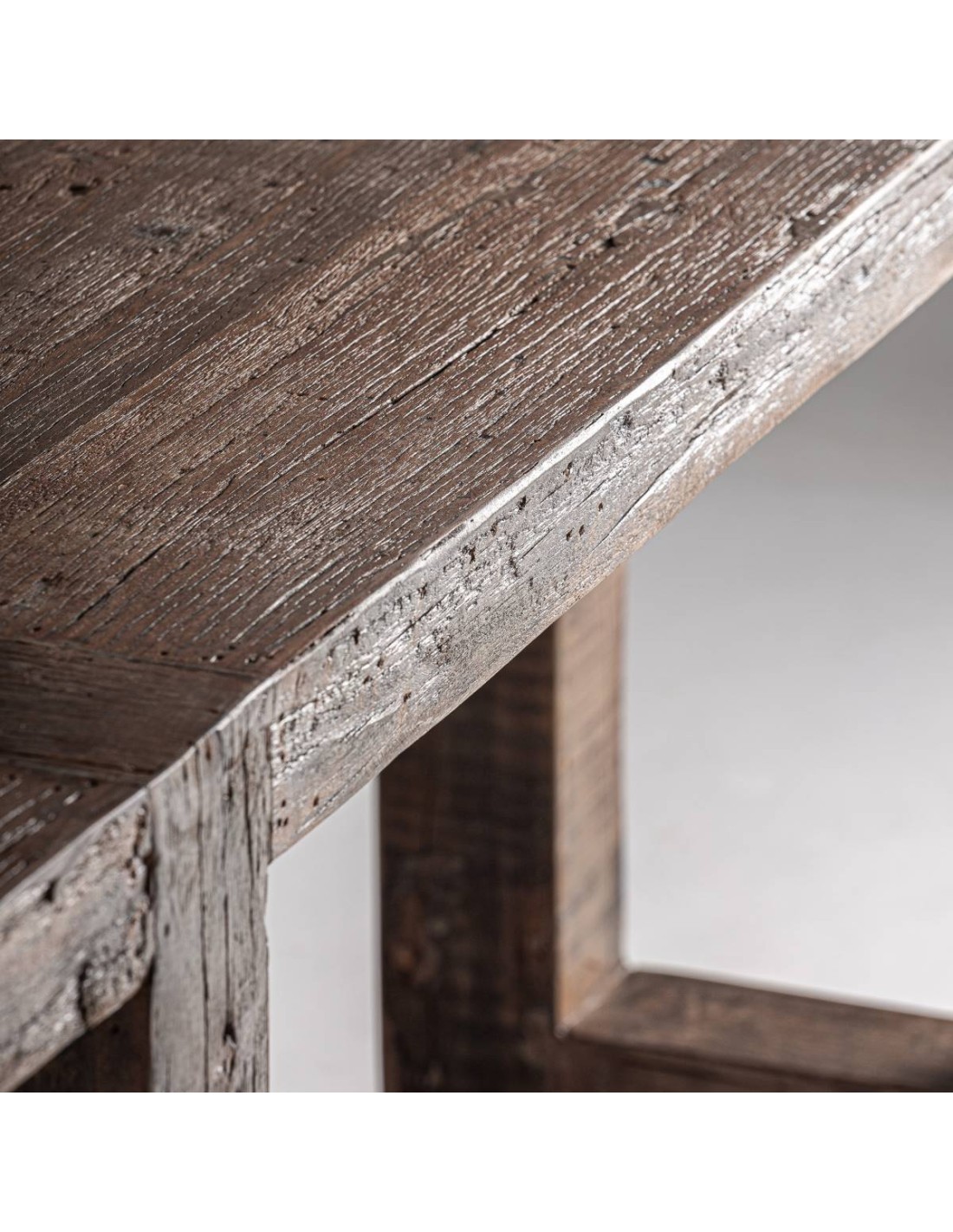 Fabricada con madera recuperada cuidadosamente seleccionada, cada consola presenta vetas, nudos y texturas propias, lo que garantiza una personalidad irrepetible y una belleza auténtica.