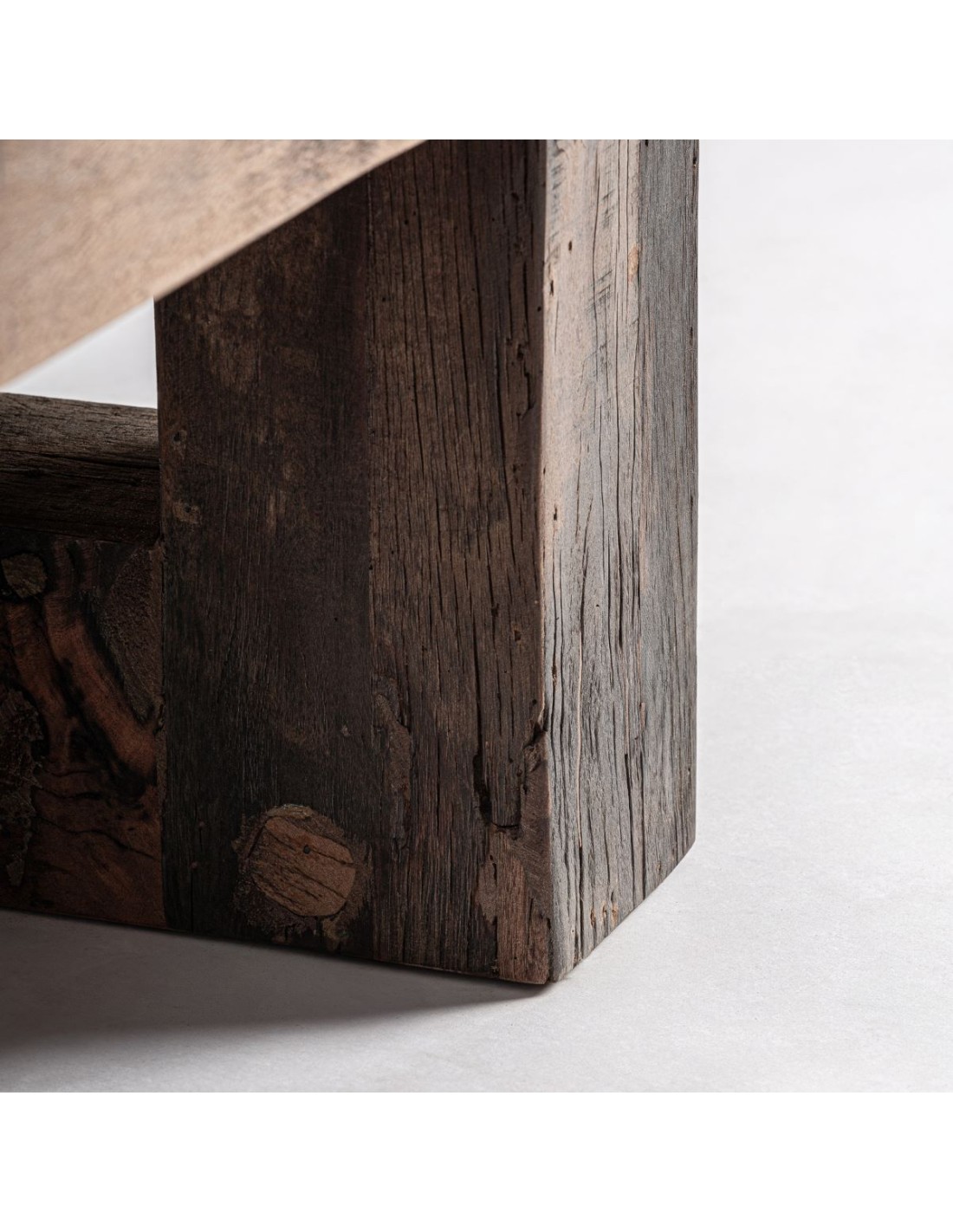 Fabricada con madera recuperada cuidadosamente seleccionada, esta mesa refleja el encanto de los materiales con historia, ofreciendo un aspecto cálido, auténtico y lleno de personalidad.
