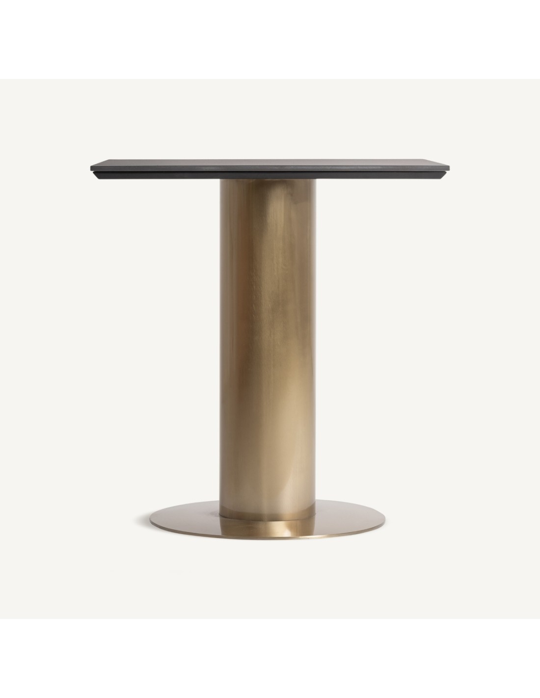 La mesa bar Tasque de Vical Home es una pieza de diseño art déco que aporta estilo, lujo y funcionalidad. Su estructura de acero en color oro se complementa con un tablero de porcelánico negro, creando un contraste elegante y moderno que realza cualquier espacio interior.
