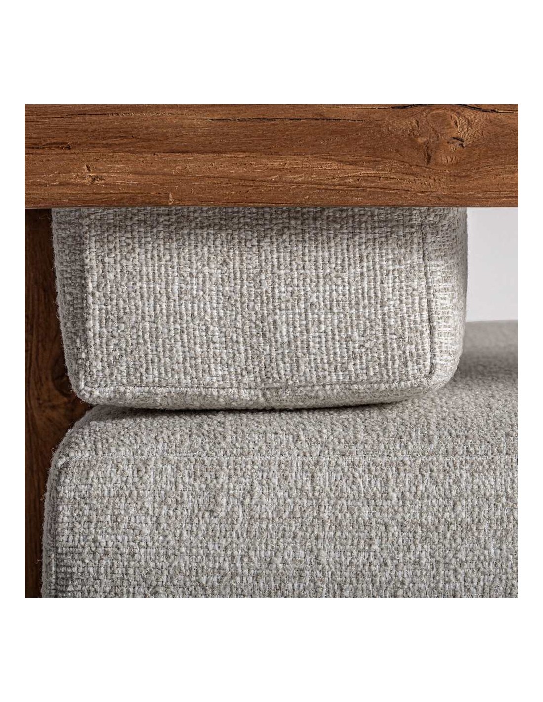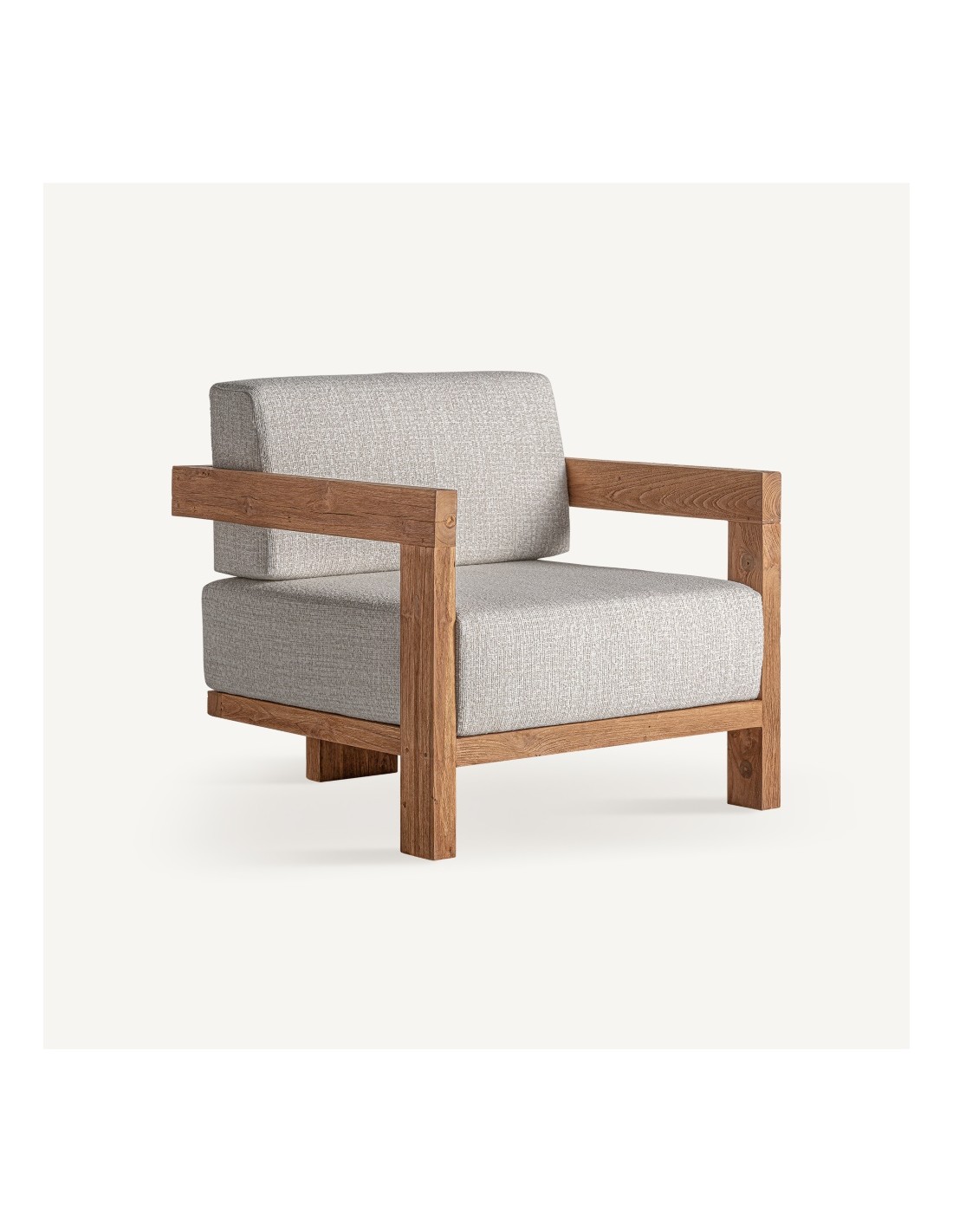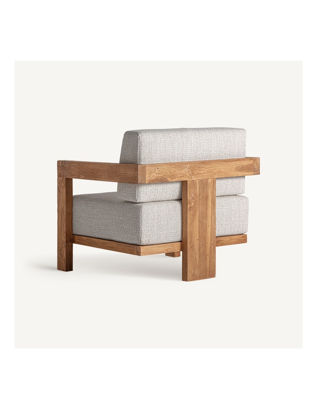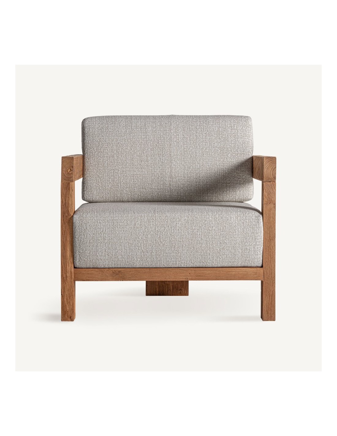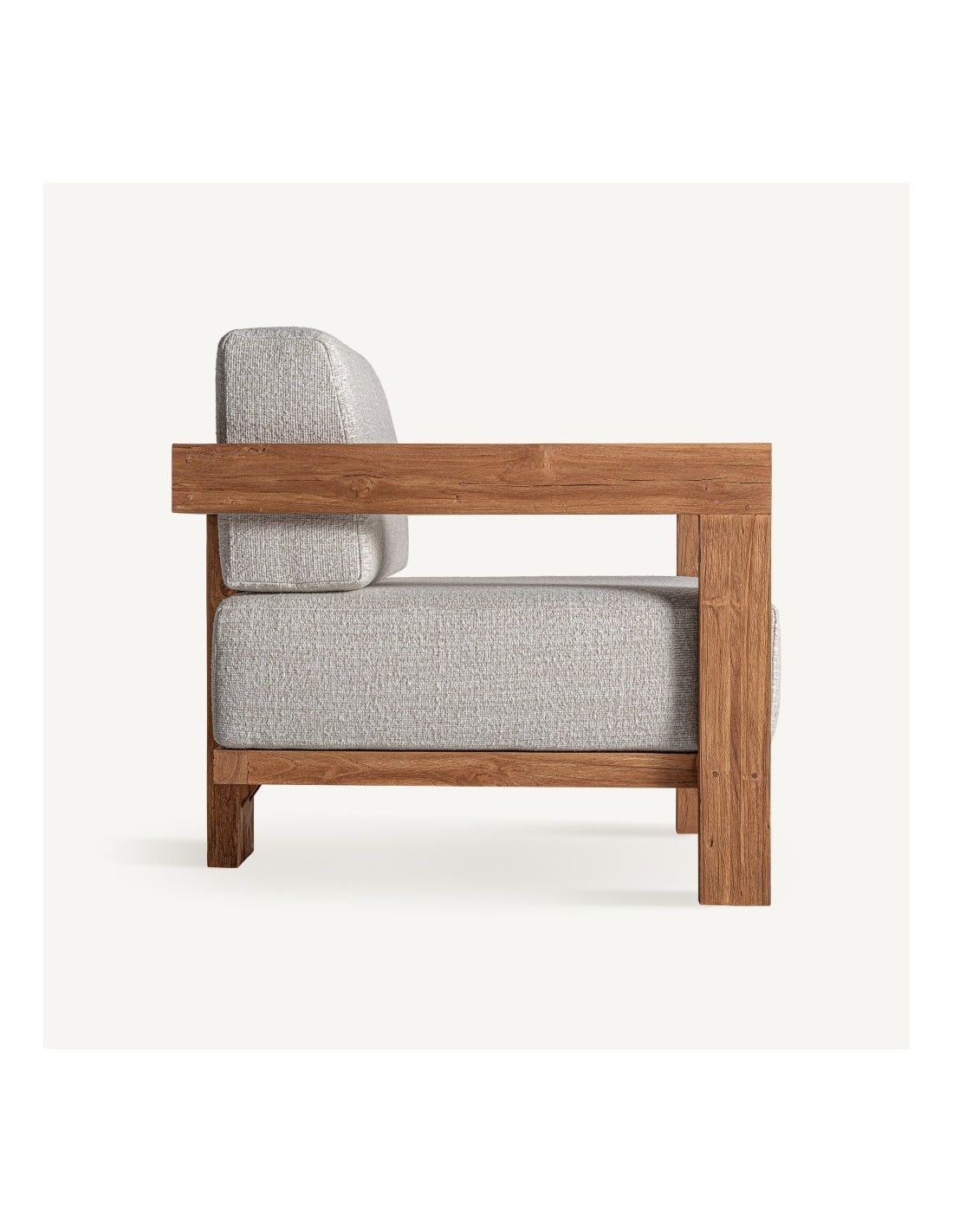 Vical Home apuesta por la responsabilidad ambiental en cada una de sus creaciones. Este sillón utiliza madera de teca reciclada, un material resistente a la humedad y al paso del tiempo, combinada con tejidos desenfundables y reciclados, garantizando una larga vida útil y fácil mantenimiento.