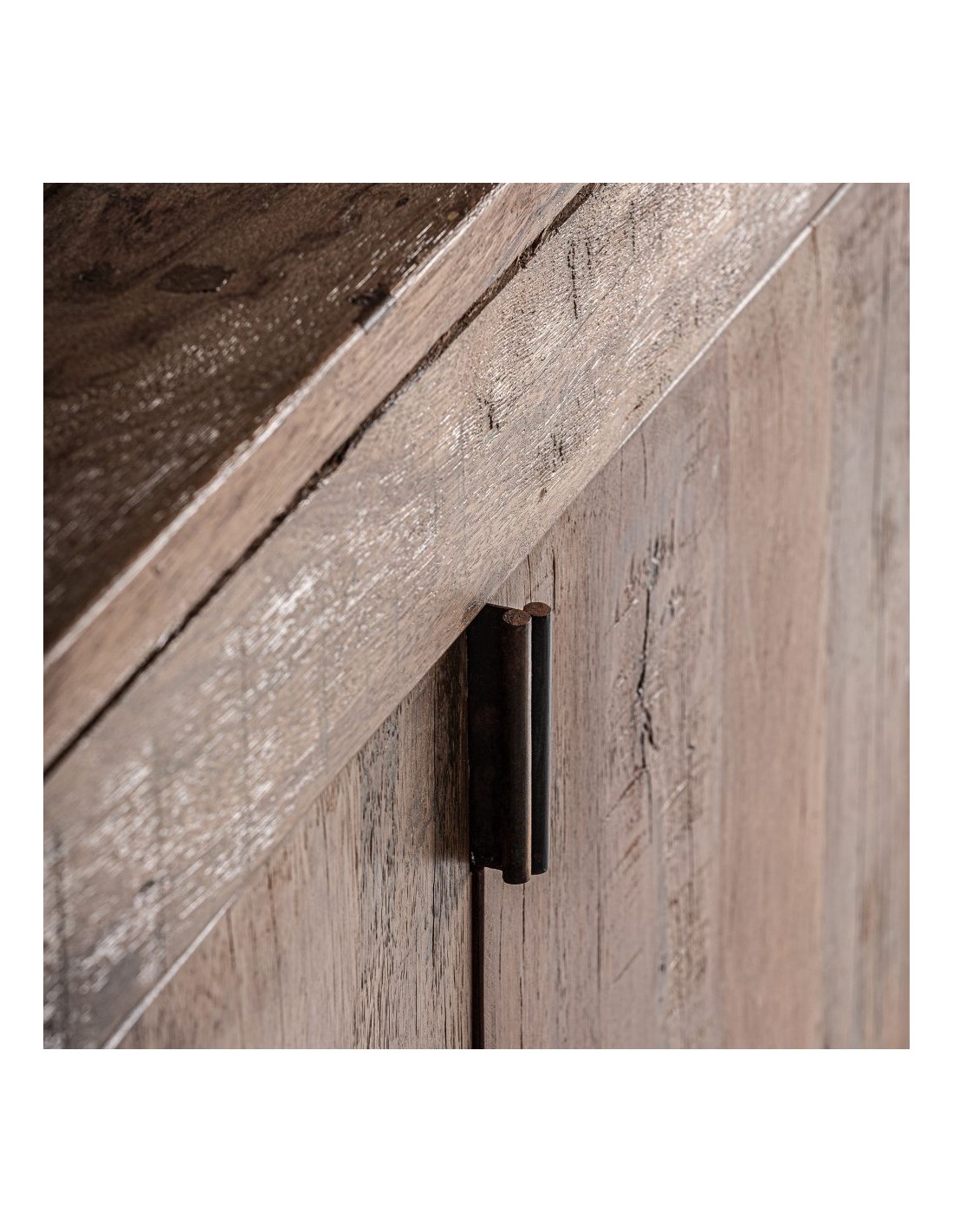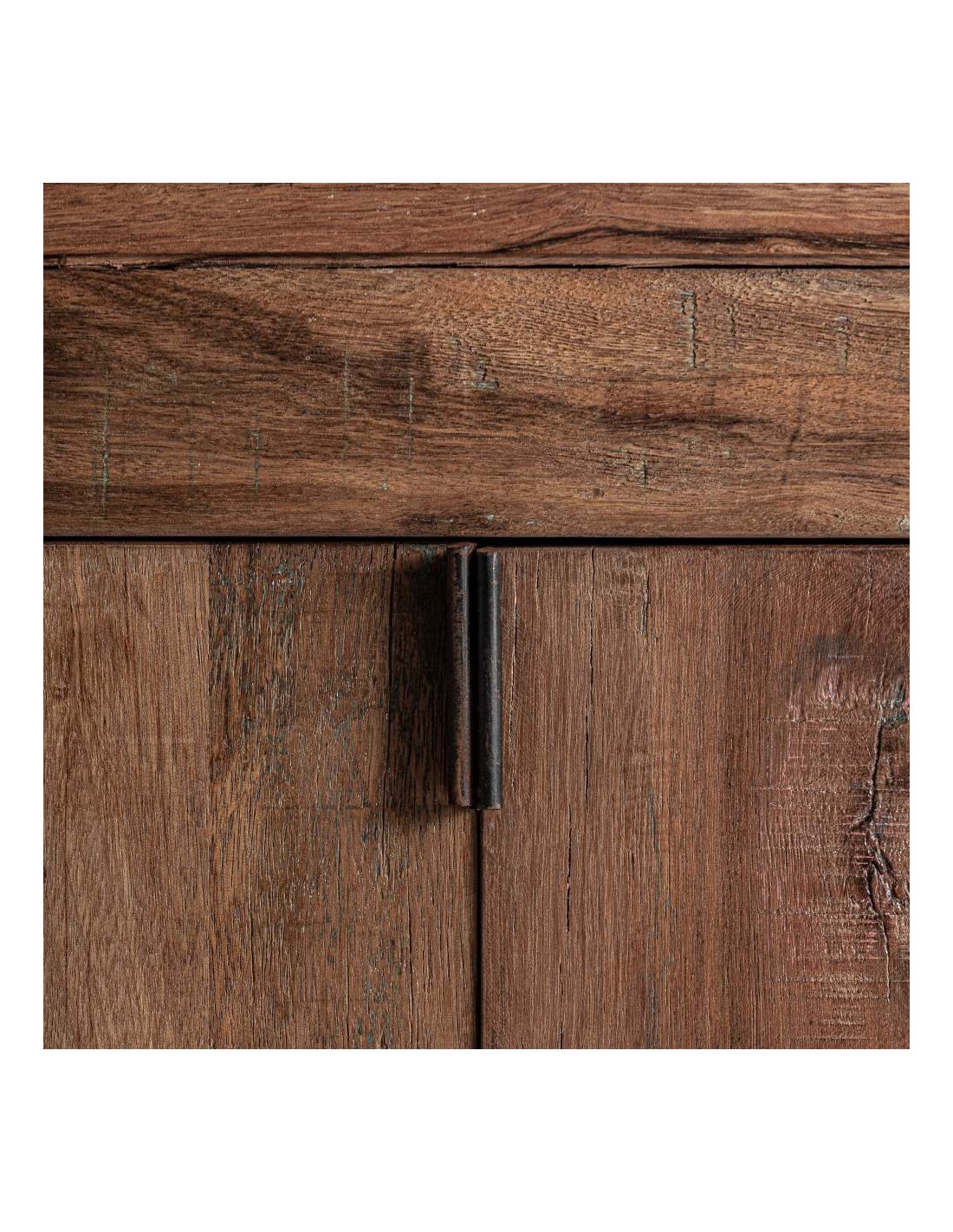 Su diseño artesanal combina la belleza imperfecta de la madera reciclada con la sobriedad del hierro, creando un contraste perfecto entre lo natural y lo industrial. Este equilibrio convierte al Selby TV en una pieza decorativa y funcional a la vez, ideal para organizar dispositivos multimedia, adornos o libros, aportando orden y estilo.